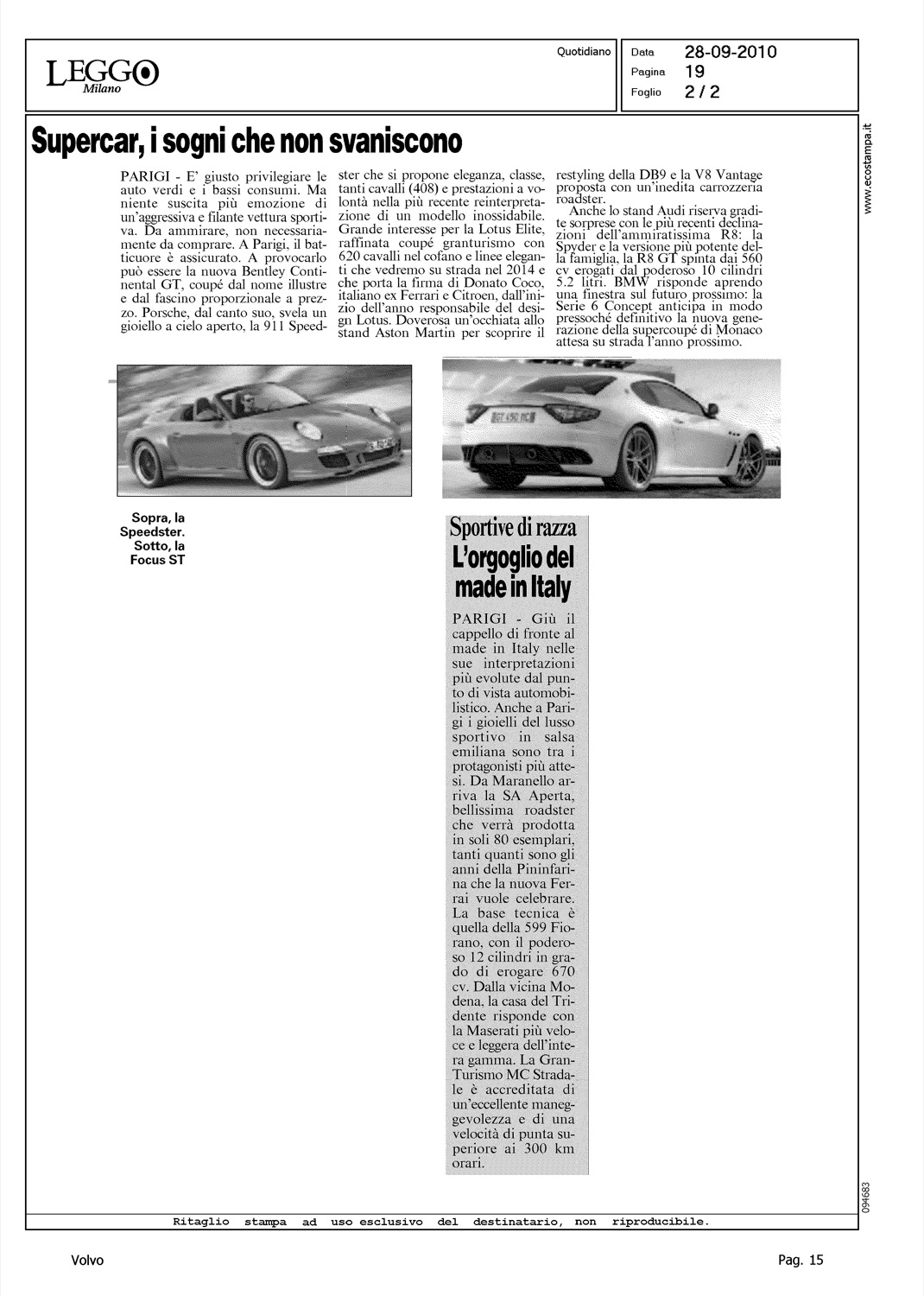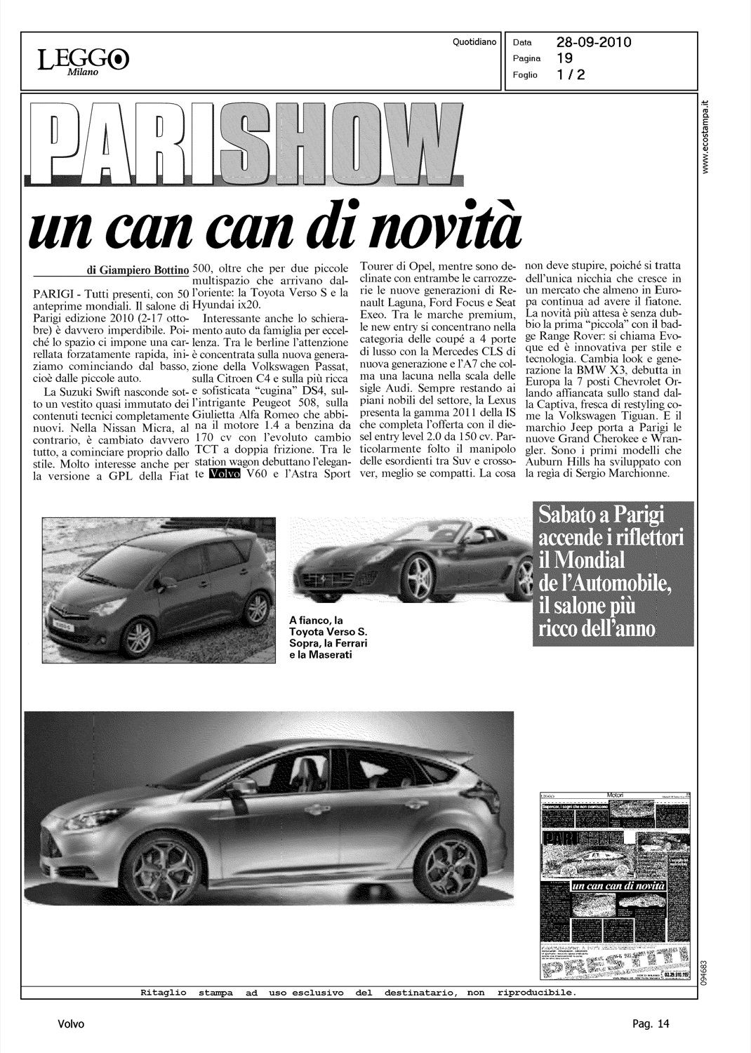Author: BOTTINO, GIAMPIEROLine: Corporate Model: Corporate Subject: - Title: PARISHOW - UN CAN CAN DI NOVITA'Highlight: PARIGI - NOVITA' - VOLVO V60
