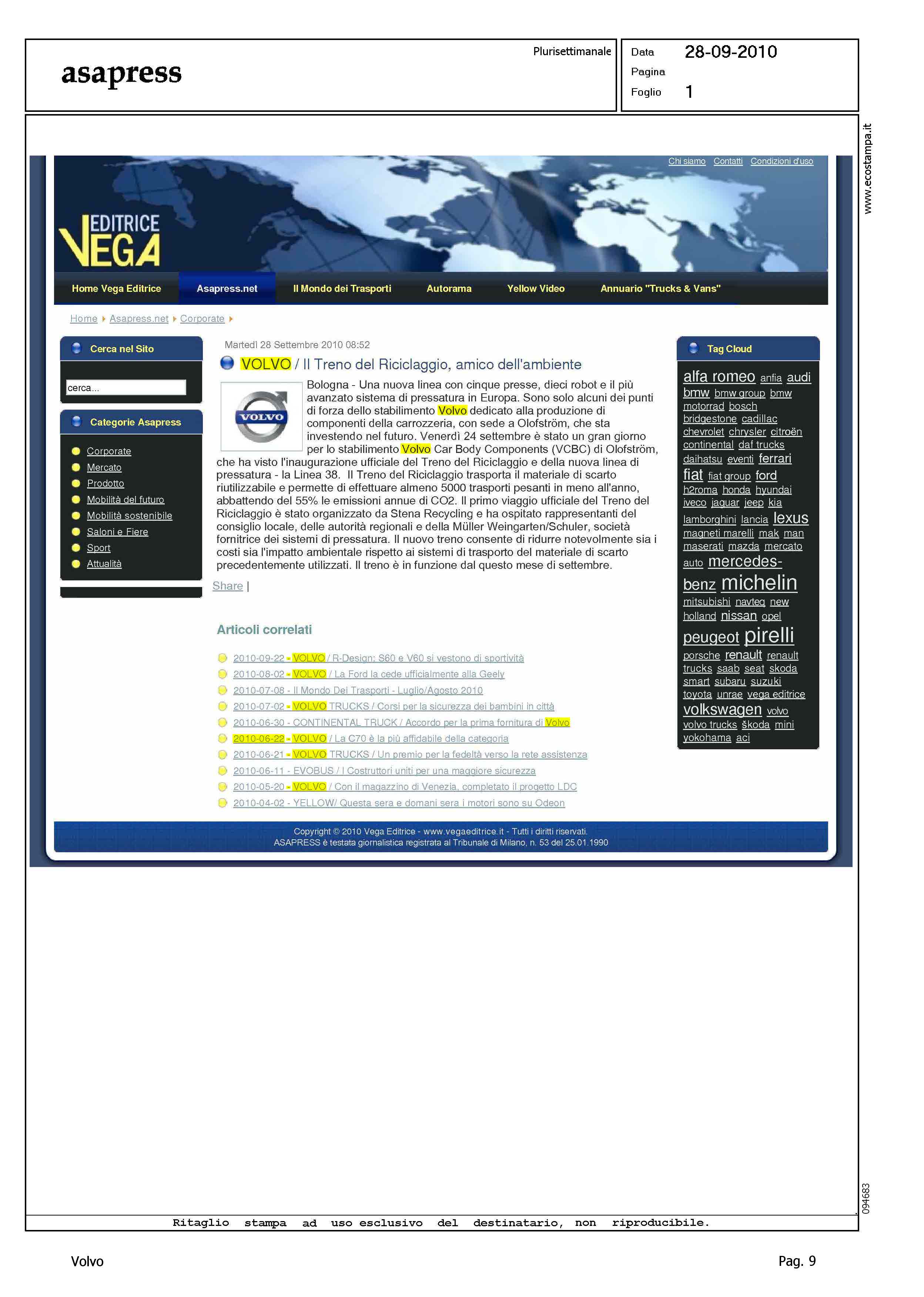 Author: Line: Corporate Model: Corporate Subject: - Title: VOLVO/IL TRENO DEL RICICLAGGIO, AMICO DELL'AMBIENTEHighlight: TRENO DEL RICICLAGGIO - STABILIMENTO OLOFSTROM