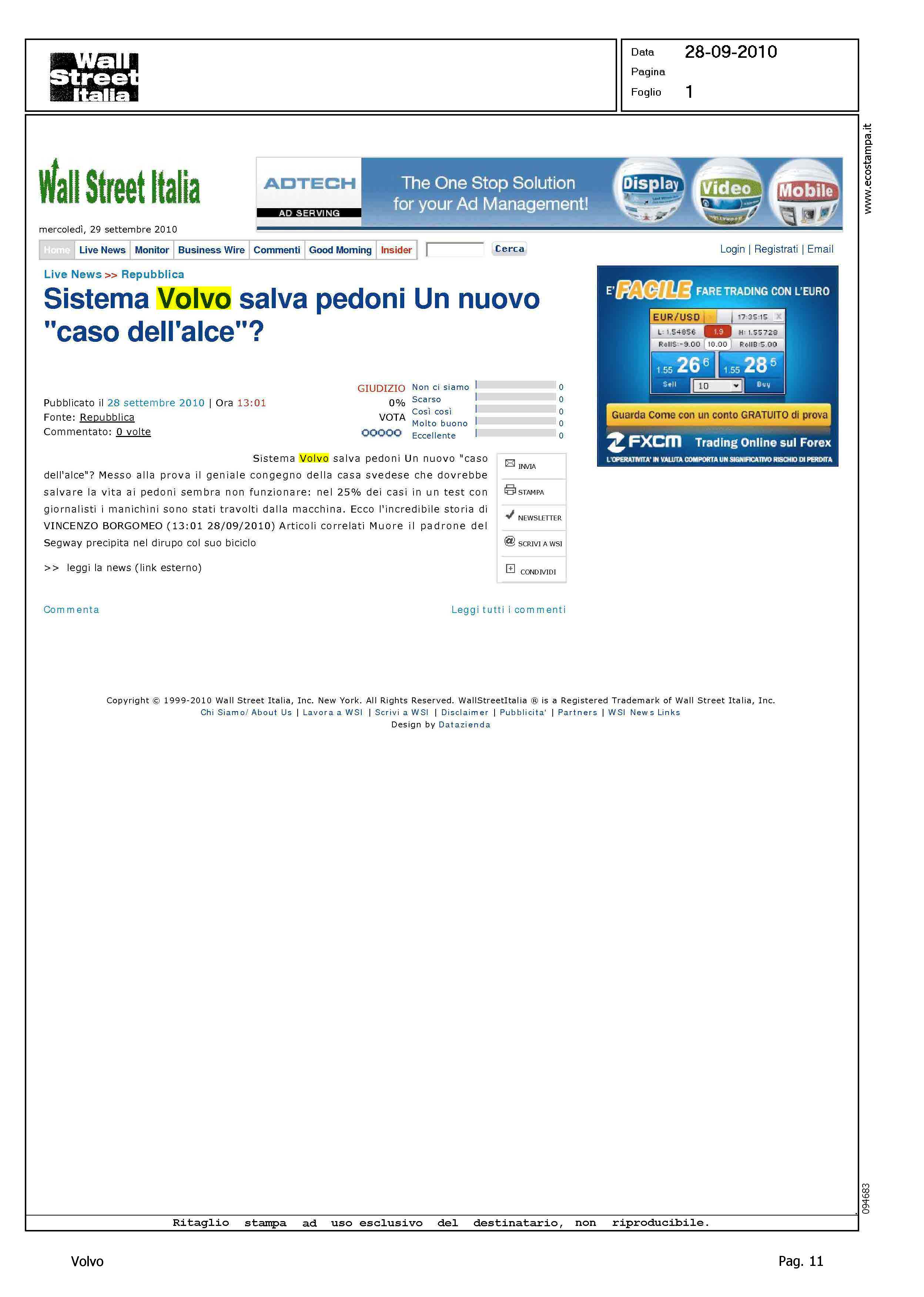Author: Line: Corporate Model: Corporate Subject: - Title: SISTEMA VOLVO SALVA PEDONI - UN NUOVO 'CASO DELL'ALCE'?Highlight: PEDESTRIAN DETECTION, ERRORE NEL TEST