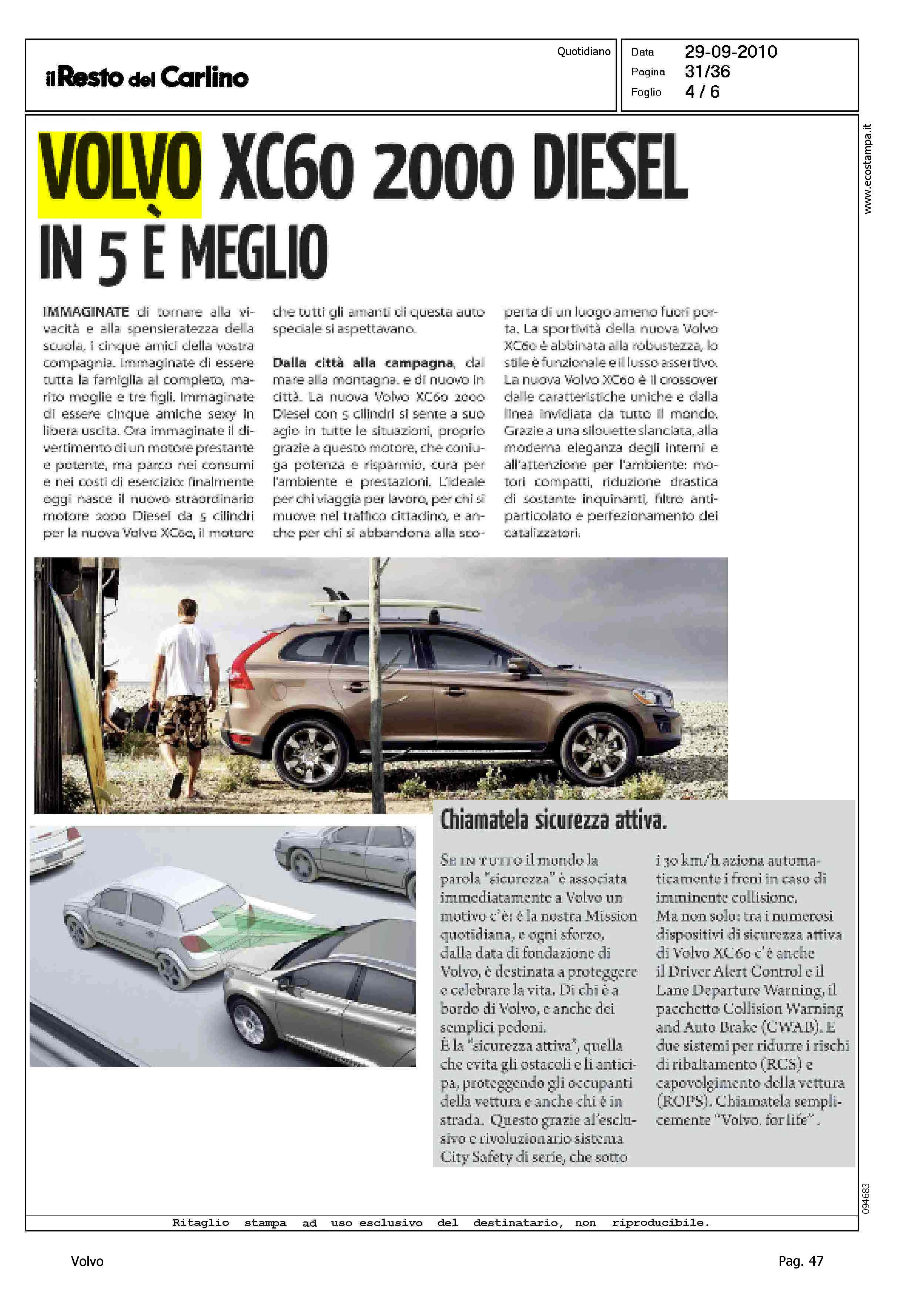 Author: Line: XC60 Model: Subject: - Title: VOLVO XC60 2000 DIESEL IN 5 E' MEGLIO - CHIAMATELA SICUREZZA ATTIVAHighlight: MOTORE - PROFILO PRODOTTO - SICUREZZA - ABITACOLO - CITY SAFETY - ACCESSORI SICUREZZA DINAMICA DI MARCIA