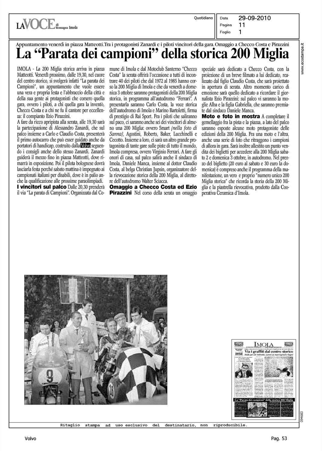 Author: Line: Corporate Model: Corporate Subject: - Title: LA 'PARATA DEI CAMPIONI' DELLA STORICA 200 MIGLIAHighlight: (EDIZIONE IMOLA) - CLINICA MOBILE - COSTA - 200 MIGLIA STORICA