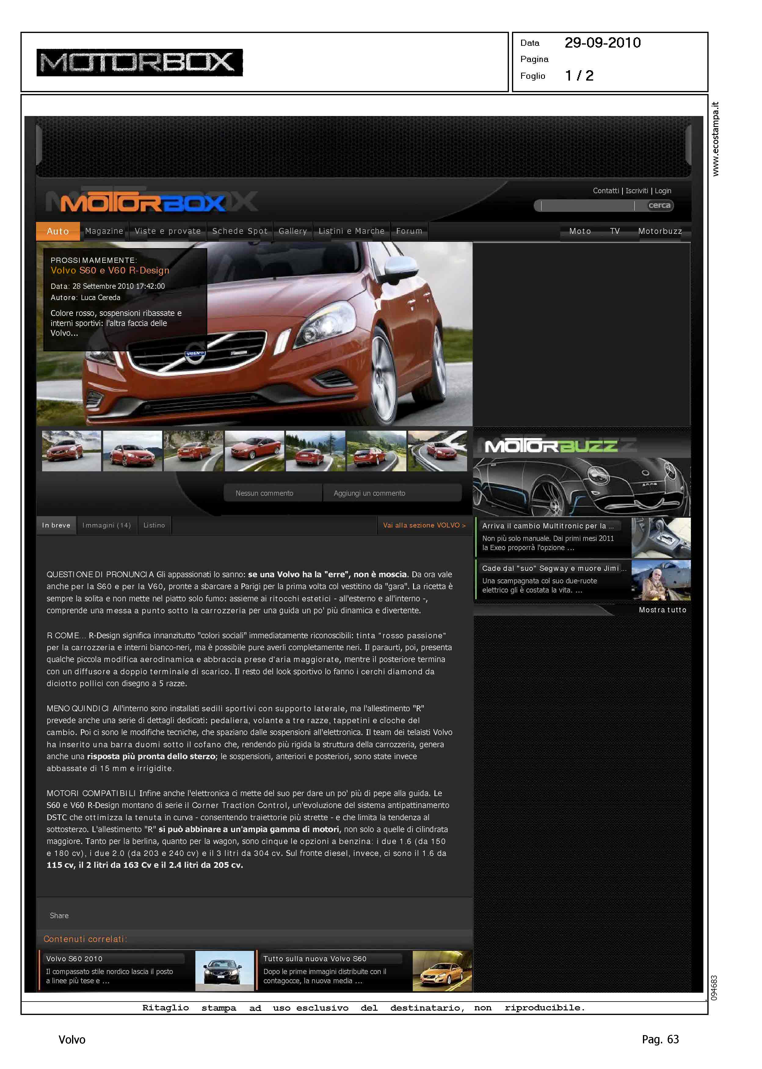 Author: Line: Corporate Model: Corporate Subject: - Title: PROSSIMAMENTE - VOLVO S60 E V60 R-DESIGNHighlight: PARIGI - COLORE - ACCESSORI - DSIGN - ABITACOLO - INTERNI - MOTORI - PRESTAZIONI - R DESIGN