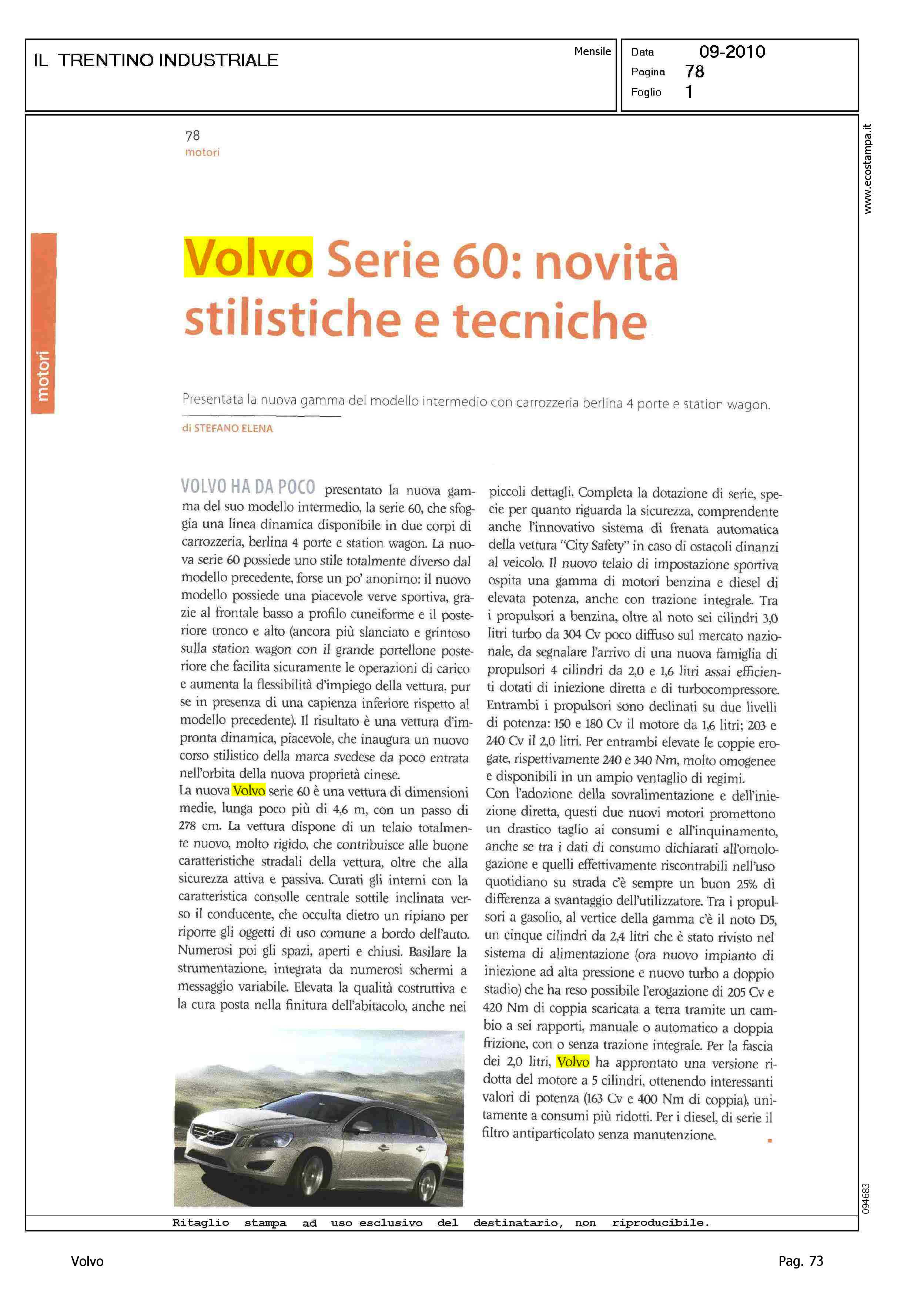 Title: VOLVO SERIE 60: NOVITA' STILISTICHE E TECNICHE