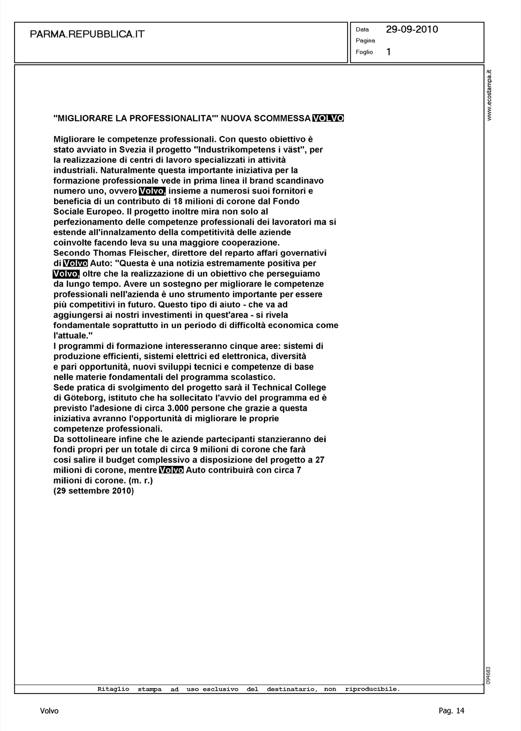 Author: Line: Corporate Model: Subject: - Title: "MIGLIORARE LA PROFESSIONALITA" NUOVA SCOMMESSA VOLVOHighlight: (EDIZIONE PARMA) - "INDUSTRIKOMPETENS I VAST" - TECHNICAL COLLEGE GOTEBORG - VOLVO AUTO - AB VOLVO
