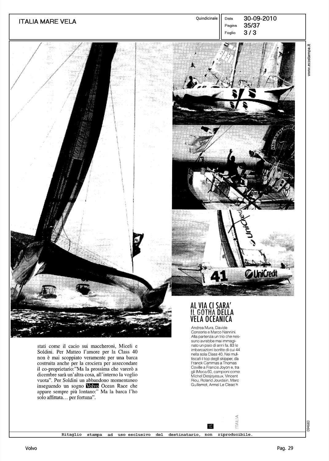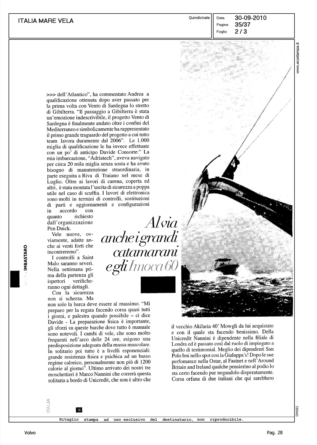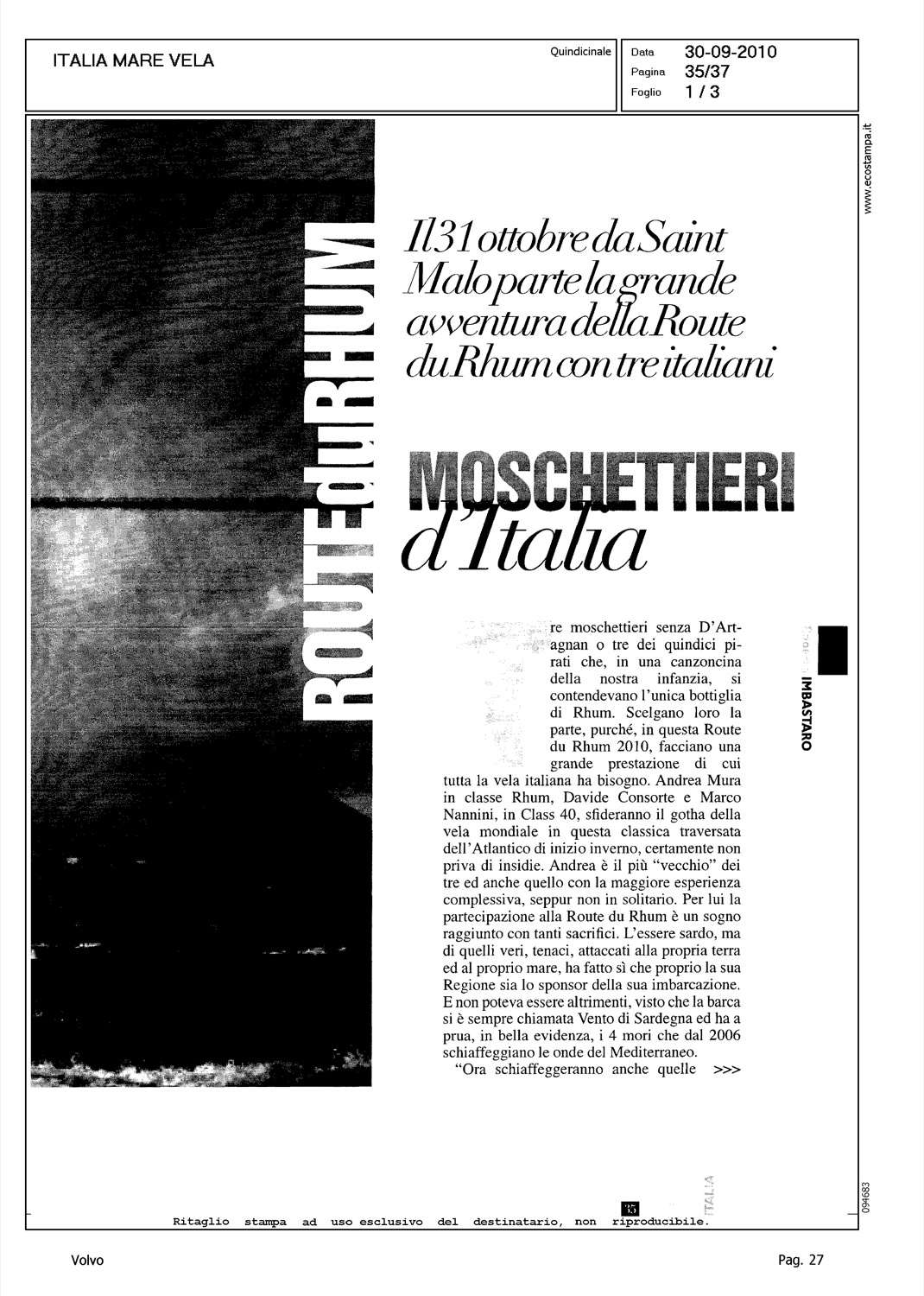 Author: IMBASTARO, ROBERTOLine: Corporate Model: Corporate Subject: Volvo Ocean Race Title: MOSCHETTIERI D'ITALIAHighlight: VOLVO OCEAN RACE - GIOVANNI SOLDINI
