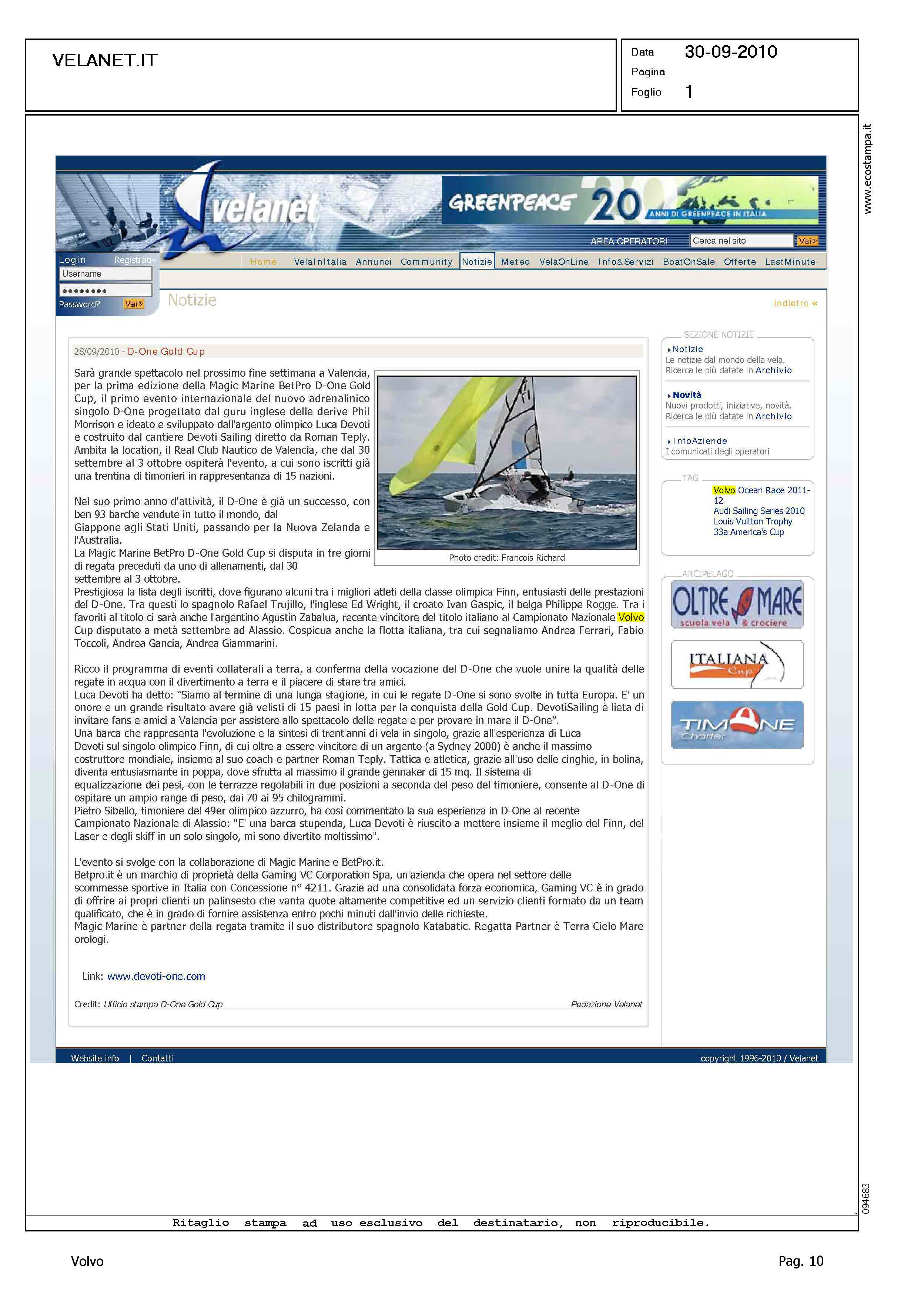 Author: Line: Corporate Model: Corporate Subject: Volvo Cup Title: D-ONE GOLDEN CUPHighlight: REGATE DI VALENCIA