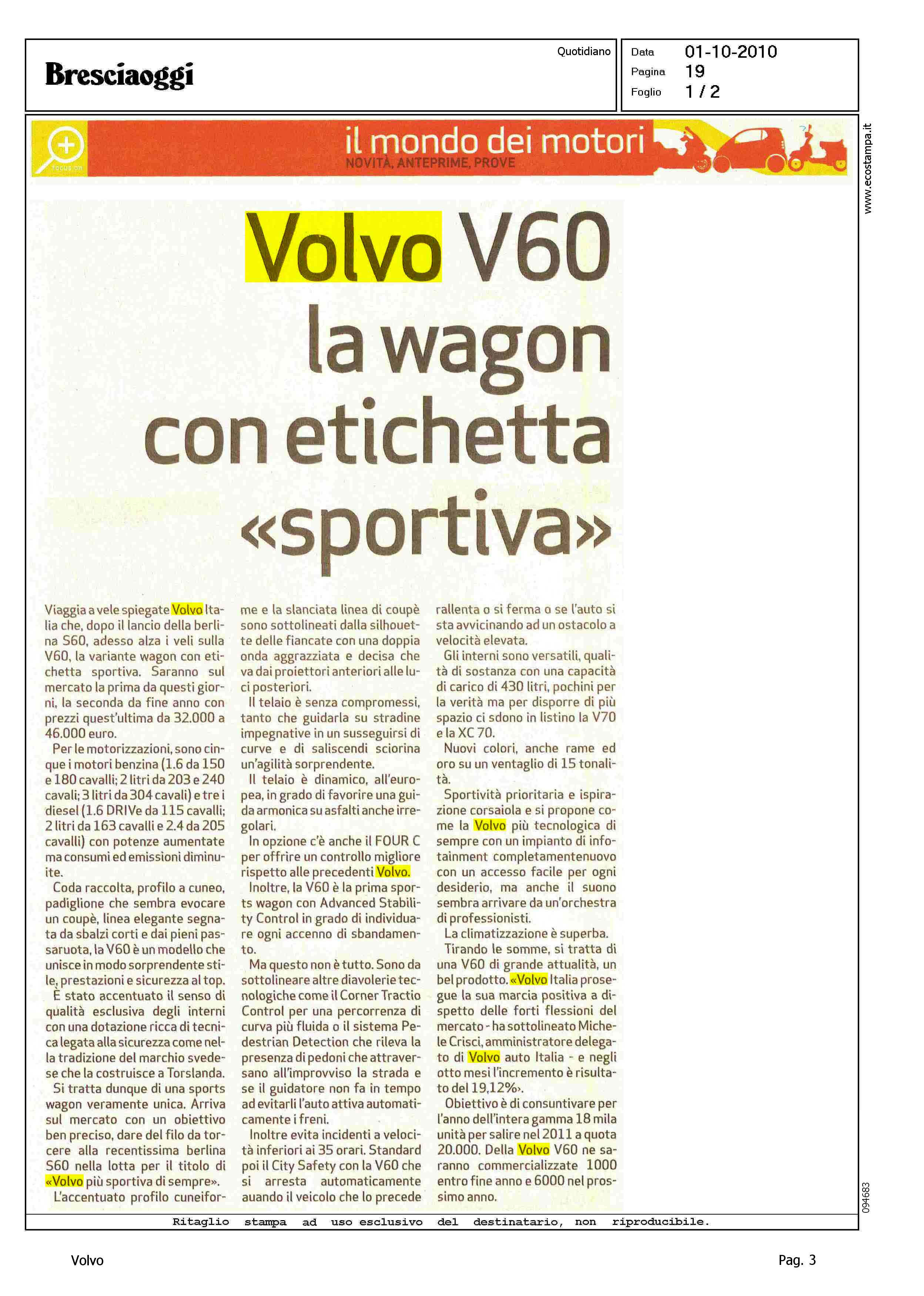 Title: VOLVO V60 LA WAGON CON ETICHETTA "SPORTIVA"