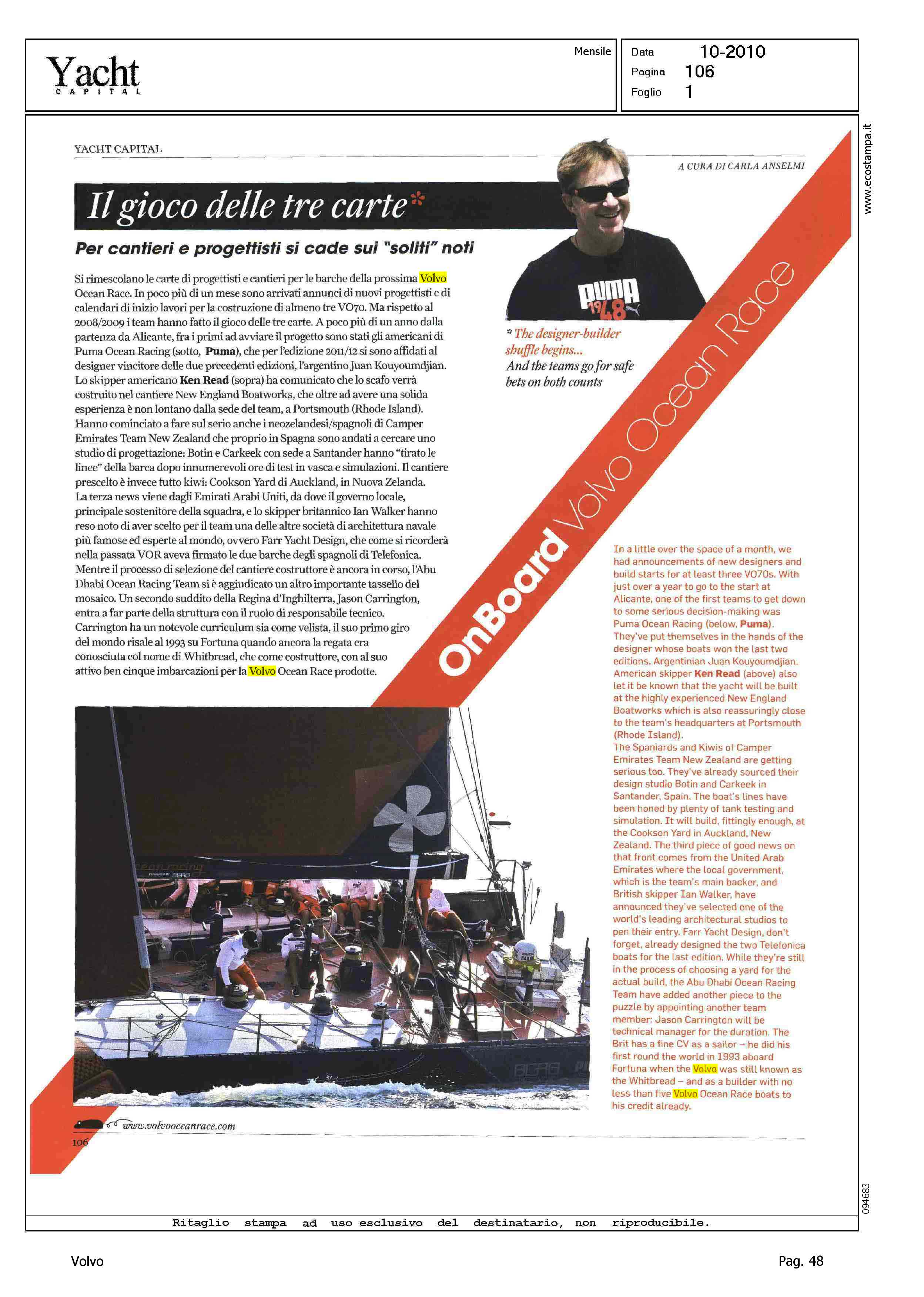Author: ANSELMI, CARLALine: Corporate Model: Corporate Subject: Volvo Ocean Race Title: IL GIOCO DELLE TRE CARTEHighlight: REGATA 2011-12 - EQUIPAGGI - TEAM DI REGATA