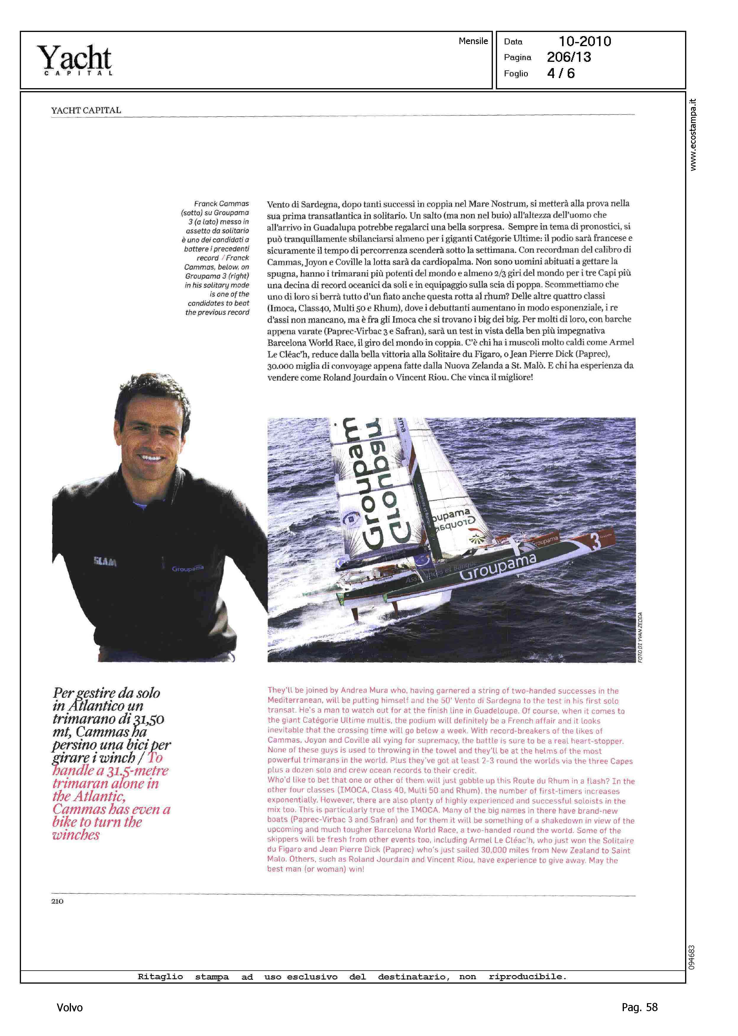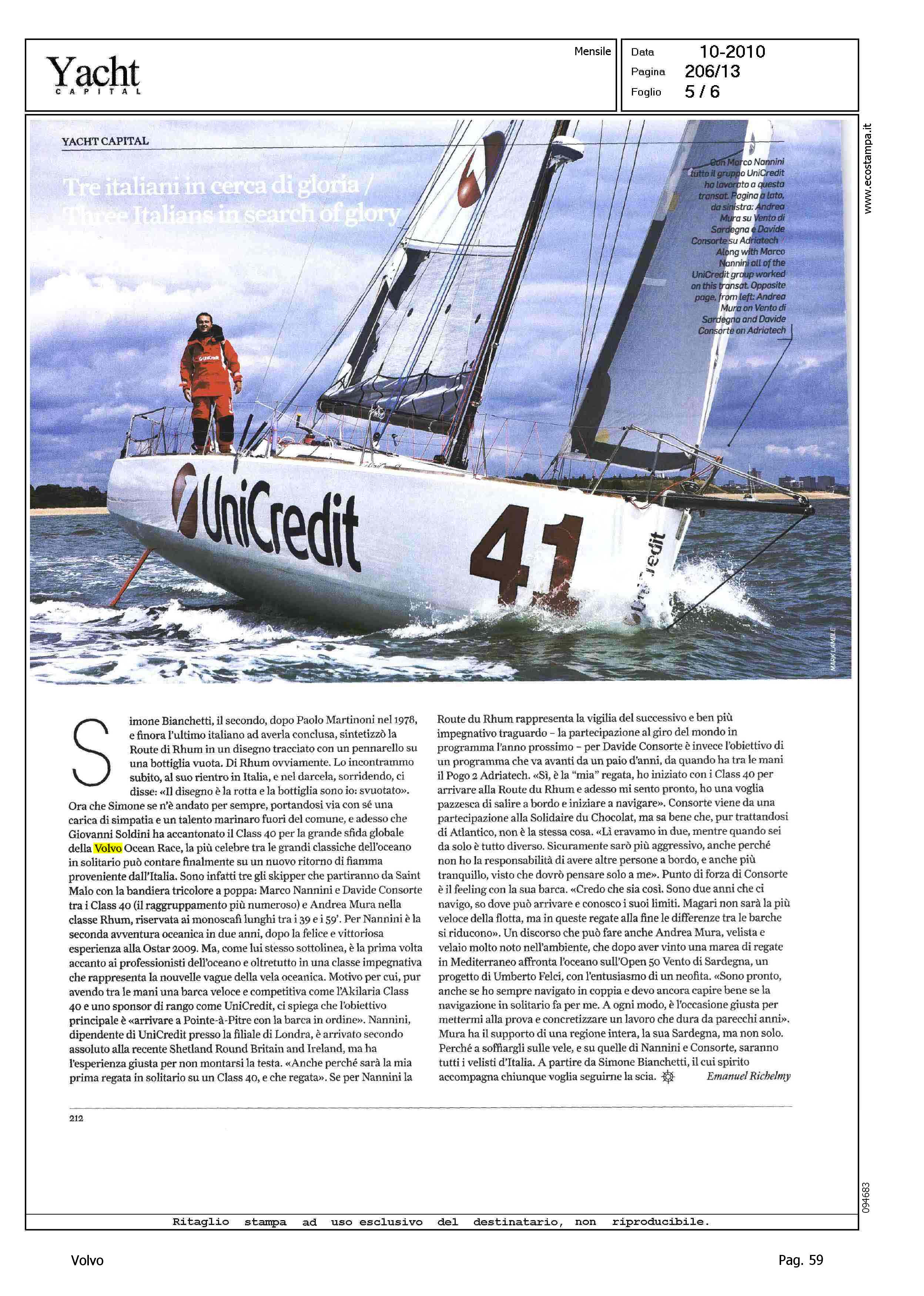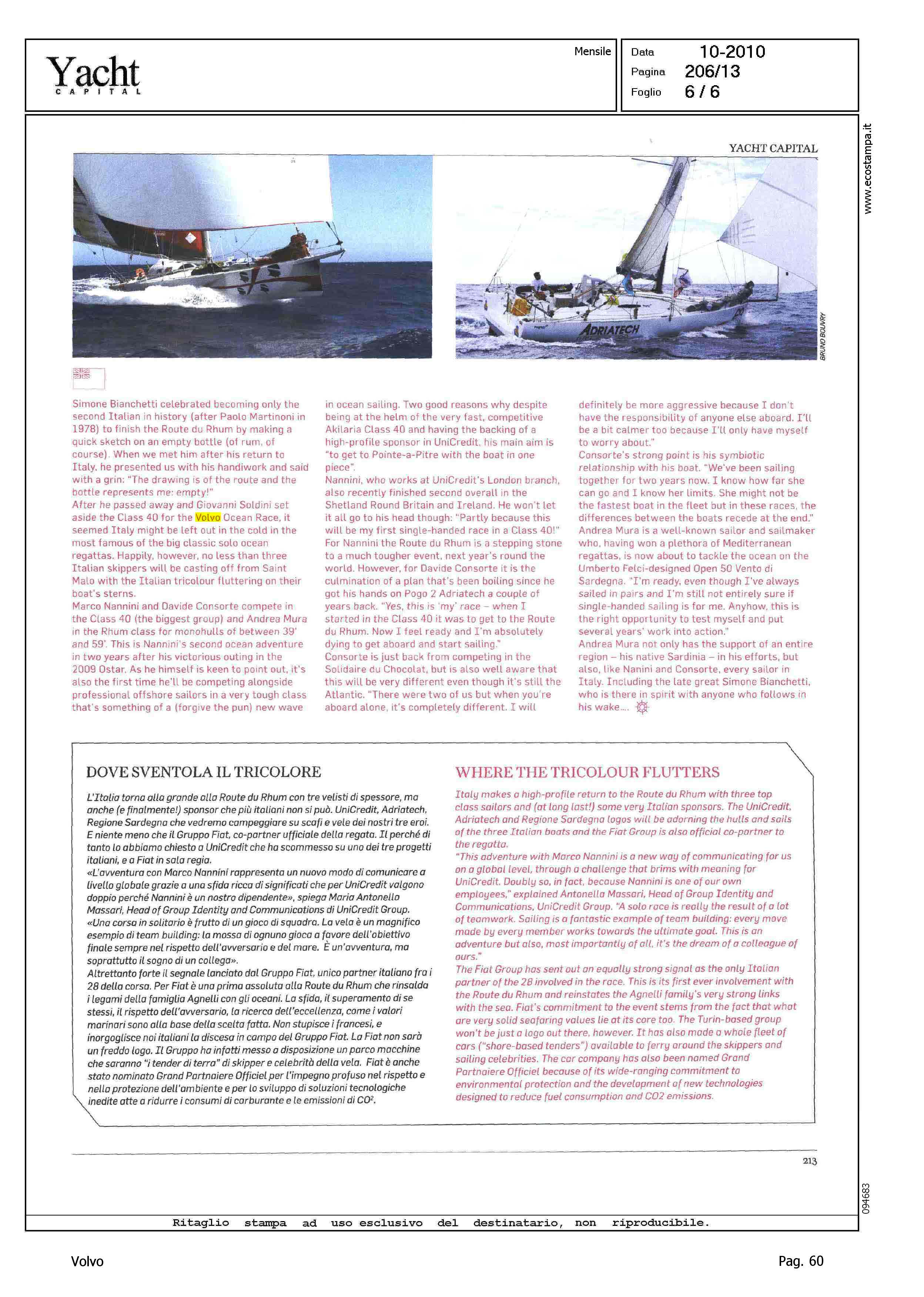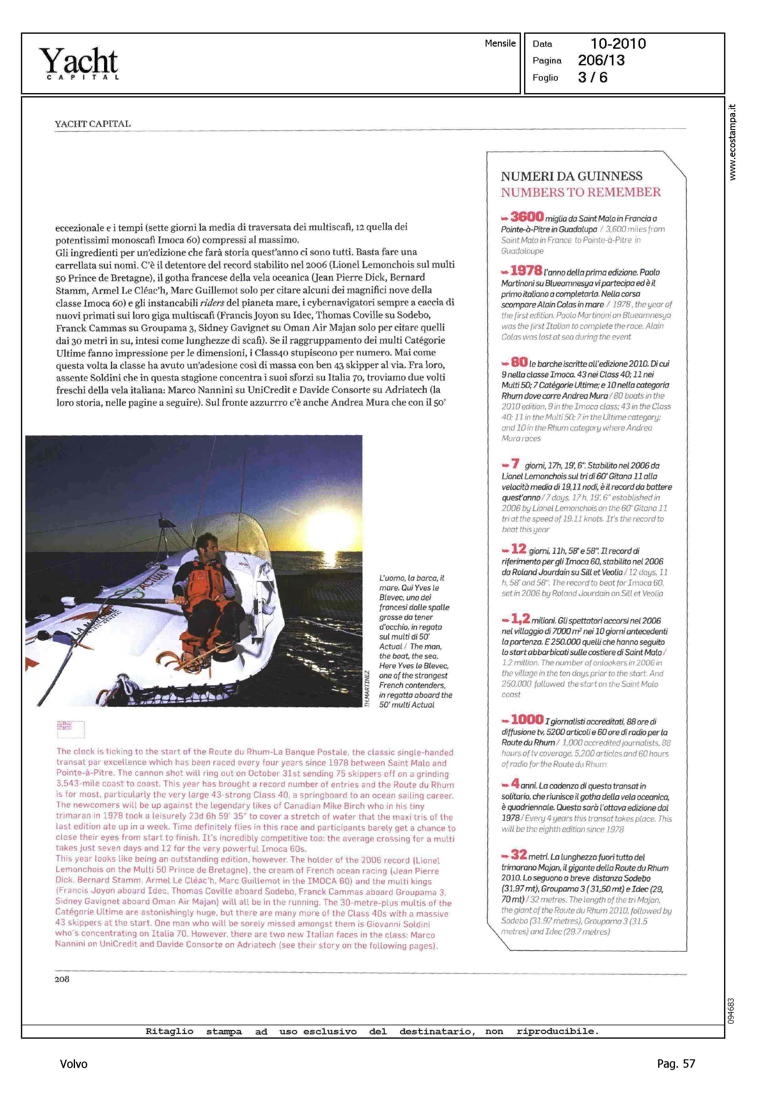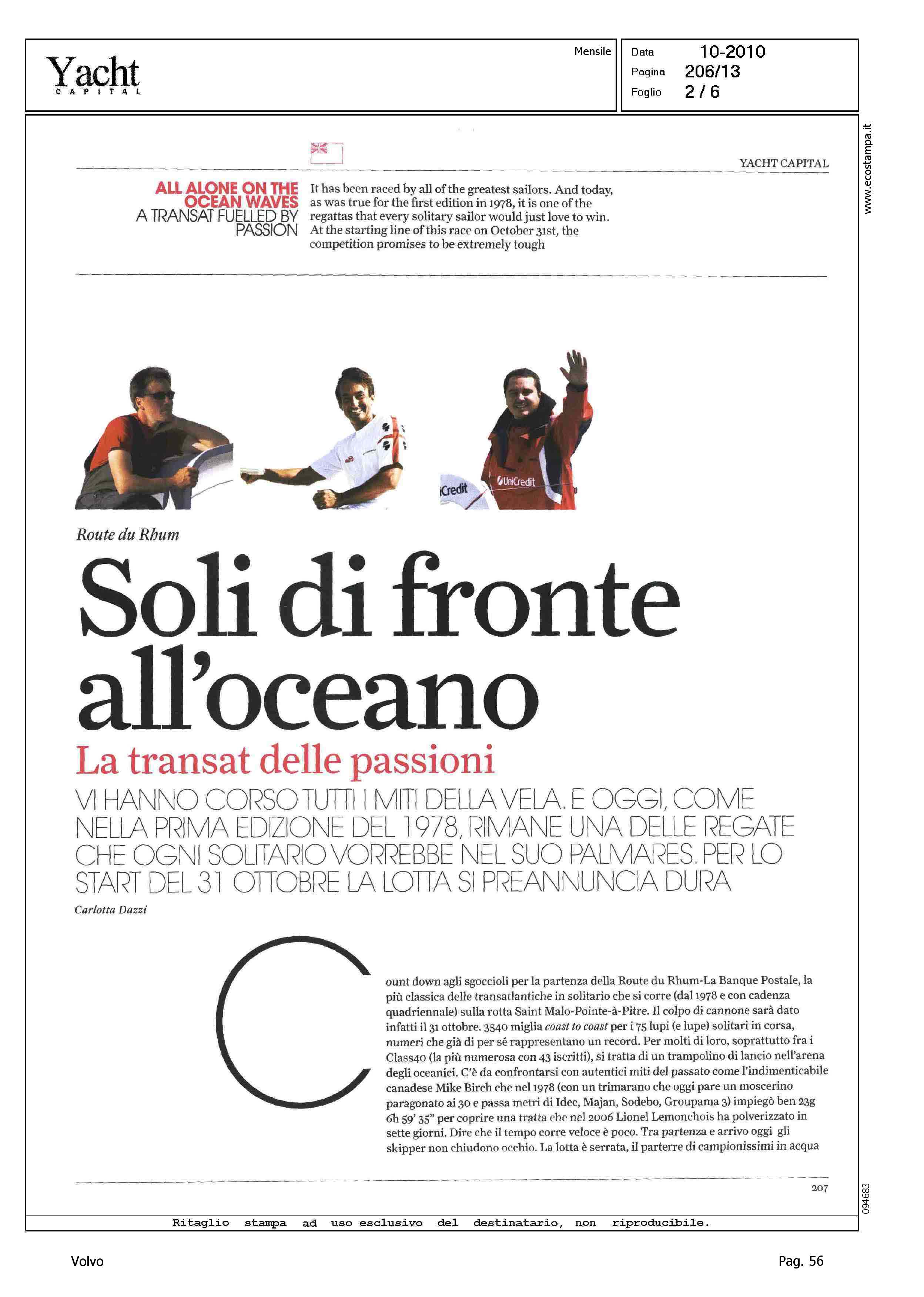 Author: DAZZI, CARLOTTALine: Corporate Model: Corporate Subject: Volvo Ocean Race Title: SOLI DI FRONTE ALL'OCEANOHighlight: ROUTE DU RHUM - VOLVO OCEAN RACE, REGATA 2011-12