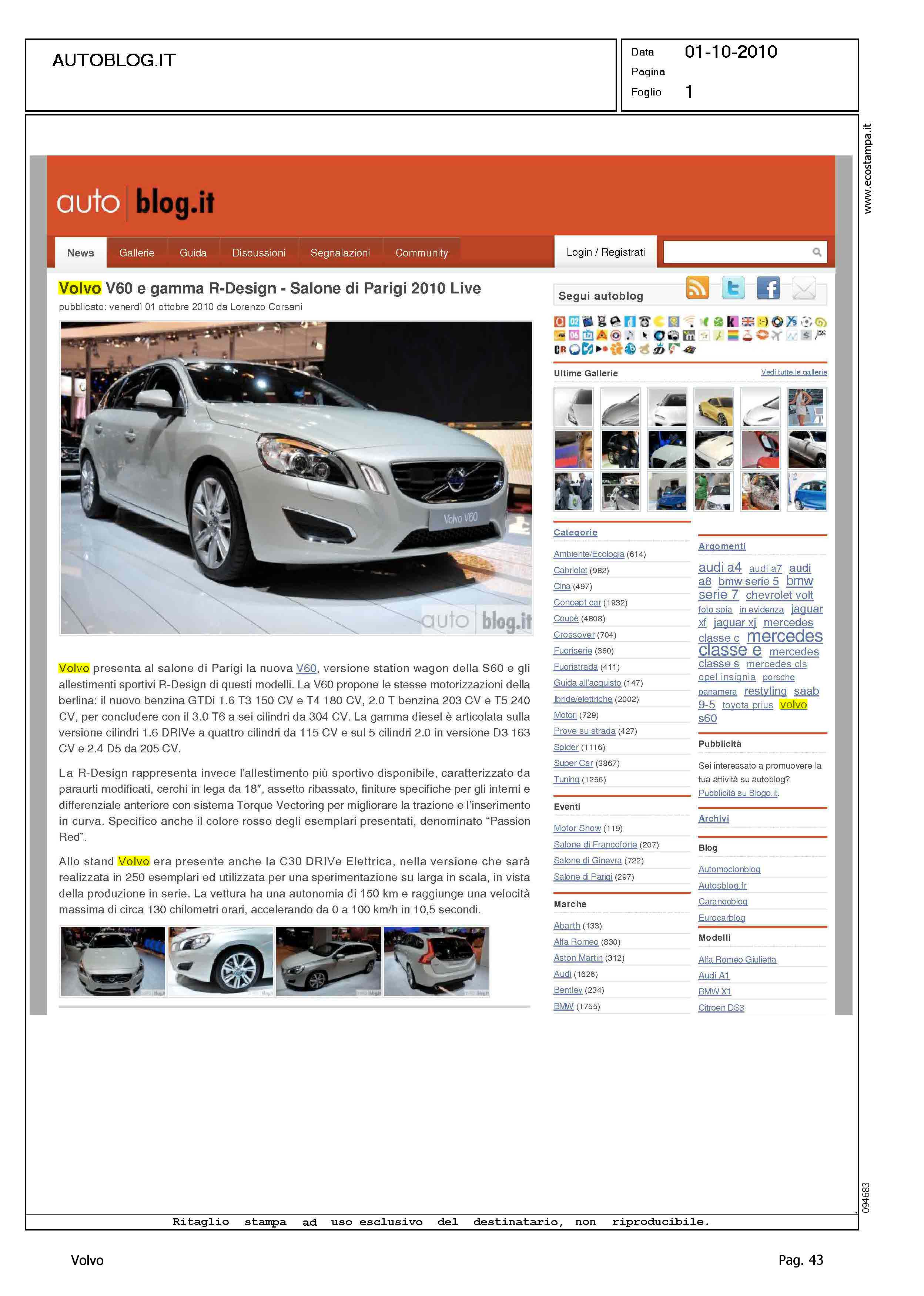 Title: VOLVO V60 E GAMMA R-DESIGN - SALONE DI PARIGI 2010 LIVE