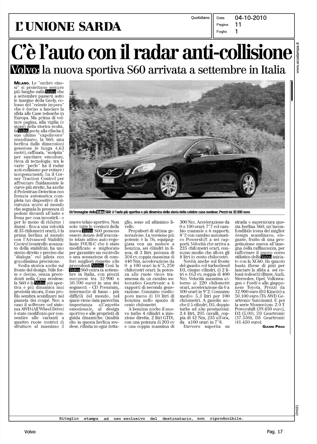 Line: S60 Model: Linea S60 Testdrive Subject: -