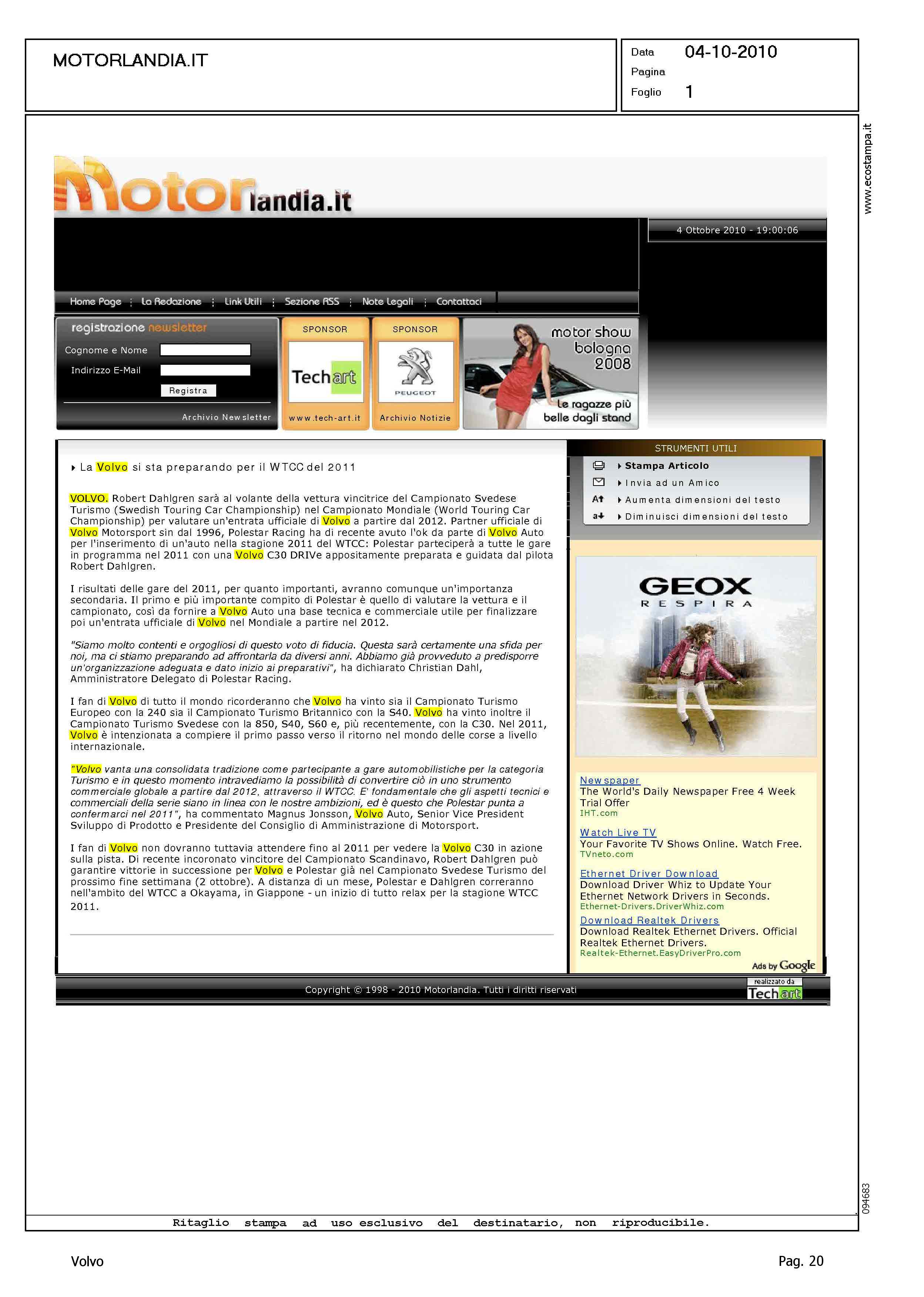 Author: Line: Corporate Model: Corporate Subject: - Title: LA VOLVO SI STA PREPARANDO PER IL WTCC DEL 2011Highlight: WTCC 2011 - VOLVO C30 DRIVe - POLESTAR