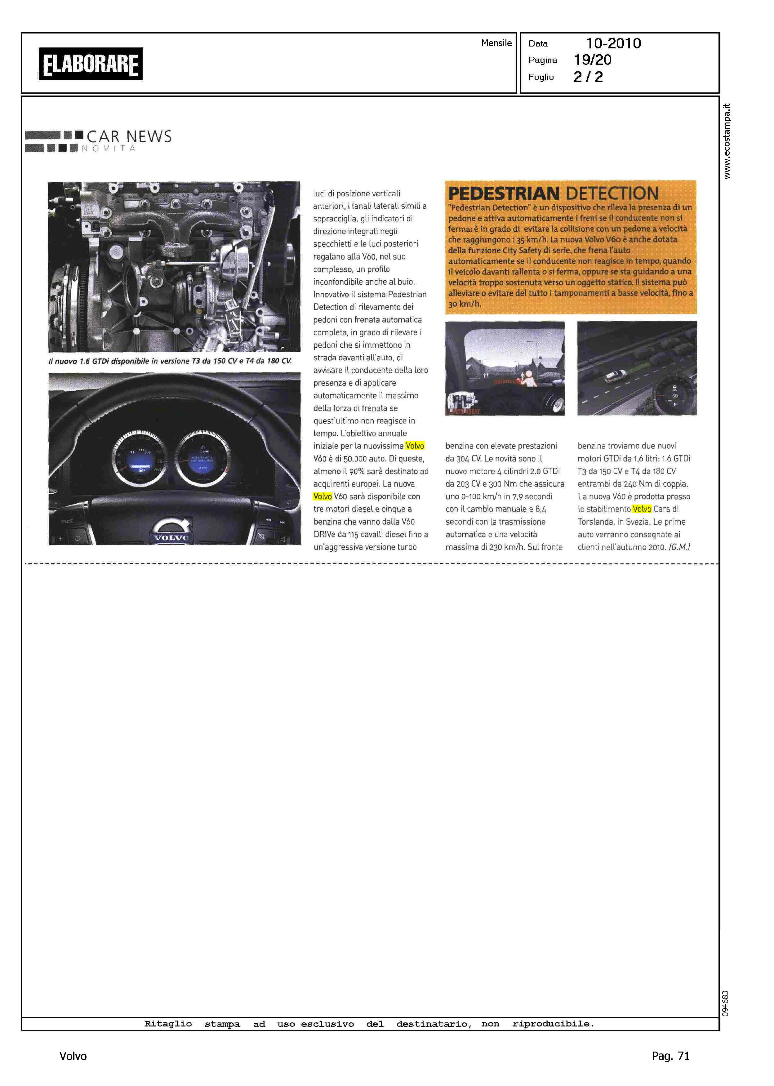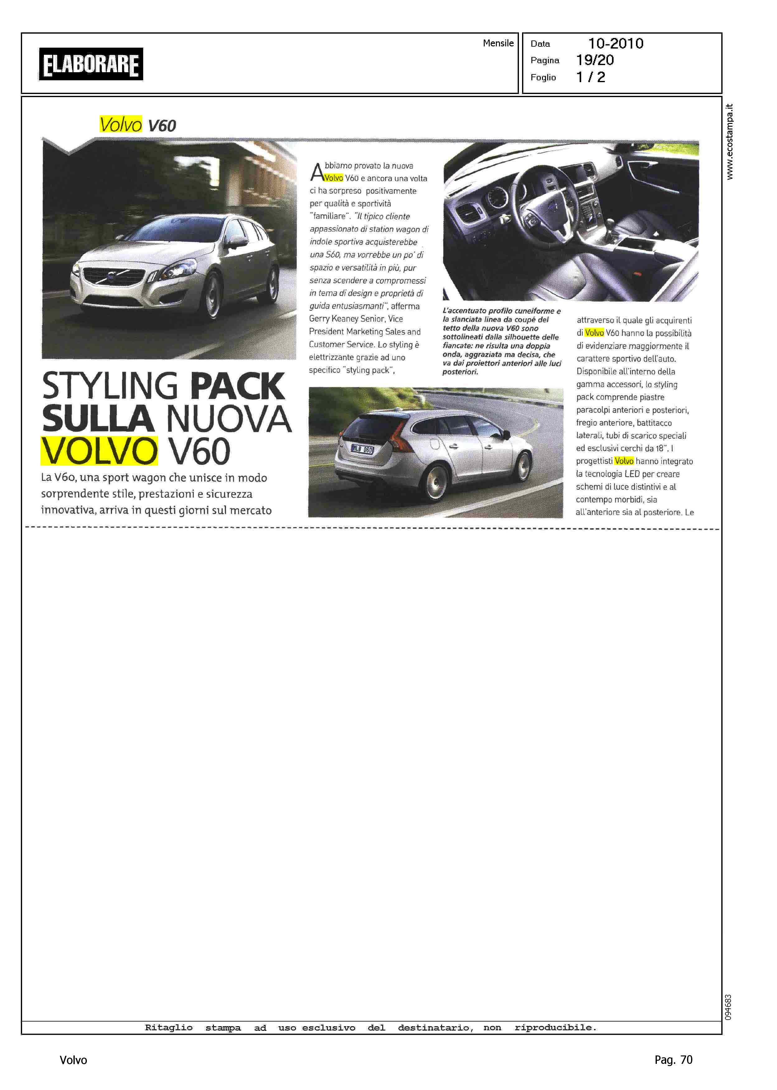 Author: Line: Corporate Model: Corporate Subject: - Title: STYLING PACK SULLA NUOVA VOLVO V60Highlight: KEANEY SU V60 - DESIGN - STYLING PACK - SICUREZZA - PEDESTRIAN DETECTION - PRODUZIONE - MOTORI - TORSLANDA