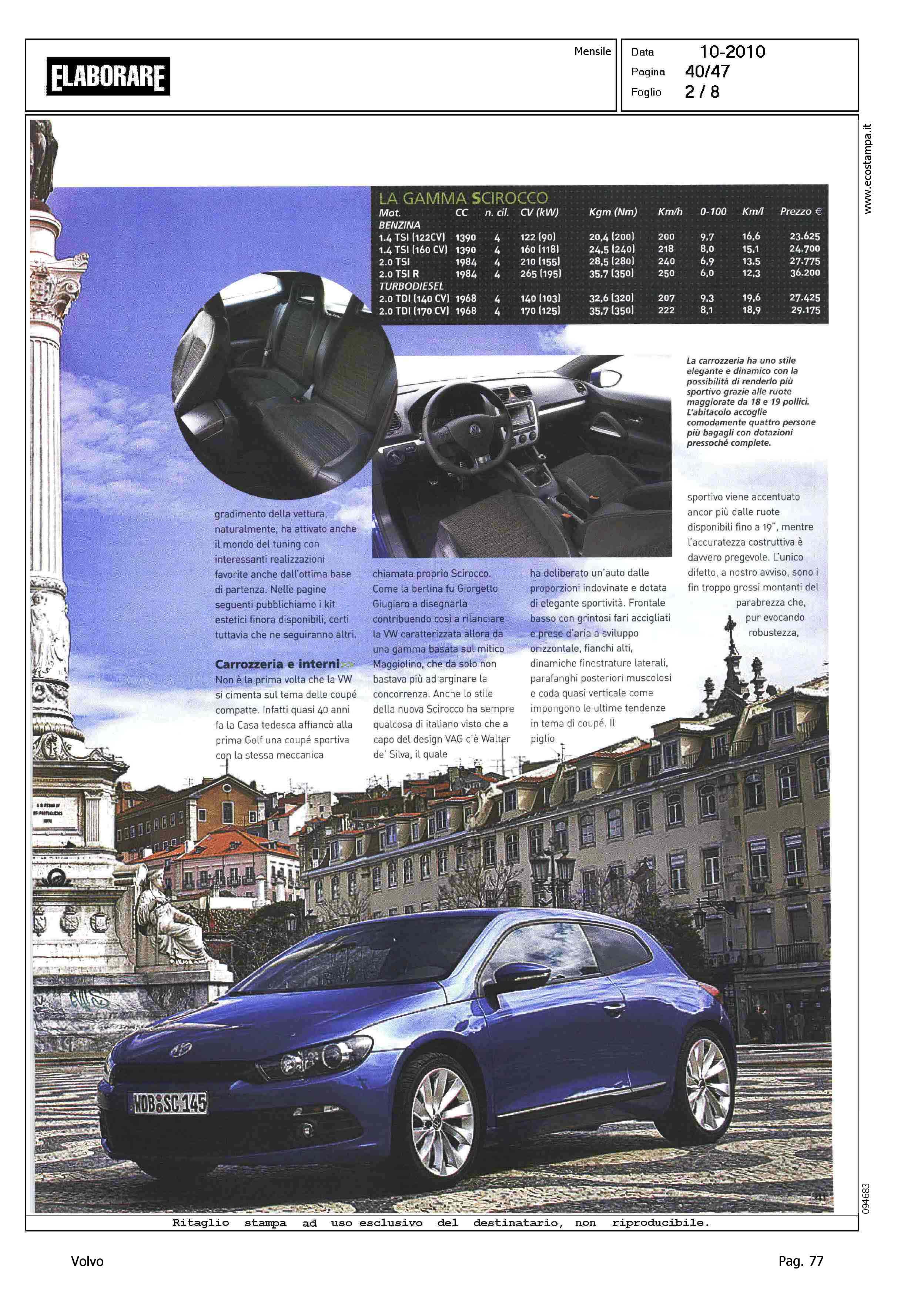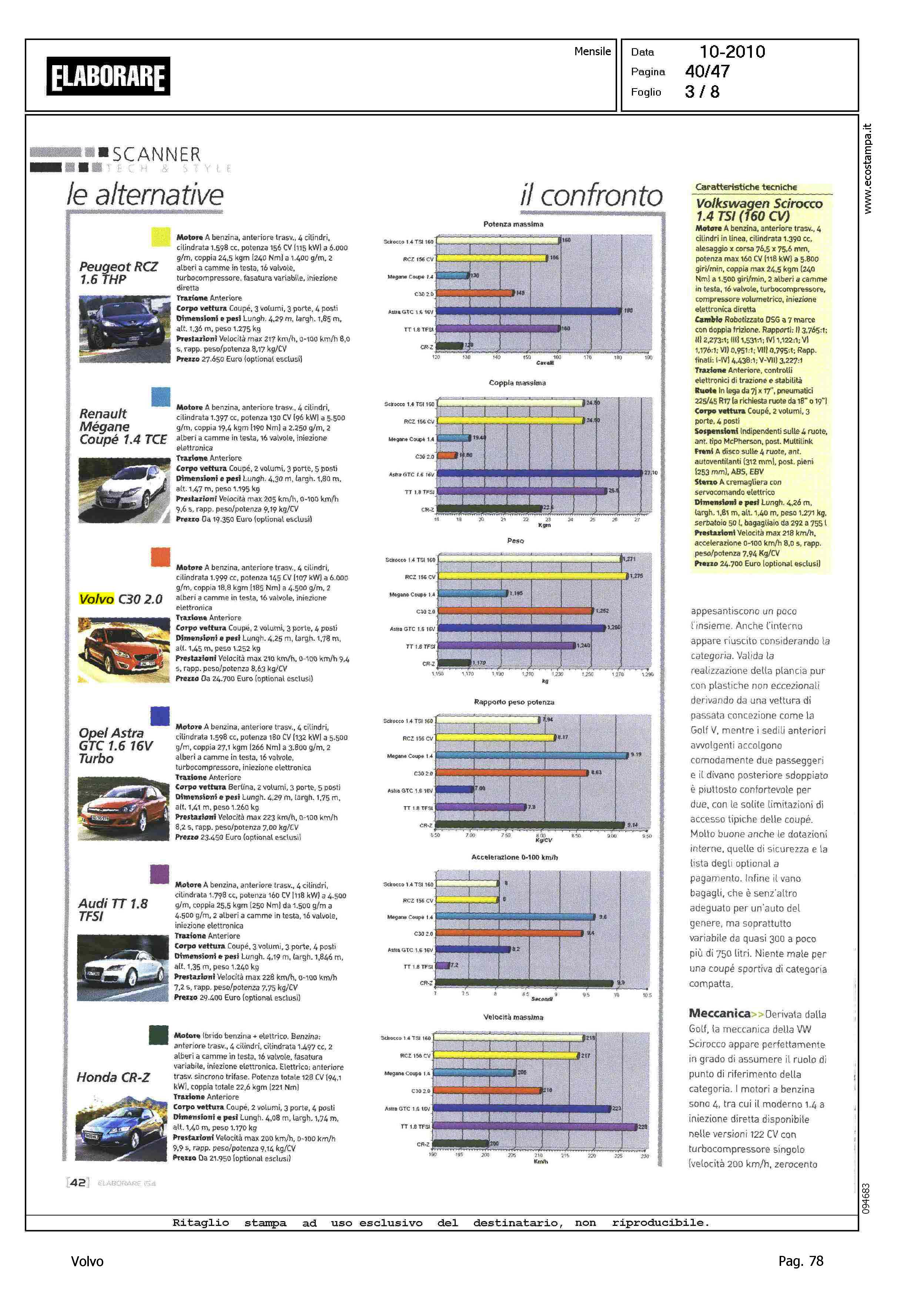 Highlight: VOLVO C30, SCHEDA TECNICA, PREZZO - COMPETITOR, ALTERNATIVA A VOLKSWAGEN SCIROCCO - GRAFICI PER POTENZA, COPPIA, PESO, RAPPORTO PESO/POTENZA, ACCELERAZIONE, VELOCITA' MASSIMA - POSIZIONE VOLVO