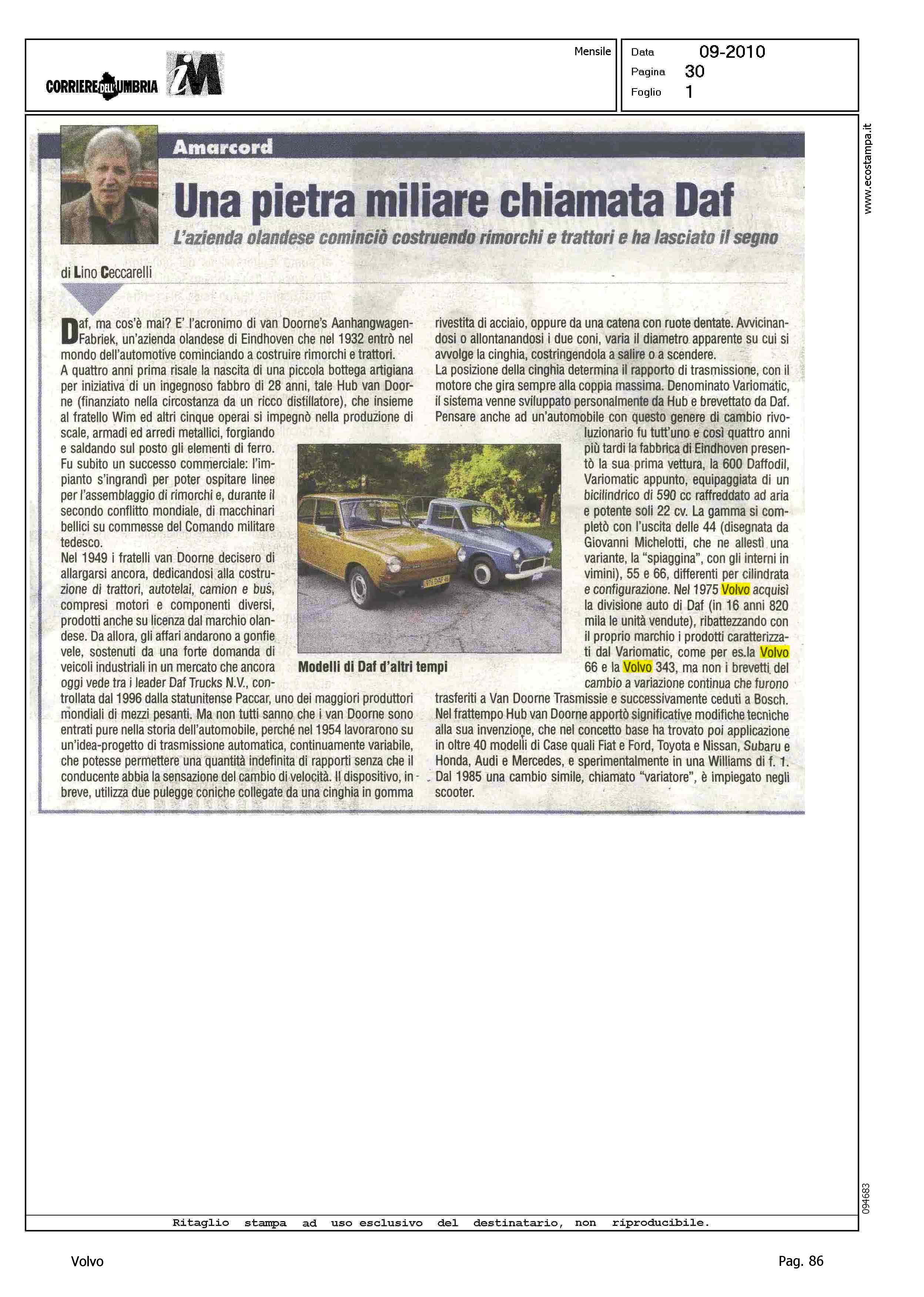 Author: CECCARELLI, LINOLine: Corporate Model: Corporate Subject: - Title: AMARCORD - UNA PIETRA MILIARE CHIAMATA DAFHighlight: VOLVO - DAF - VOLVO 66 - VOLVO 343