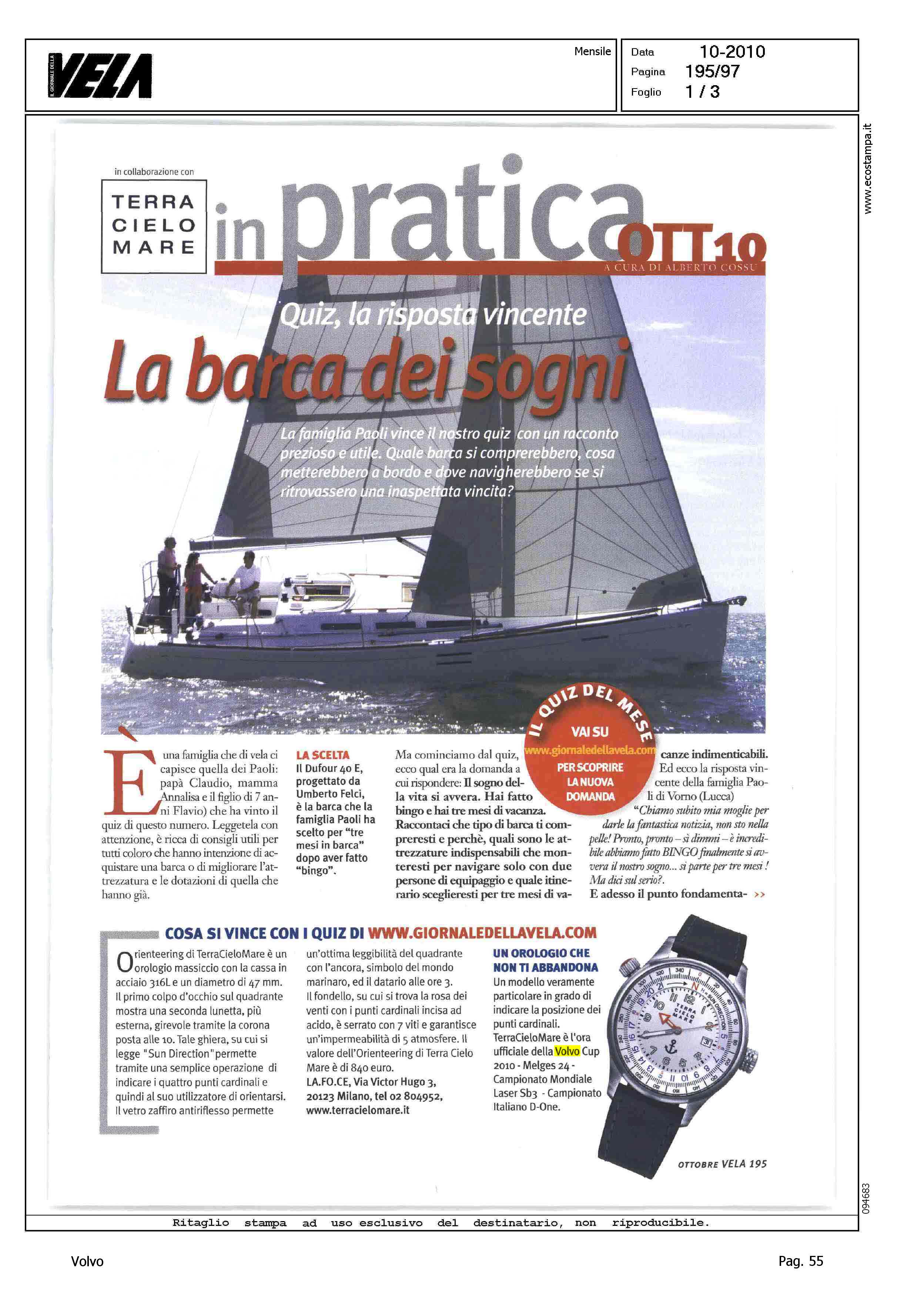 Author: COSSU, ALBERTOLine: Corporate Model: Corporate Subject: Volvo Cup Title: UN OROLOGIO CHE NON TI ABBANDONAHighlight: TERRACIELOMARE SPONSOR VOLVO CUP