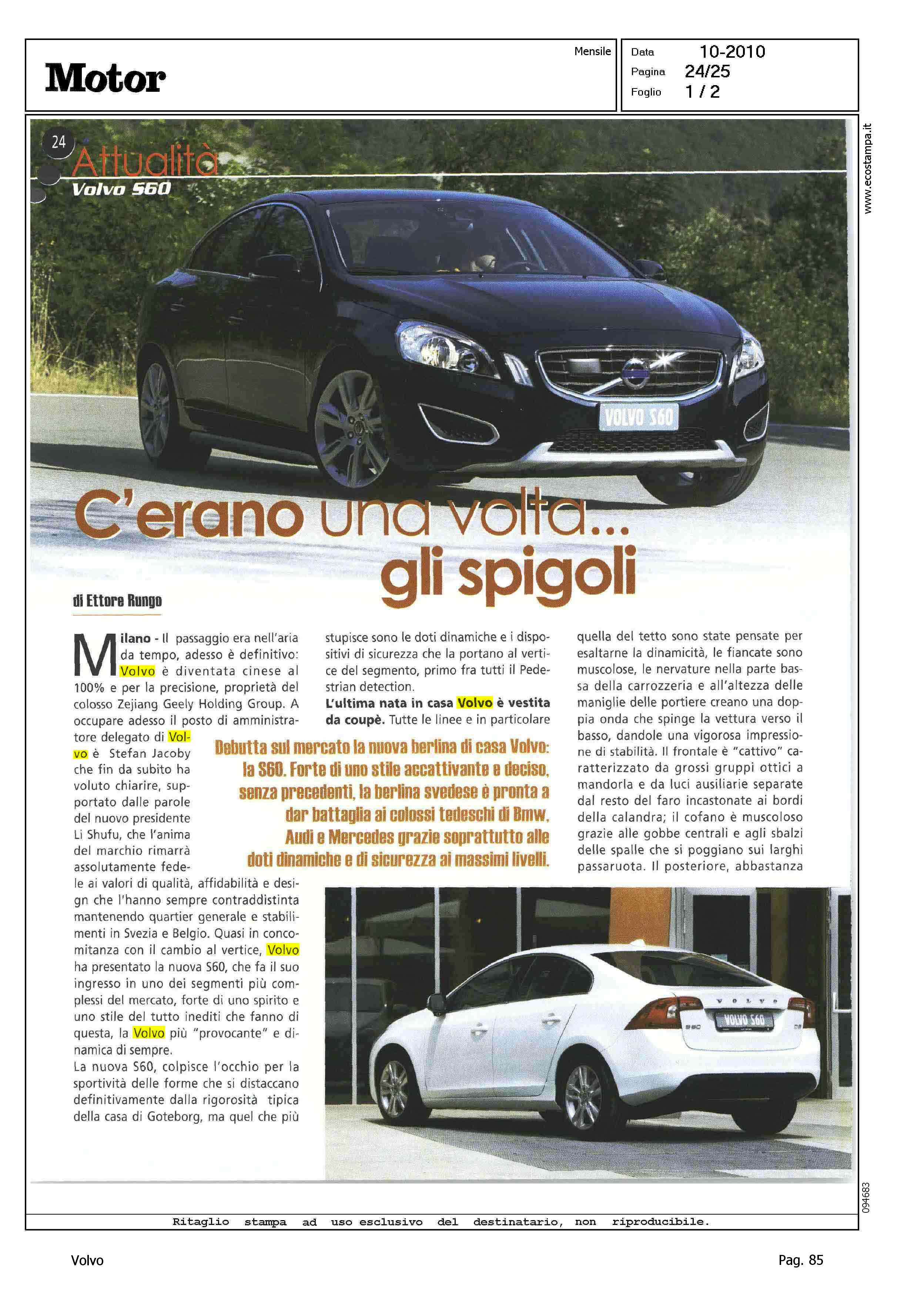 Author: RUNGO, ETTORELine: S60 Model: Linea S60 Testdrive Subject: - Title: C'ERANO UNA VOLTA... GLI SPIGOLIHighlight: MILANO - GEELY - DESIGN - SICUREZZA - ABIATCOLO - MOTORI
