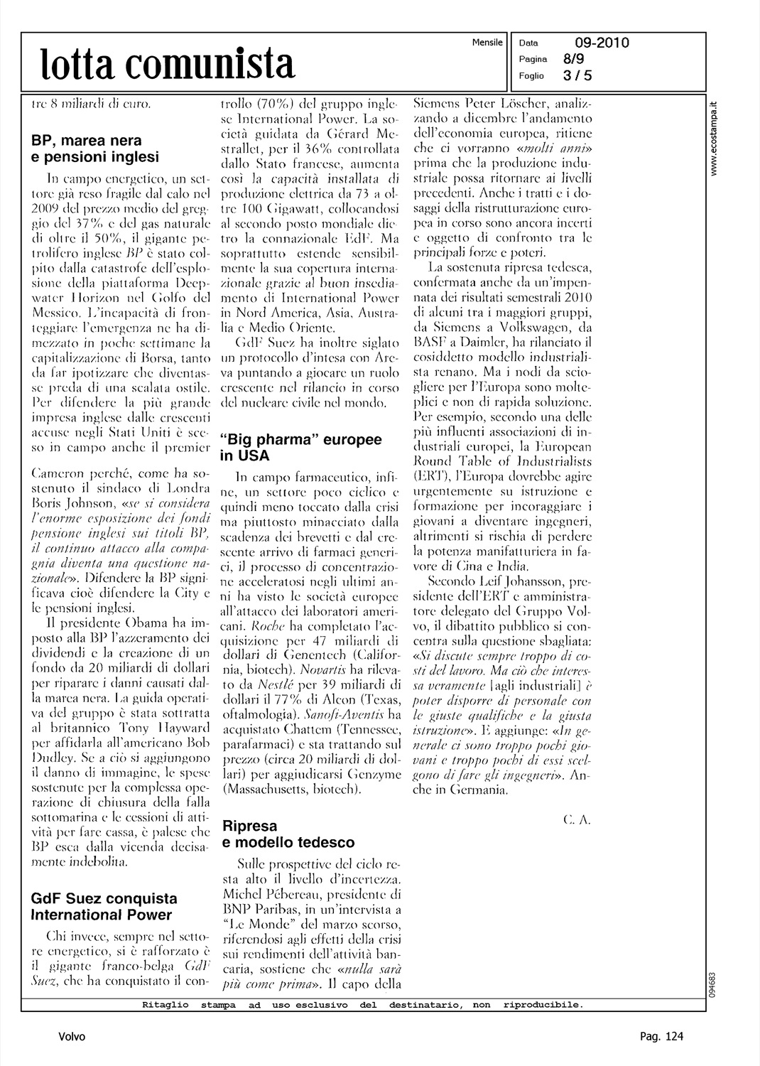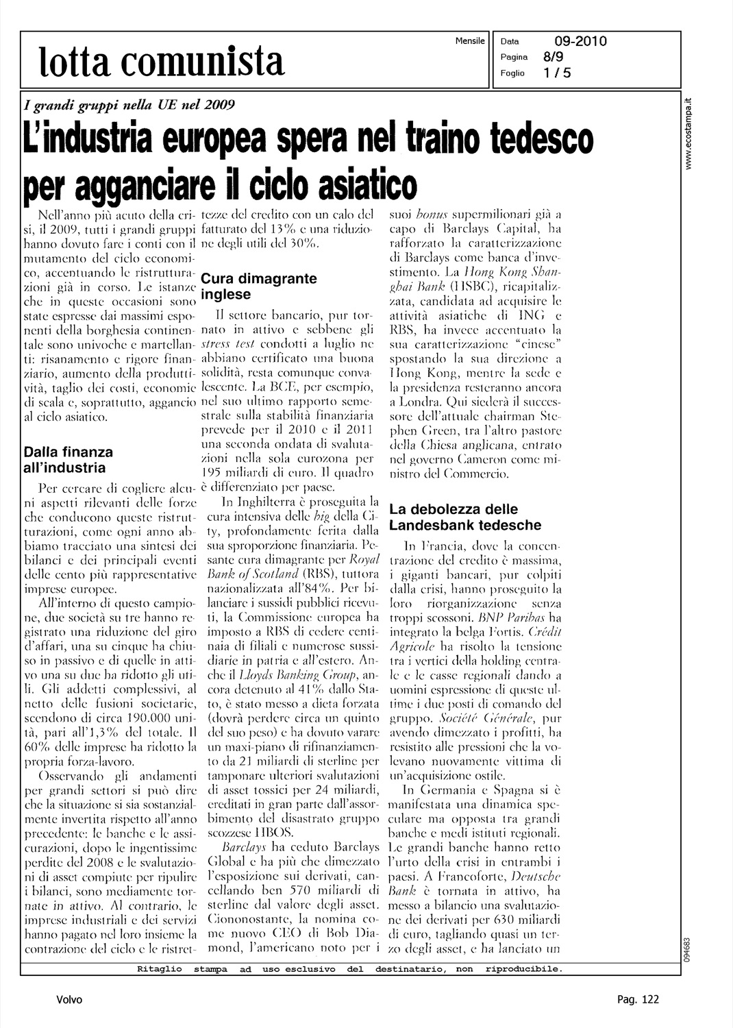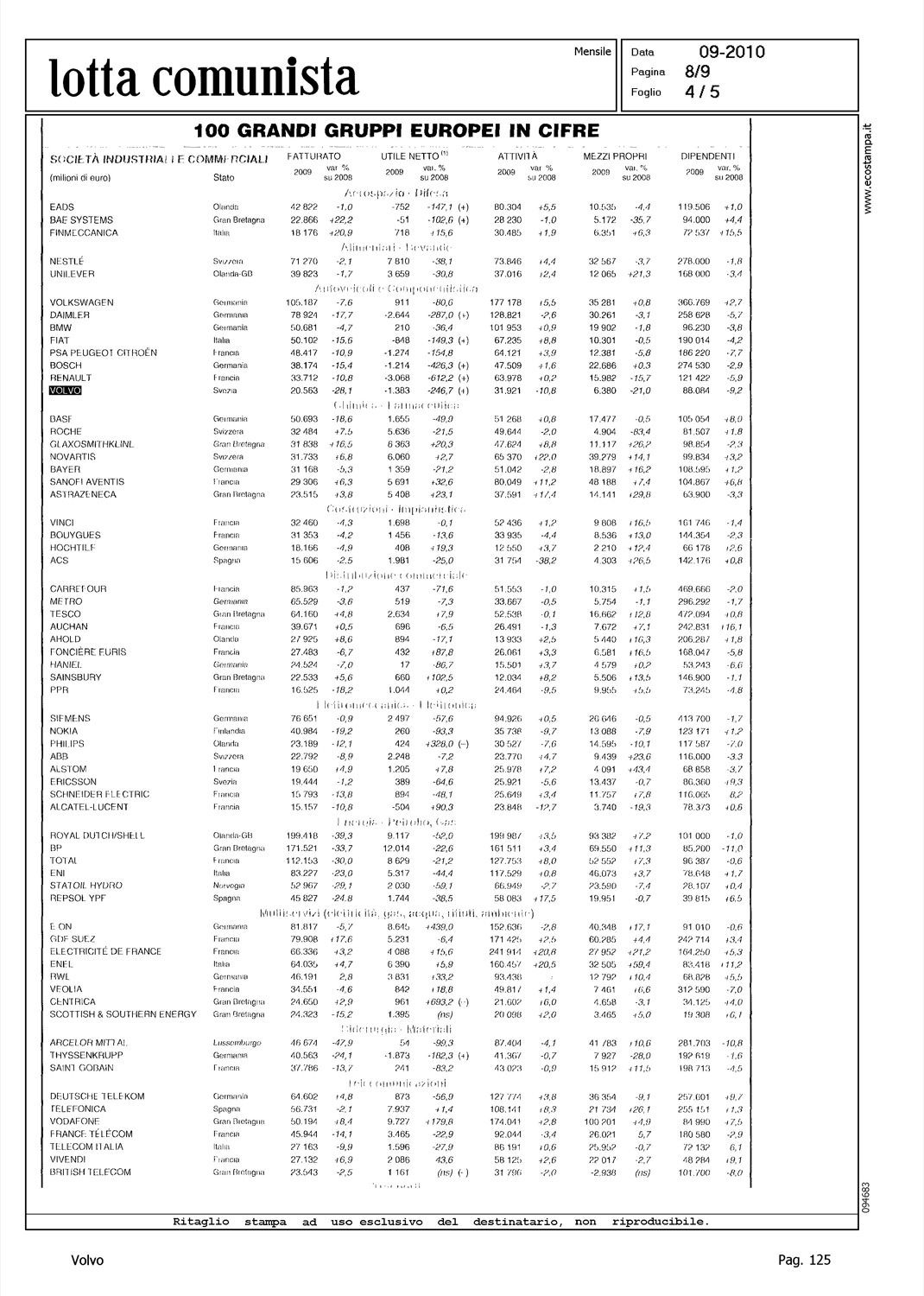 Author: Line: Corporate Model: Corporate Subject: - Title: L'INDUSTRIA EUROPEA SPERA NEL TRAINO TEDESCO PER AGGANCIARE IL CICLO ASIATICOHighlight: TABELLE - GRUPPI INDUSTRIALI EUROPA
