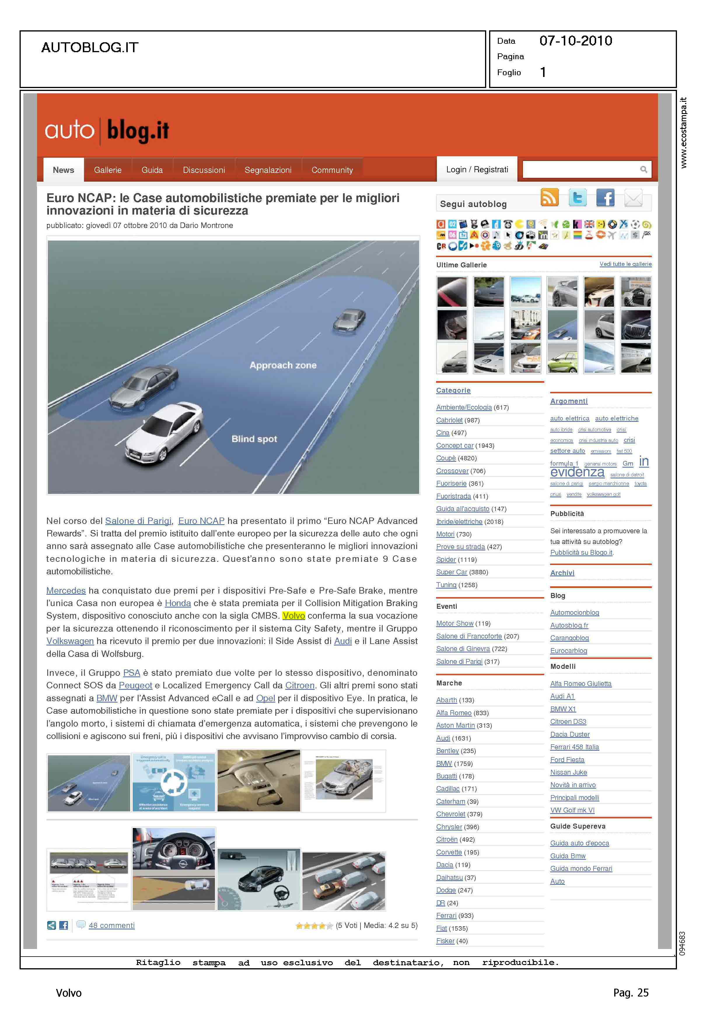 Highlight: SICUREZZA - EURONCAP - VOLVO CITY SAFETY - NUOVI CRITERI VALUTAZIONE SICUREZZA - RICONOSCIMENTO EURONCAP PER LE CASE - POSIZIONE VOLVO PER CITY SAFETY