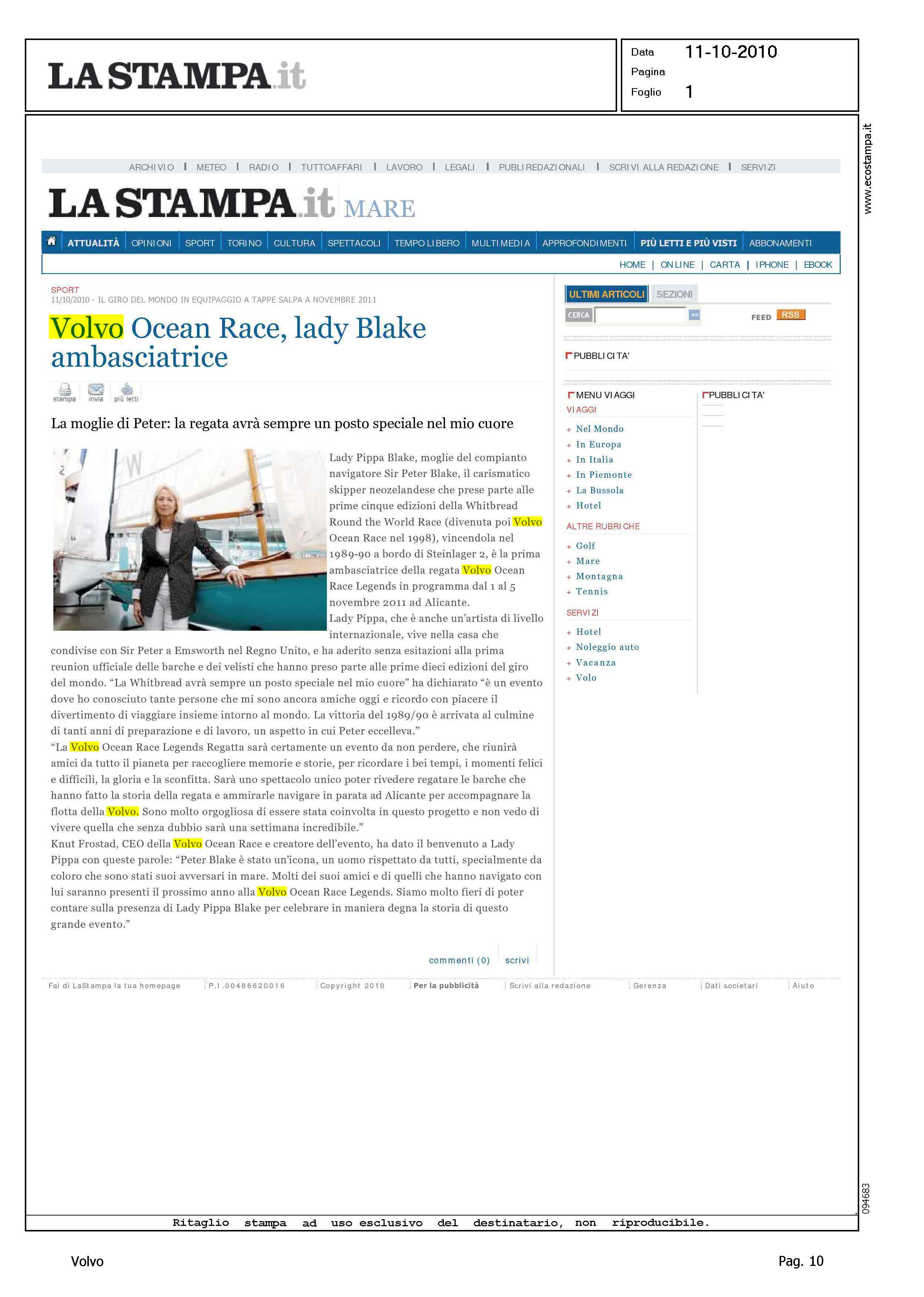 Author: Line: Corporate Model: Corporate Subject: Volvo Ocean Race Title: VOLVO OCEAN RACE, LADY BLAKE AMBASCIATRICEHighlight: VOLVO OCEAN RACE 2011-12 - LADY BLAKE - LEGEND REGATTA