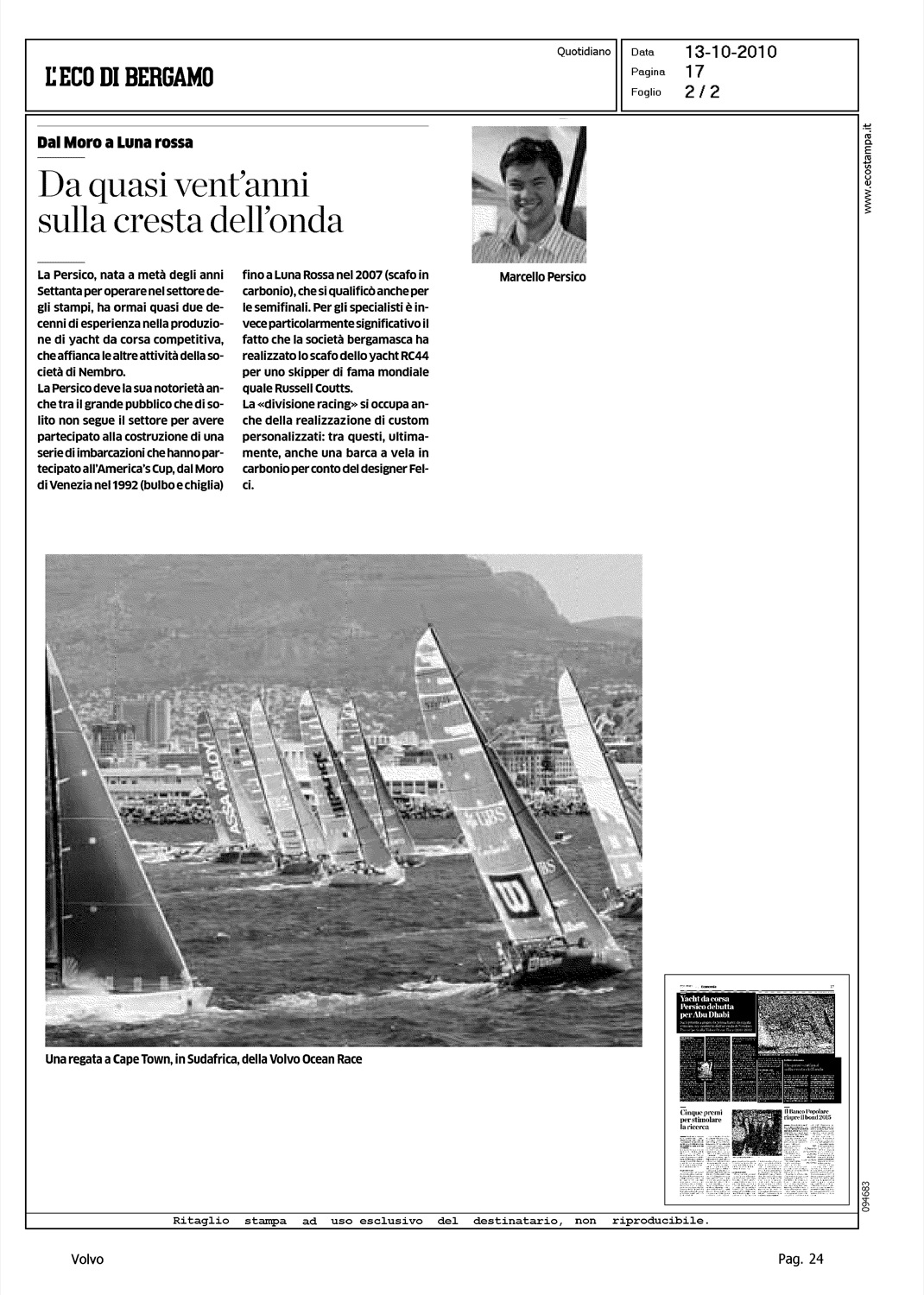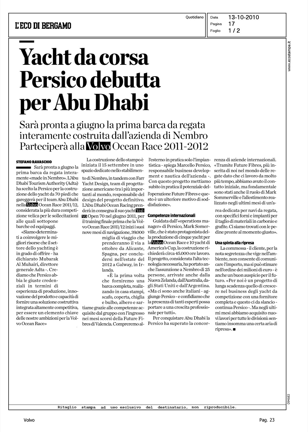 Author: RAVASCHIO, STEFANOLine: Corporate Model: Corporate Subject: Volvo Ocean Race Title: YACHT DA CORSA - PERSICO DEBUTTA PER ABU DHABIHighlight: VOLVO OCEAN RACE - ABU DHABI - PERSICO
