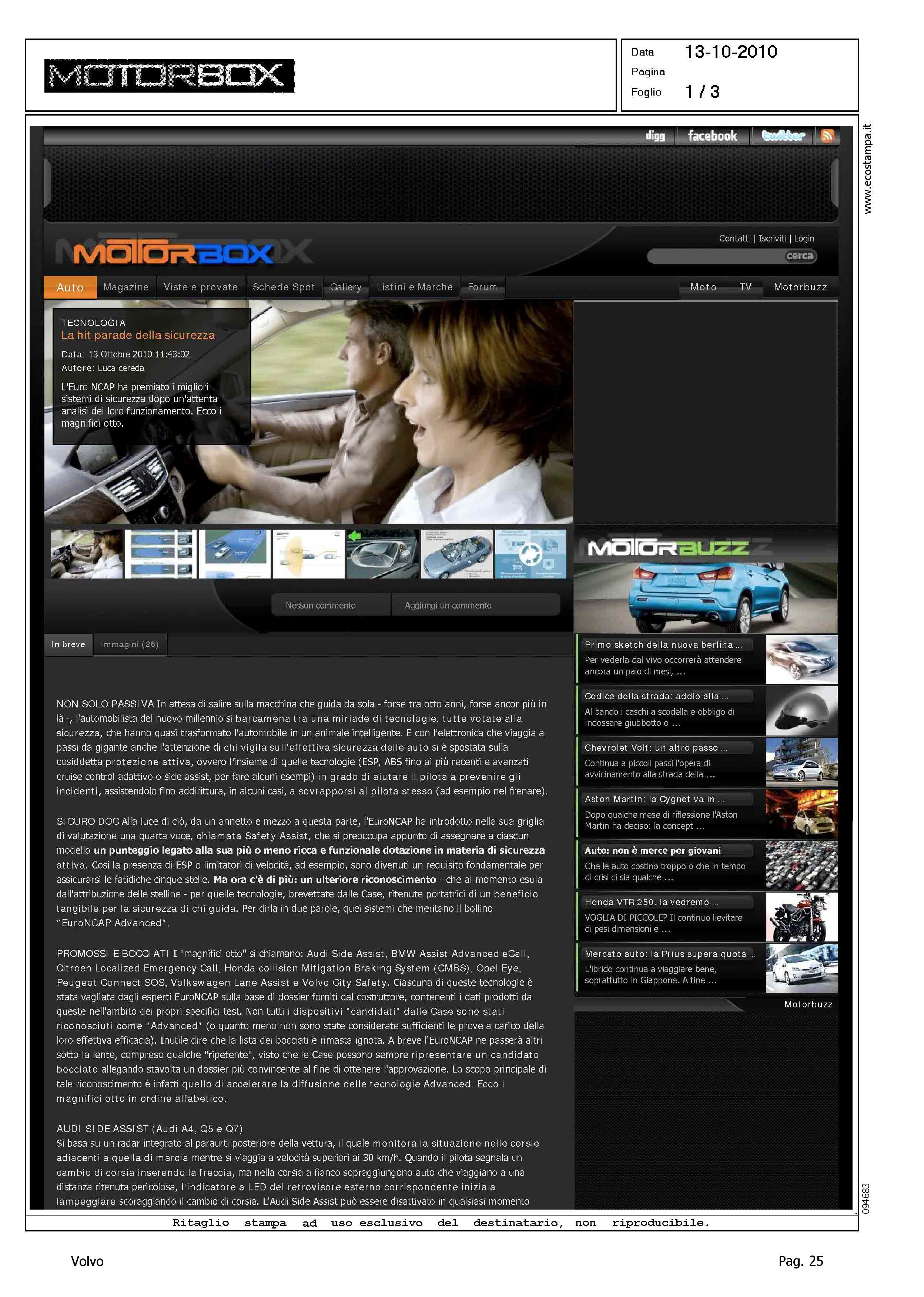 Highlight: SICUREZZA - EURONCAP - VOLVO CITY SAFETY - NUOVI CRITERI VALUTAZIONE SICUREZZA - RICONOSCIMENTO EURONCAP PER LE CASE - POSIZIONE VOLVO PER CITY SAFETY