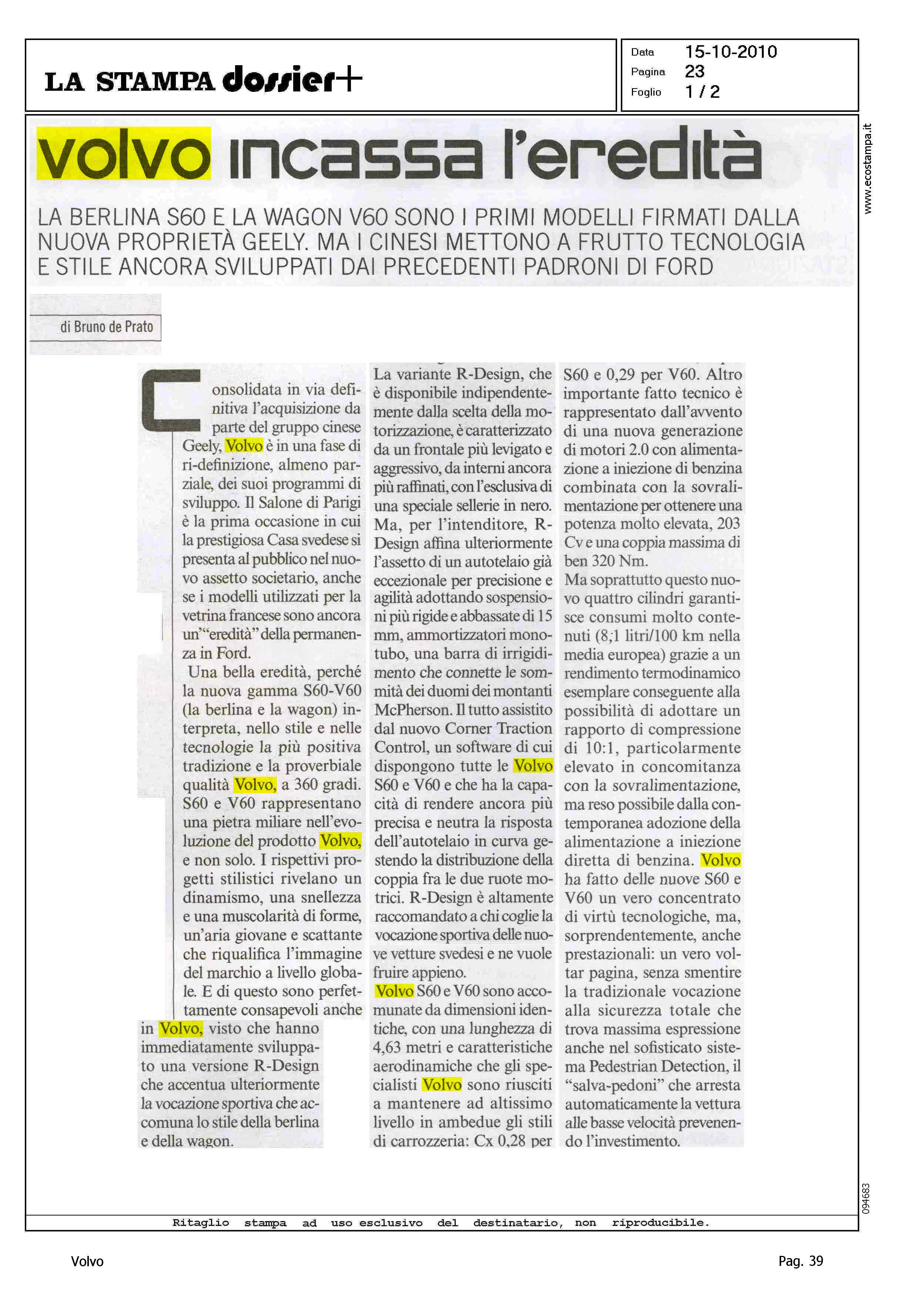 Title: VOLVO INCASSA L'EREDITA'