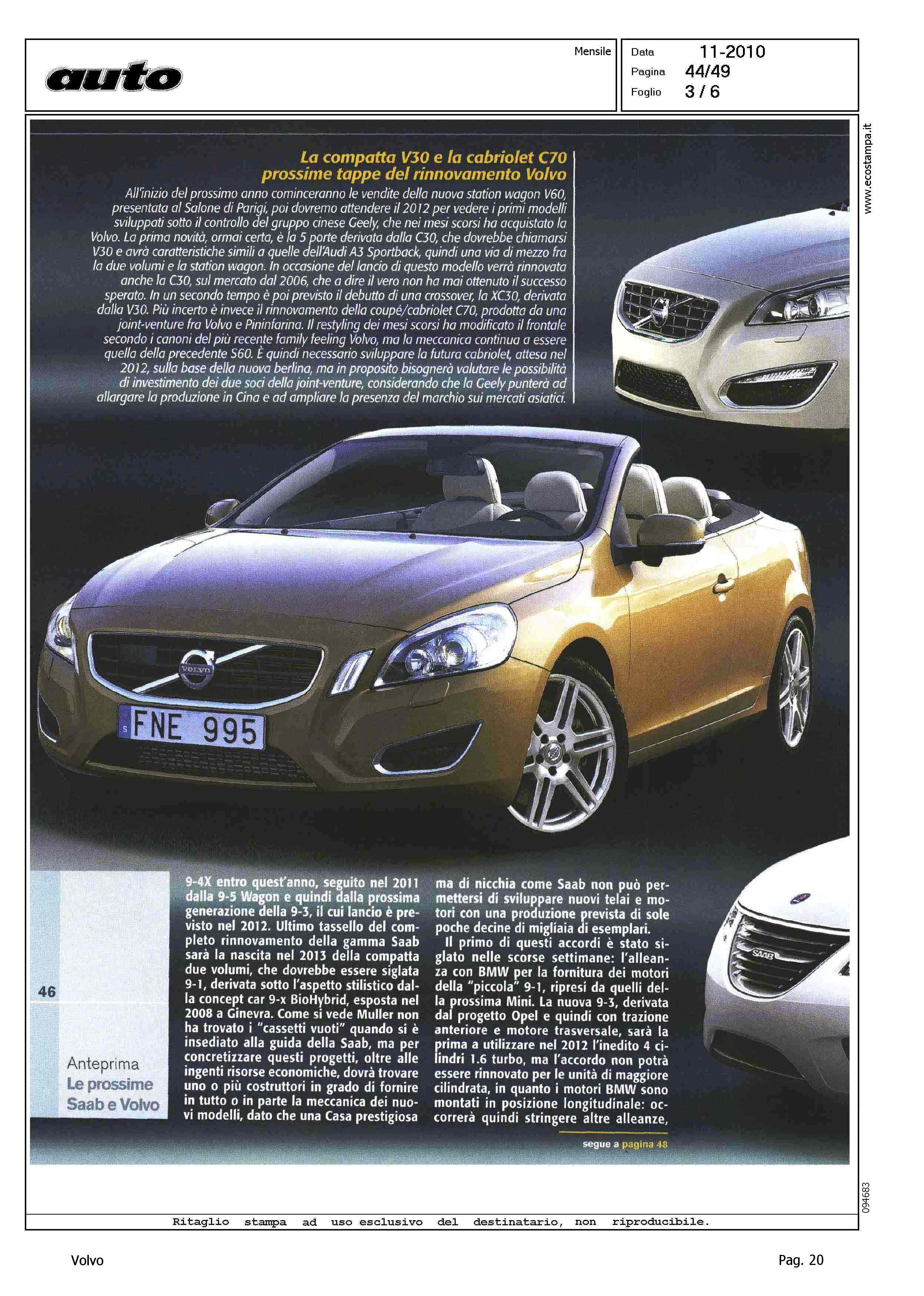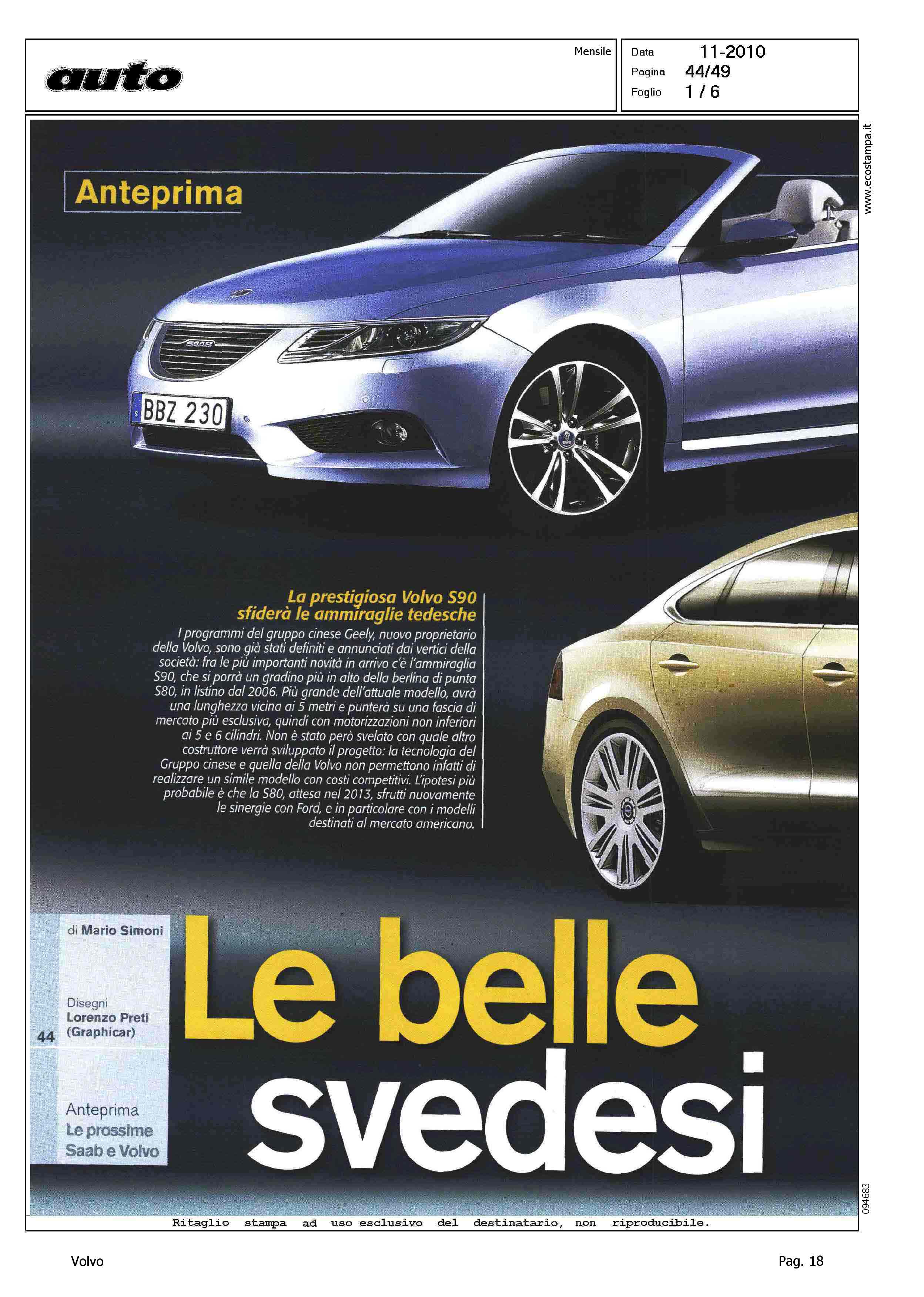 Author: PRETI, LORENZO (Graphicar)Line: Corporate Model: Corporate Subject: - Title: LE BELLE SVEDESIHighlight: (USCITA NOVEMBRE) - DESIGN - ANTICIPAZIONI - VOLVO S90 - VOLVO V30 - VOLVO C70