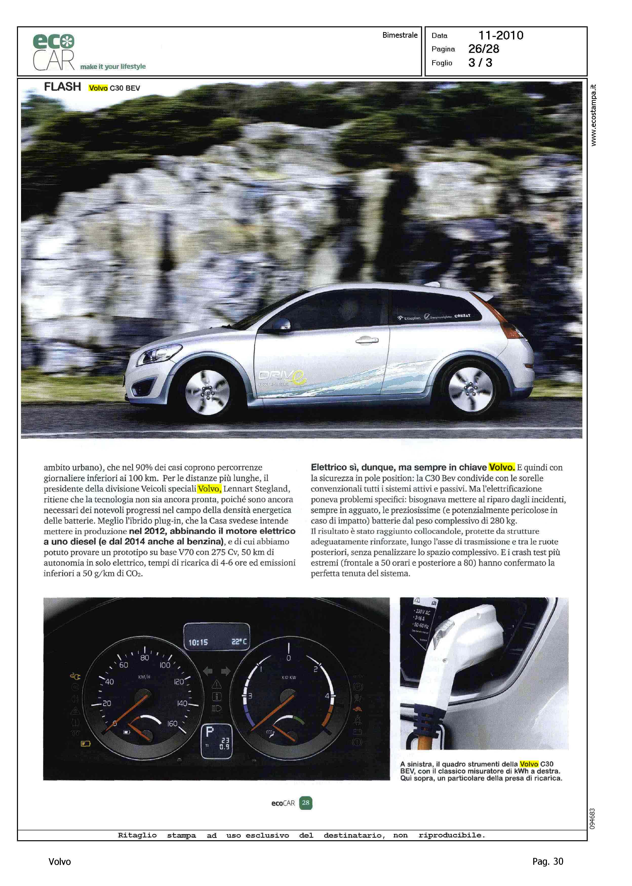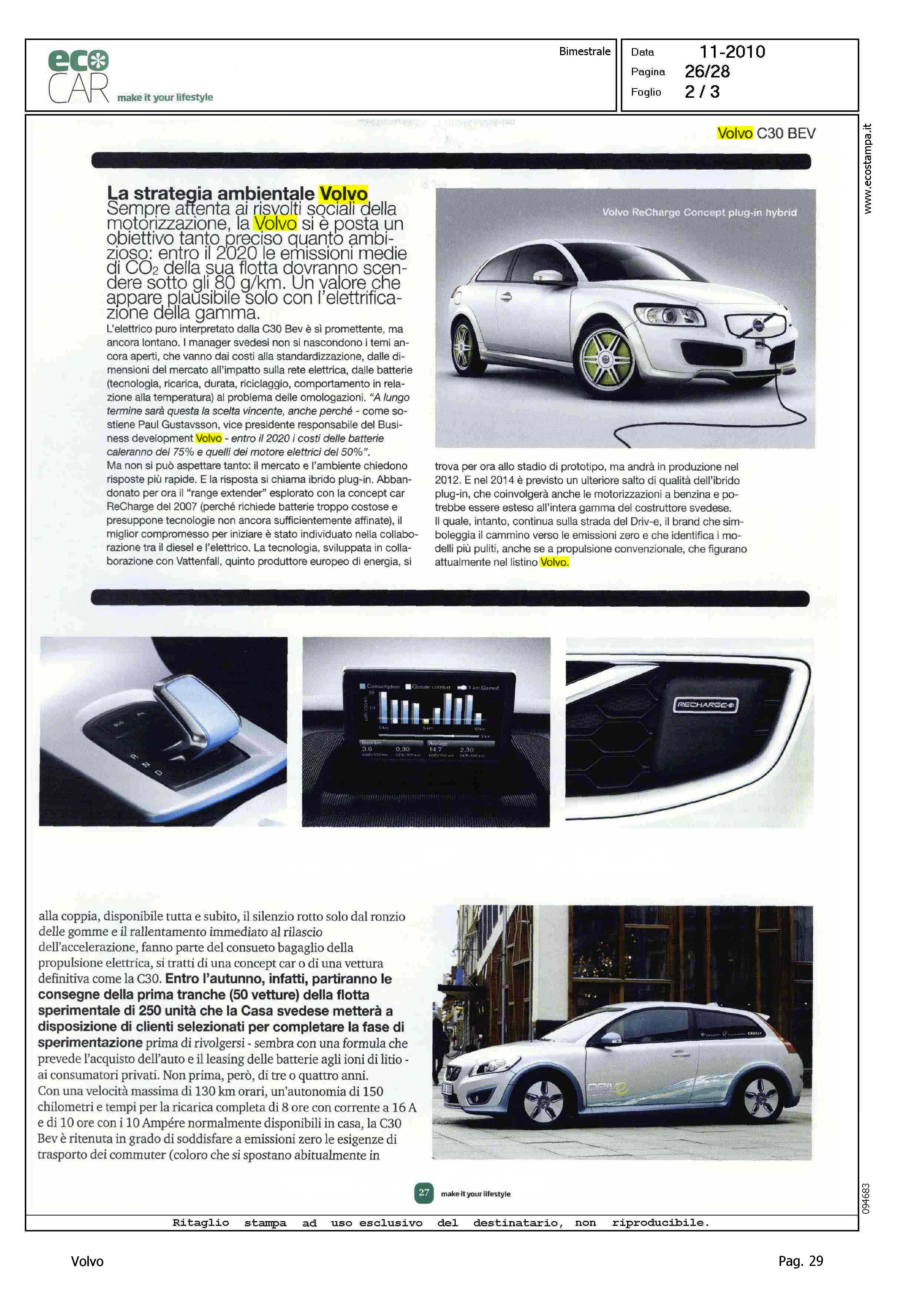 Highlight: (USCITA NOVEMBRE) - PROFILO PRODOTTO - ABITACOLO - CAMBIO - PRESTAZIONI - DINAMICA DI MARCIA - FLOTTA TEST - AUTONOMIA - TEMPO DI RICARICA - STEGLAND SU C30 BEV - IBRIDO PLUG-IN -VOLVO V70 - POTENZA - AUTONOMIA - TEMPO DI RICARICA - EMISSIONI - (BOX) - POLITICA AMBIENTALE VOLVO
