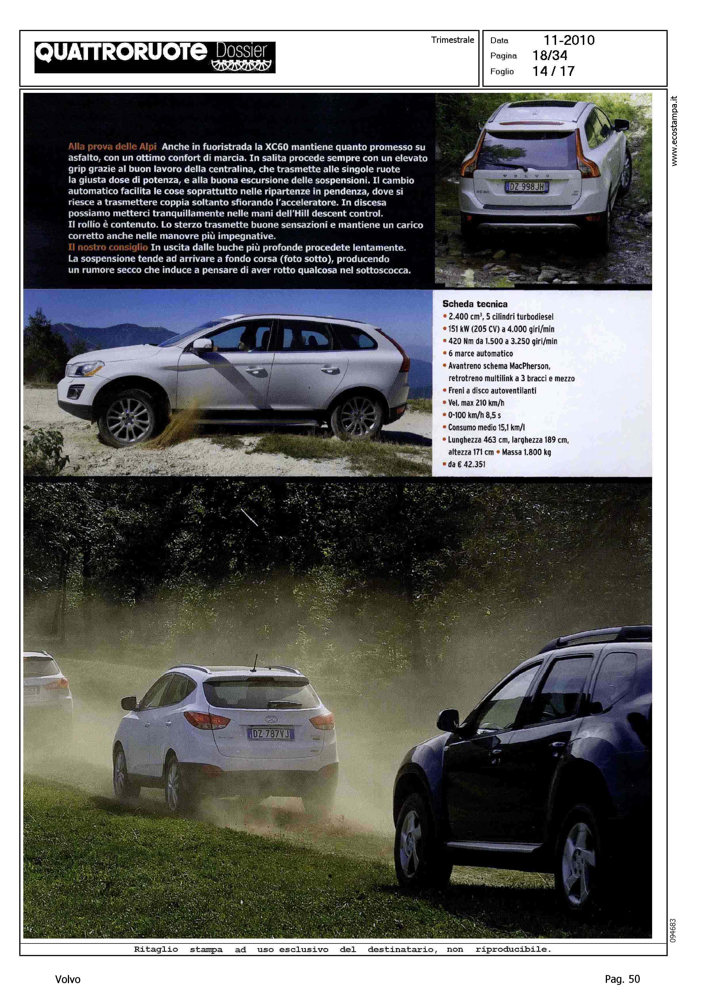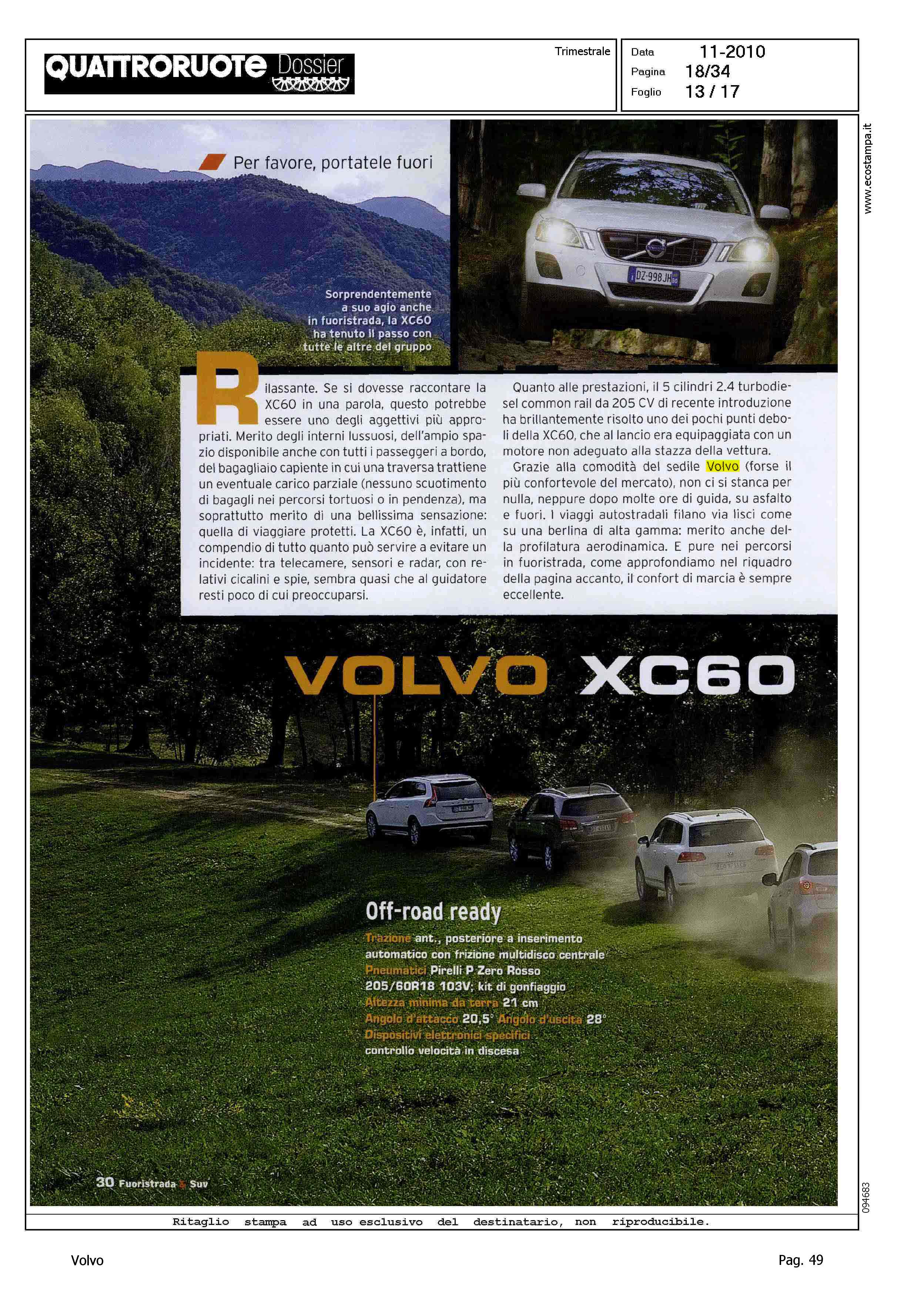 Author: PISCINI, MANUELALine: XC60 Model: - Subject: - Title: PER FAVORE PORTATELE FUORIHighlight: (DOSSIER, USCITA NOVEMBRE) - ABITACOLO - INTERNI - CONFORT - SICUREZZA - MOTORE - D5 205CV - POSIZIONE DI GUIDA - SCHEDA TECNICA
