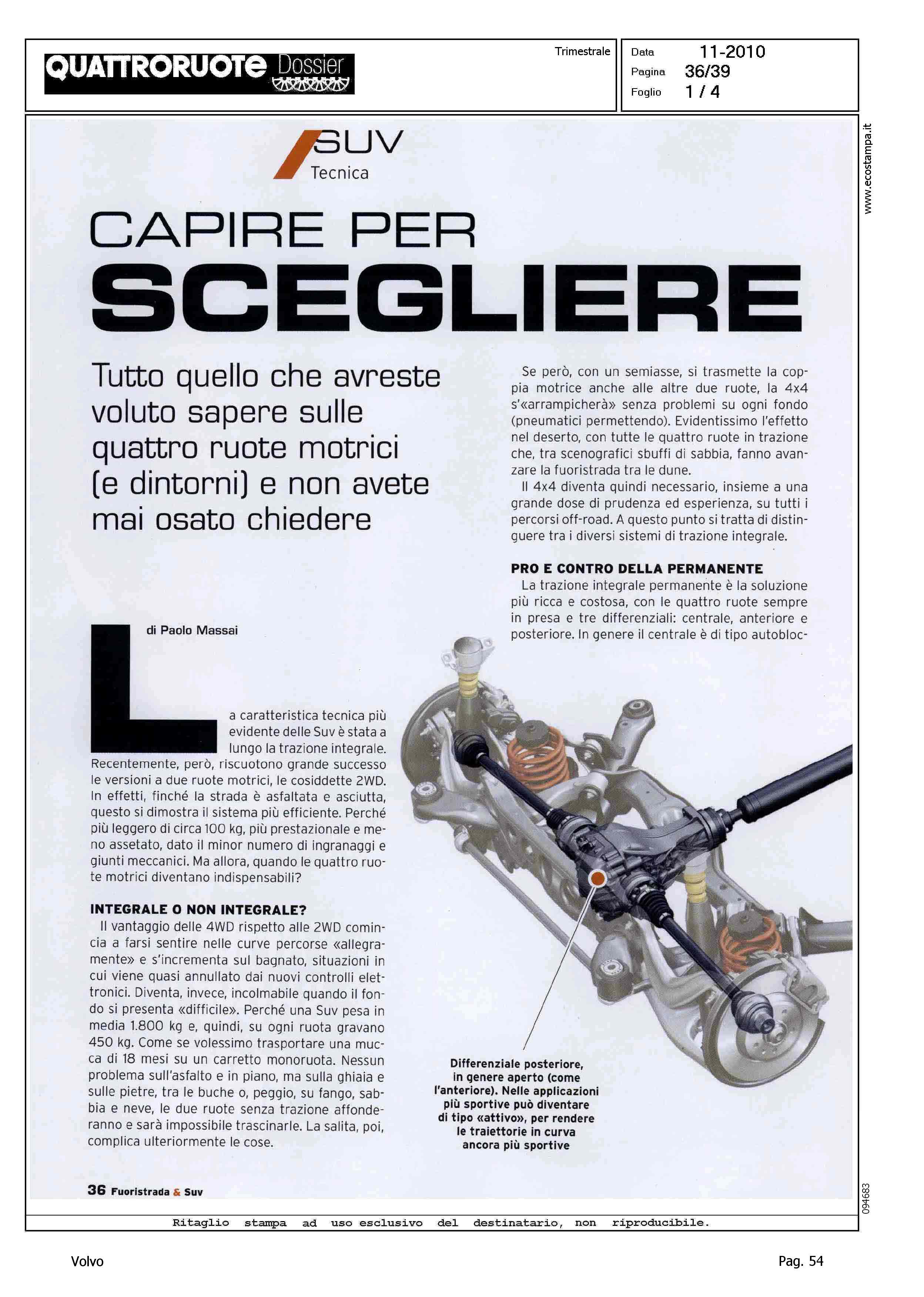Author: MASSAI, PAOLOLine: Corporate Model: Corporate Subject: - Title: CAPIRE PER SCEGLIEREHighlight: (DOSSIER, USCITA NOVEMBRE) - TECNICA - TRAZIONE INTEGRALE - DISPOSITIVI CONTROLLO DINAMICA DI MARCIA