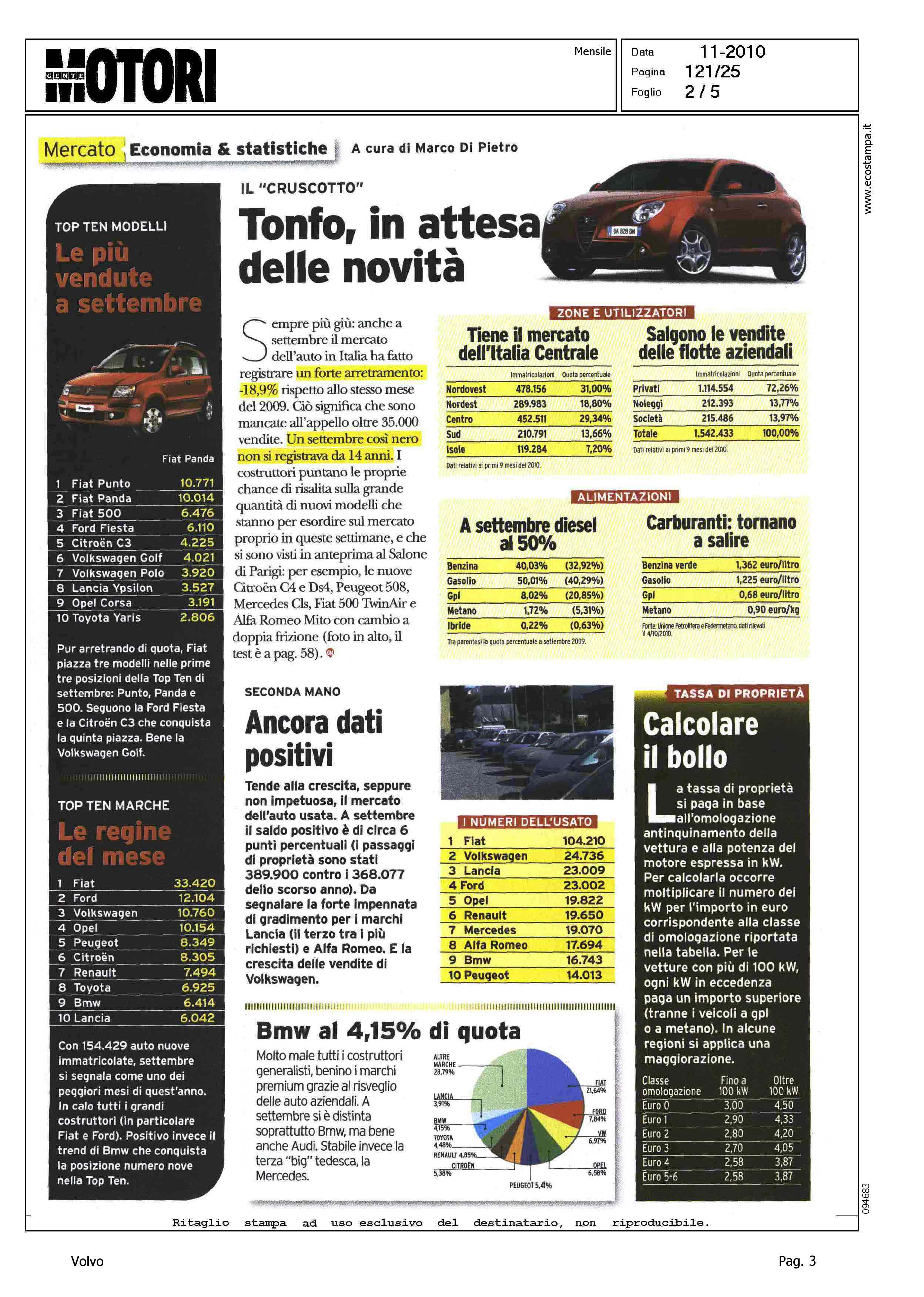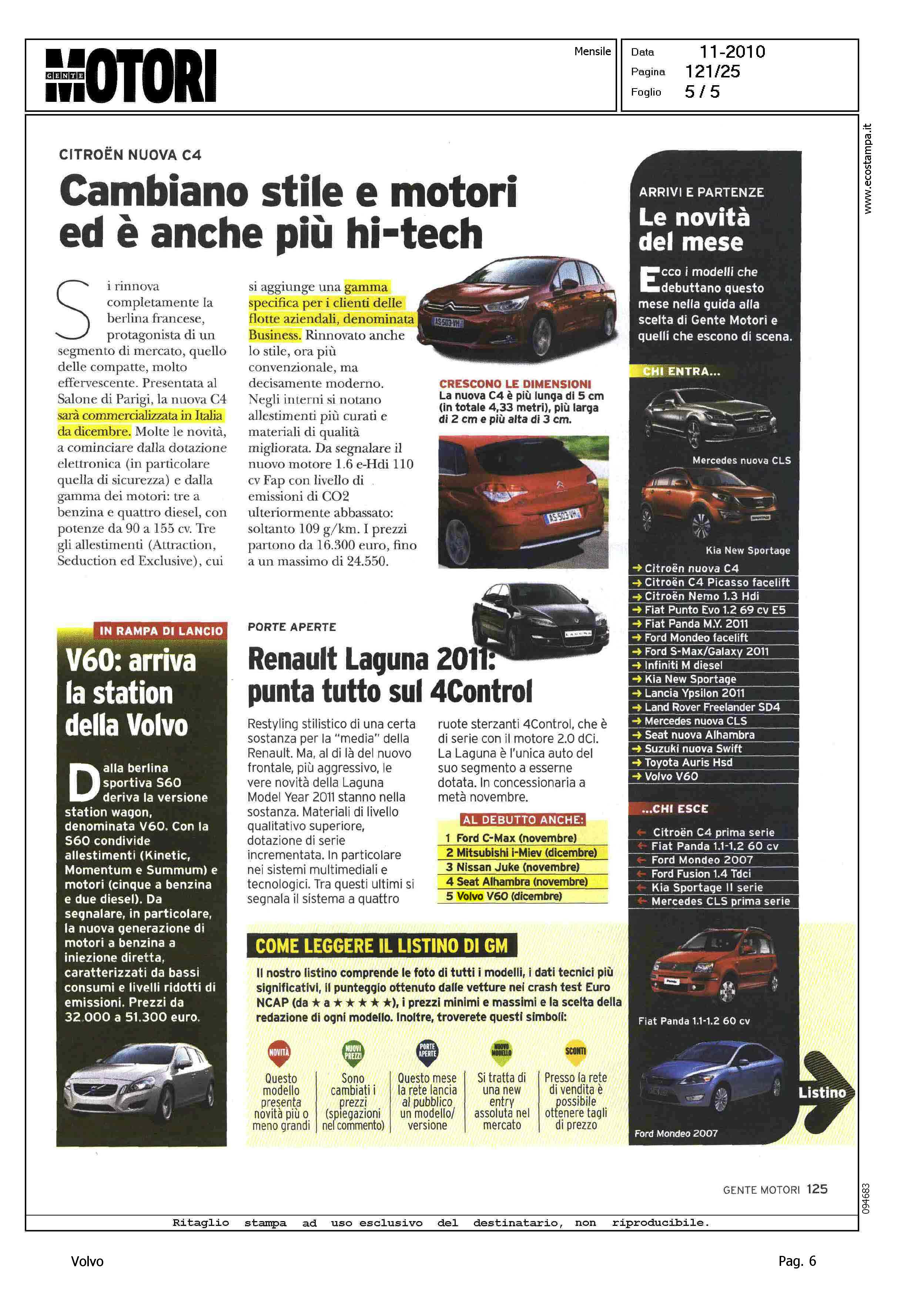 Highlight: (USCITA NOVEMBRE) - MERCATO ITALIA - TABELLE - POSIZIONE VOLVO - COMMERCIALIZZAZIONE V60