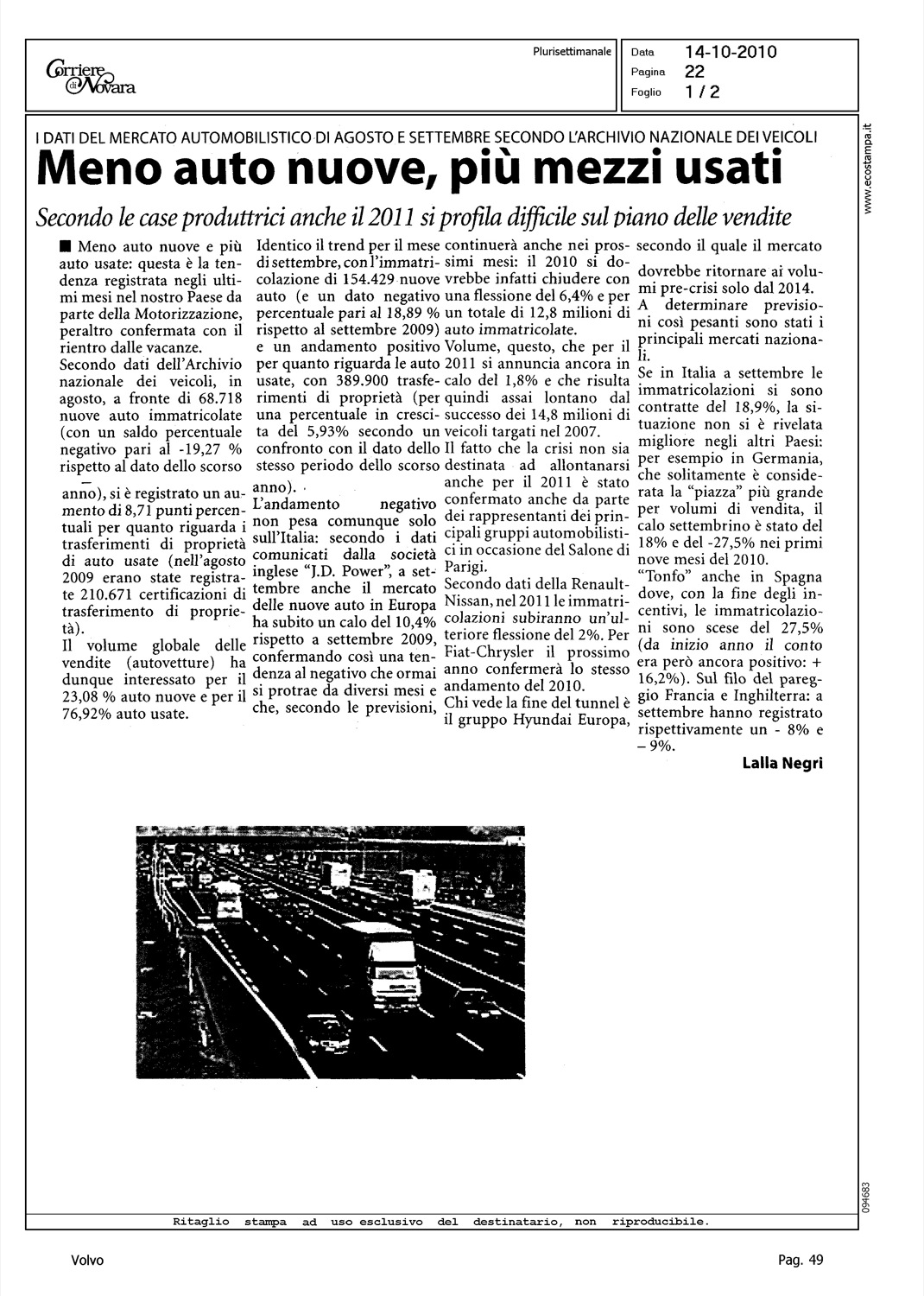 Author: NEGRI, LALLALine: Corporate Model: Corporate Subject: - Title: MENO AUTO NUOVE, PIU' MEZZI USATIHighlight: MERCATO ITALIA - TABELLE - POSIZIONE VOLVO