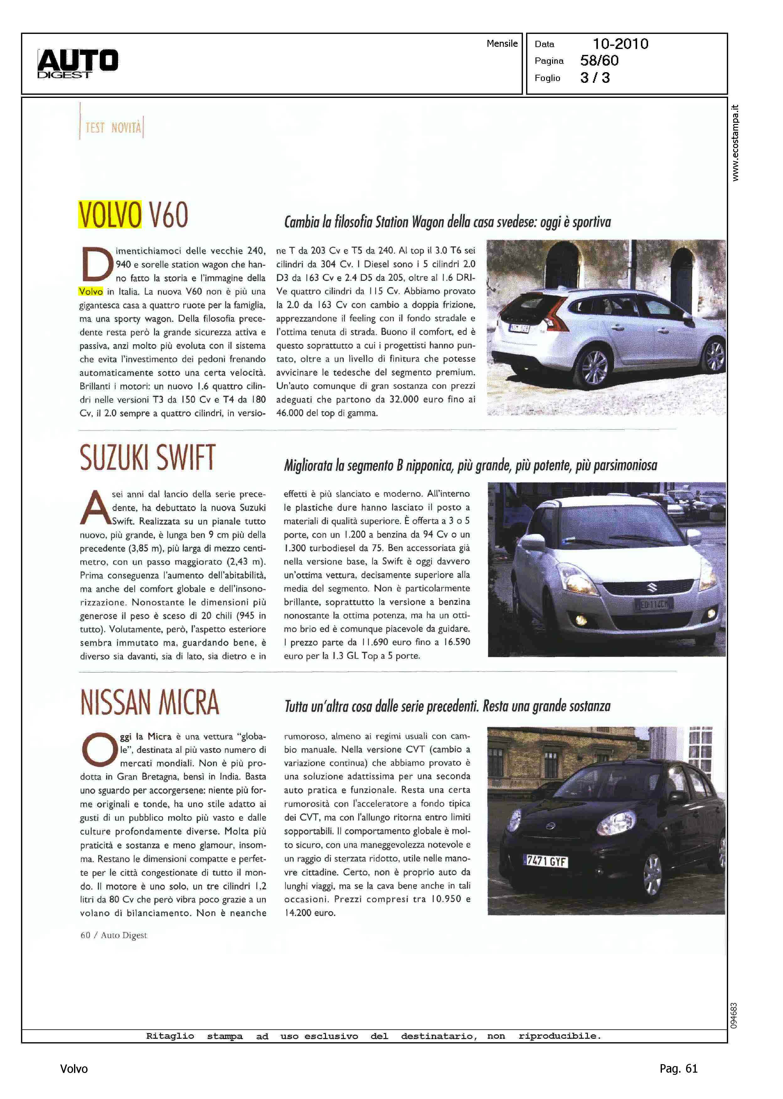 Title: ABBIAMO PROVATO ANCHE... VOLVO V60 - CAMBIA LA FILOSOFIA STATION WAGON DELLA CASA SVEDESE: OGGI E' SPORTIVA