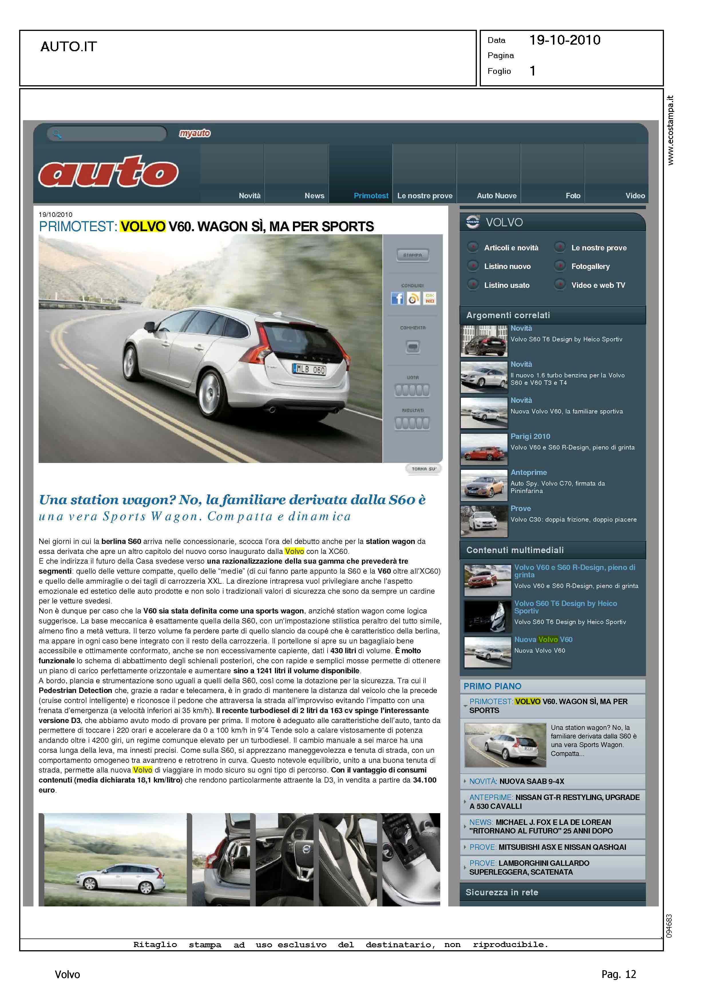 Title: UNA STATION WAGON? NO, LA FAMILIARE DERIVATA DALLA S60 E' UNA VERA WAGON. COMPATTA E DINAMICA