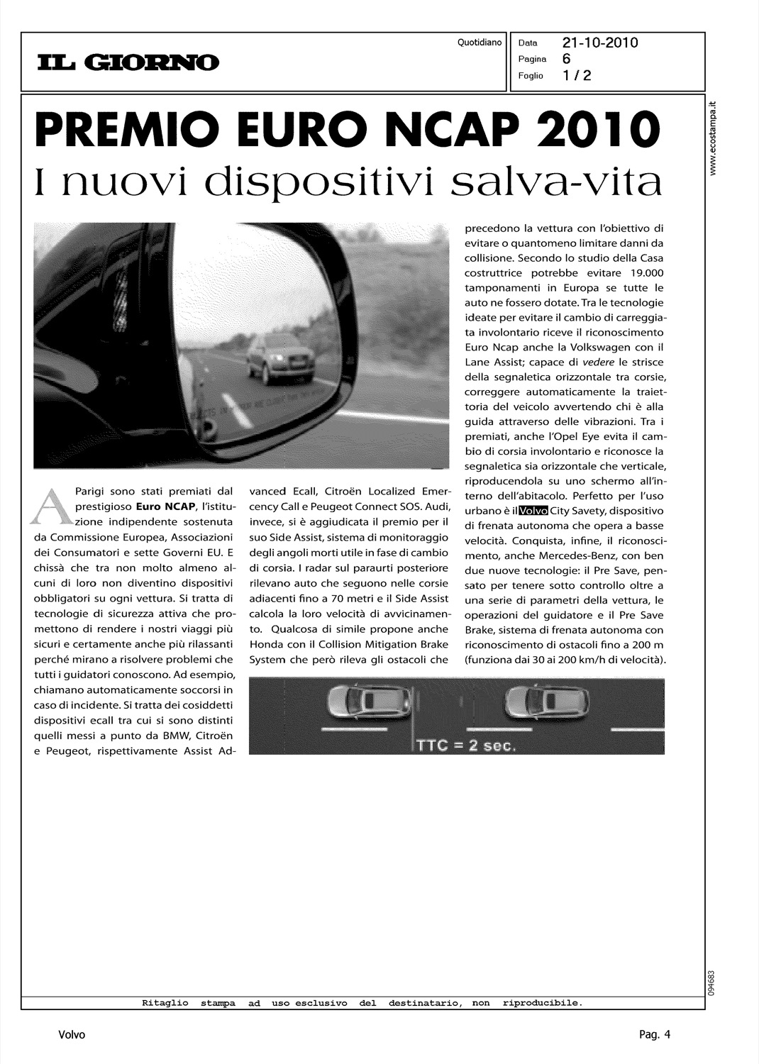 Highlight: SICUREZZA - EURONCAP - VOLVO CITY SAFETY - NUOVI CRITERI VALUTAZIONE SICUREZZA - RICONOSCIMENTO EURONCAP PER LE CASE - POSIZIONE VOLVO PER CITY SAFETY