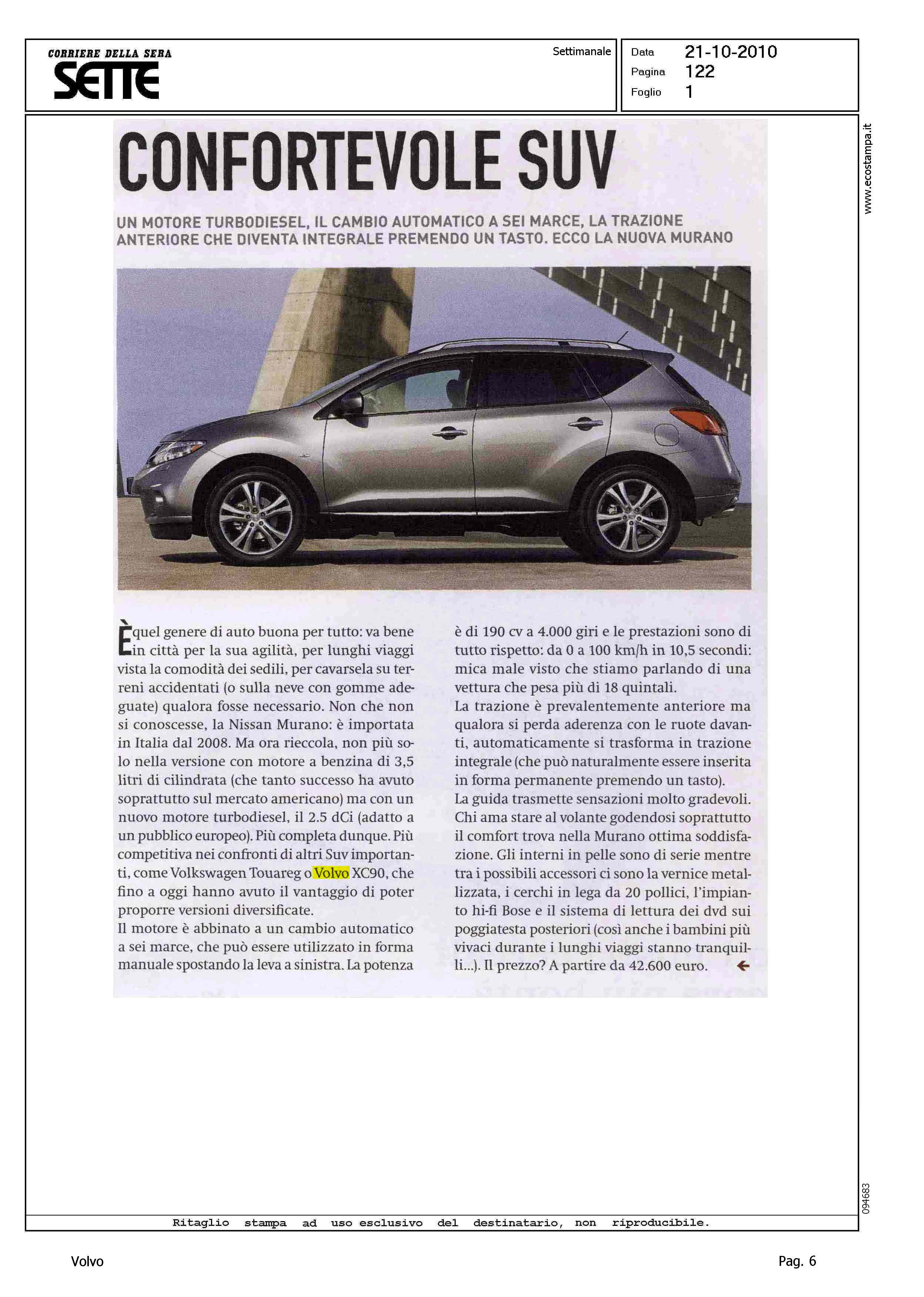 Author: Line: Corporate Model: Volvo XC90 Subject: - Title: CONFORTEVOLE SUVHighlight: ALTERNATIVA D'ACQUISTO - VOLVO XC90 - NISSAN MURANO