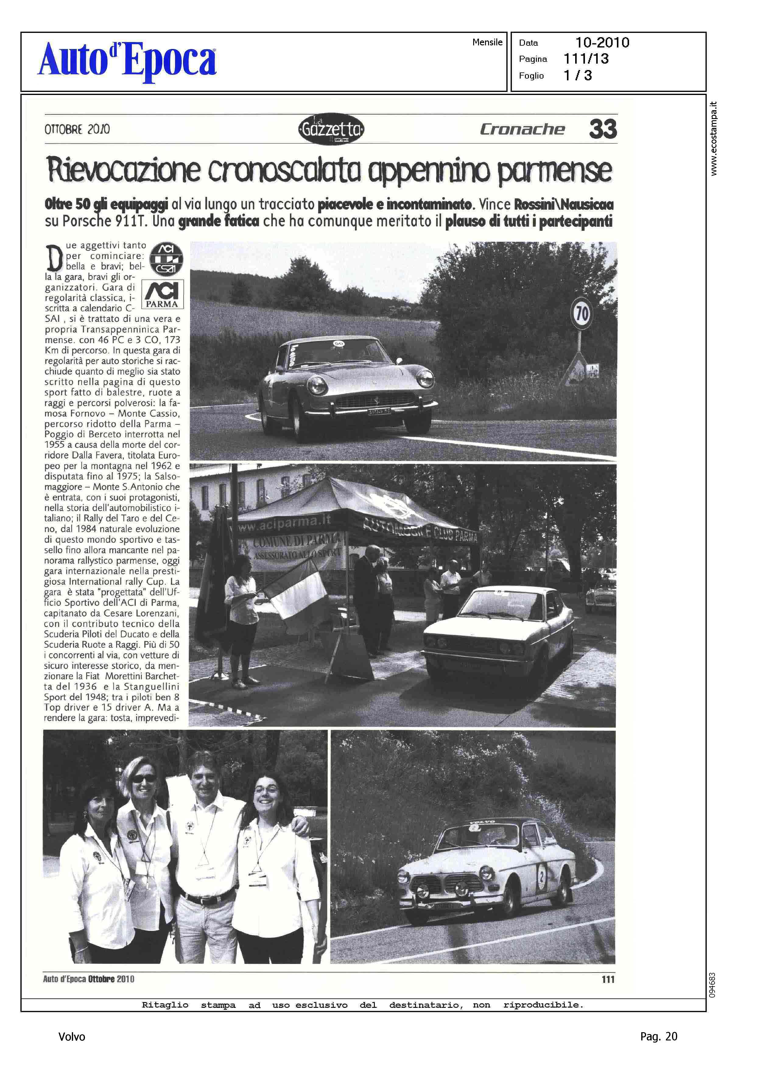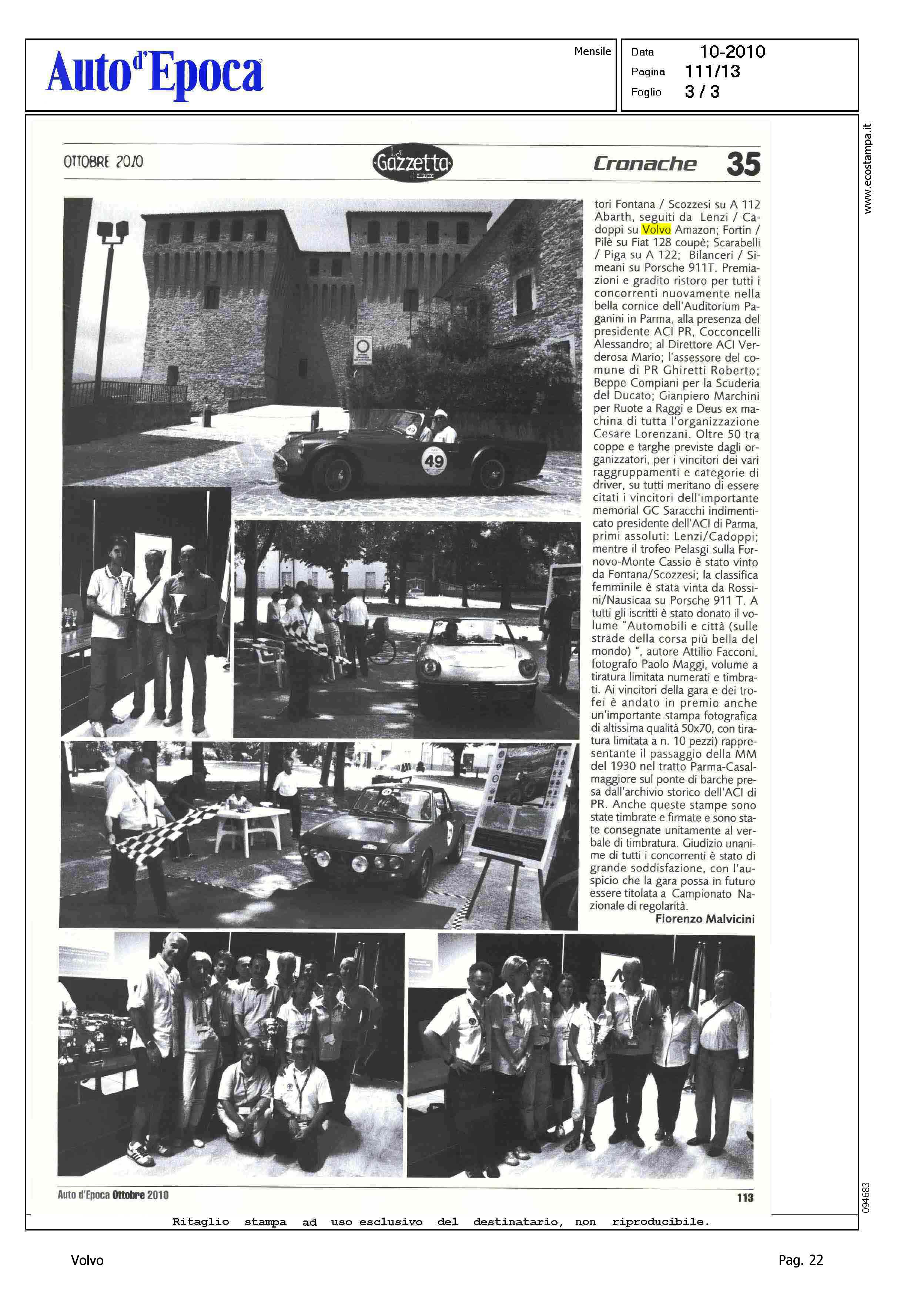 Author: MALVICINI, FIORENZOLine: Corporate Model: Corporate Subject: - Title: RIEVOCAZIONE CRONOSCALATA APPENNINO PARMENSEHighlight: CRONACHE - CRONOSCALATA APPENNINO PARMENSE - VOLVO AMAZON LENZI/CADOPPI