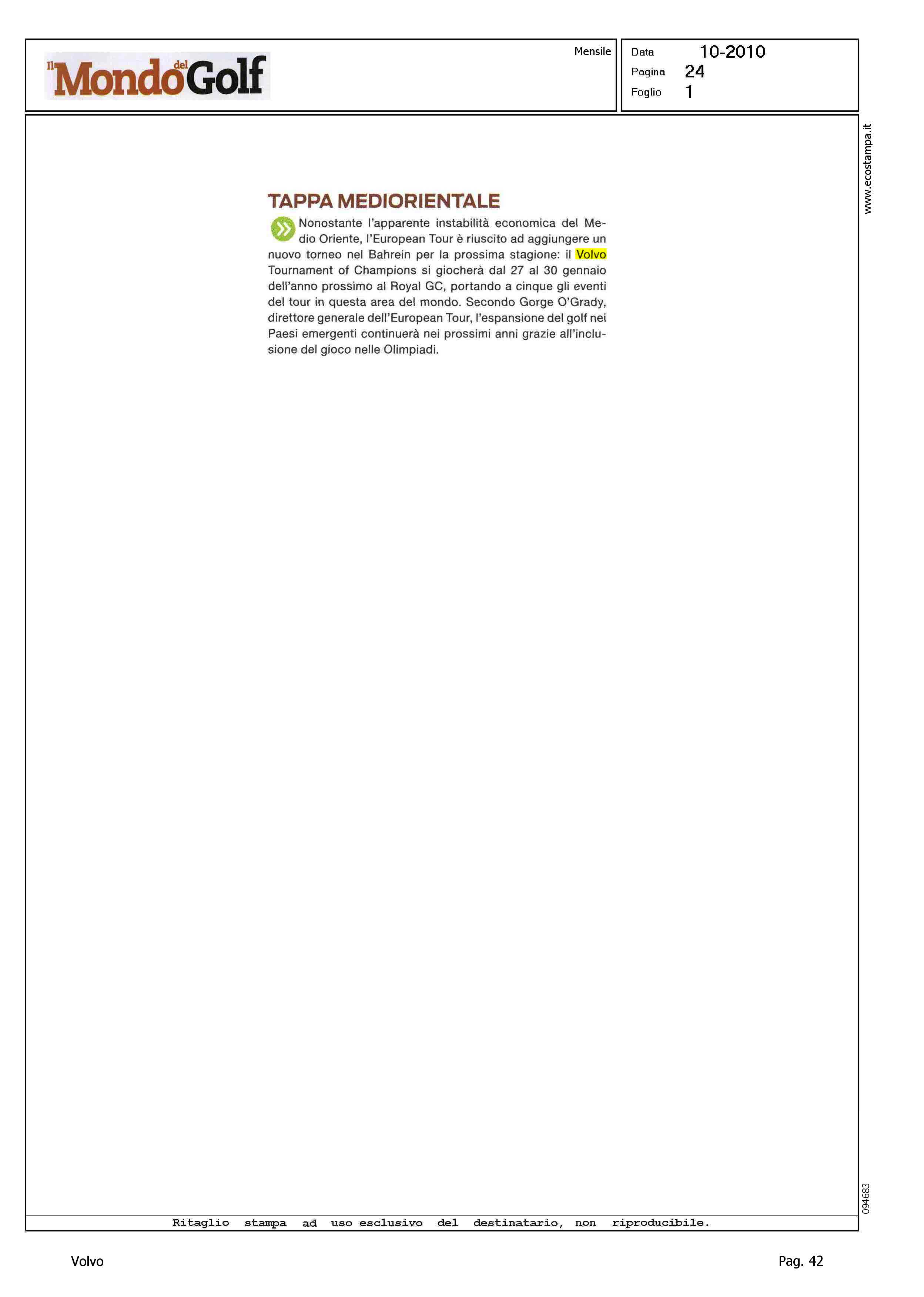 Author: Line: Corporate Model: Corporate Subject: Volvo Master Title: TAPPA MEDIORIENTALEHighlight: VOLVO TOURNAMENT CHAMPIONSHIP - CALENDARIO GENNAIO 2011 - BAHREIN
