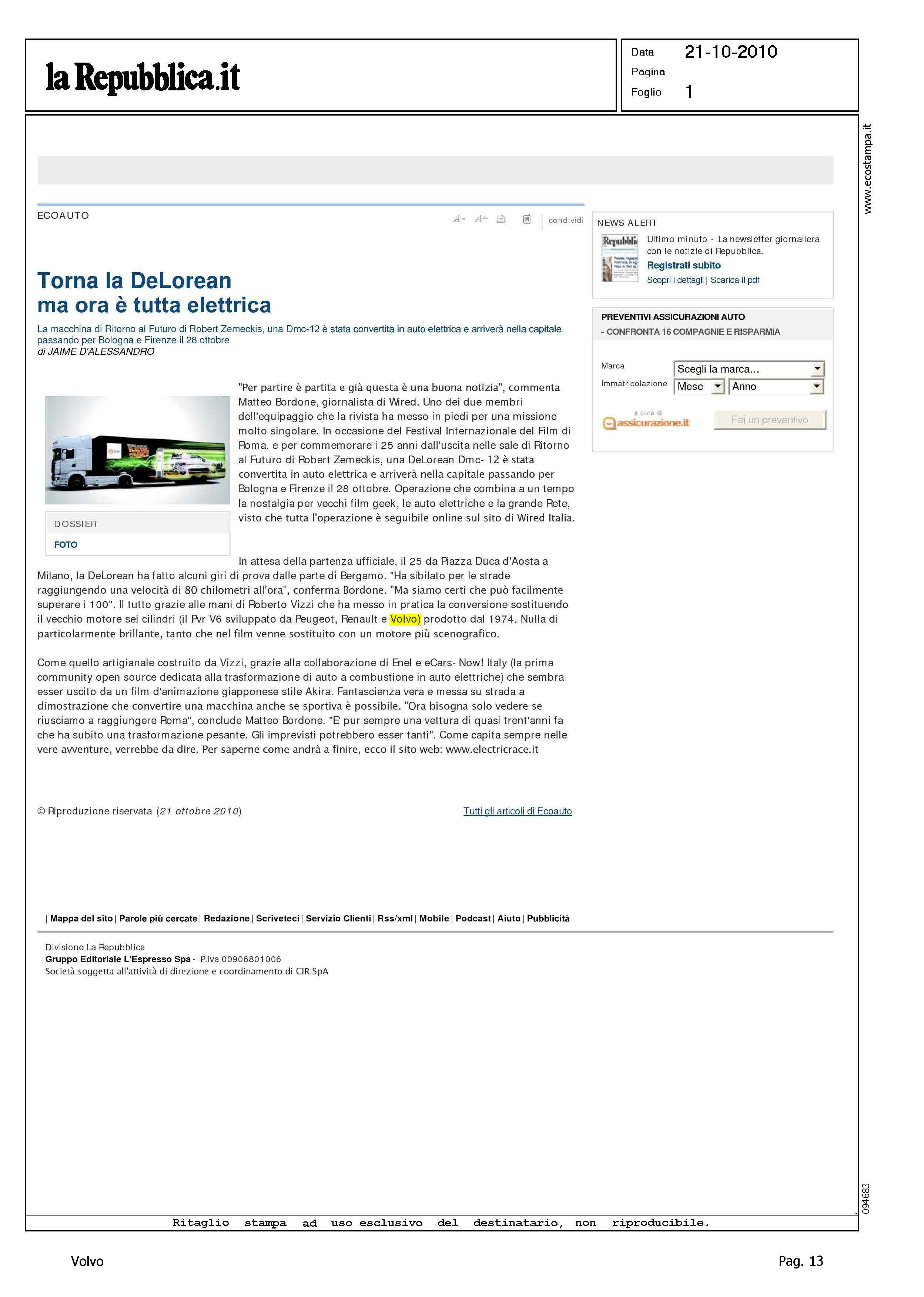 Author: Line: Corporate Model: Corporate Subject: - Title: TORNA LA DELOREAN MA ORA E' TUTTA ELETTRICAHighlight: DELOREAN - MOTORE V6 PVR
