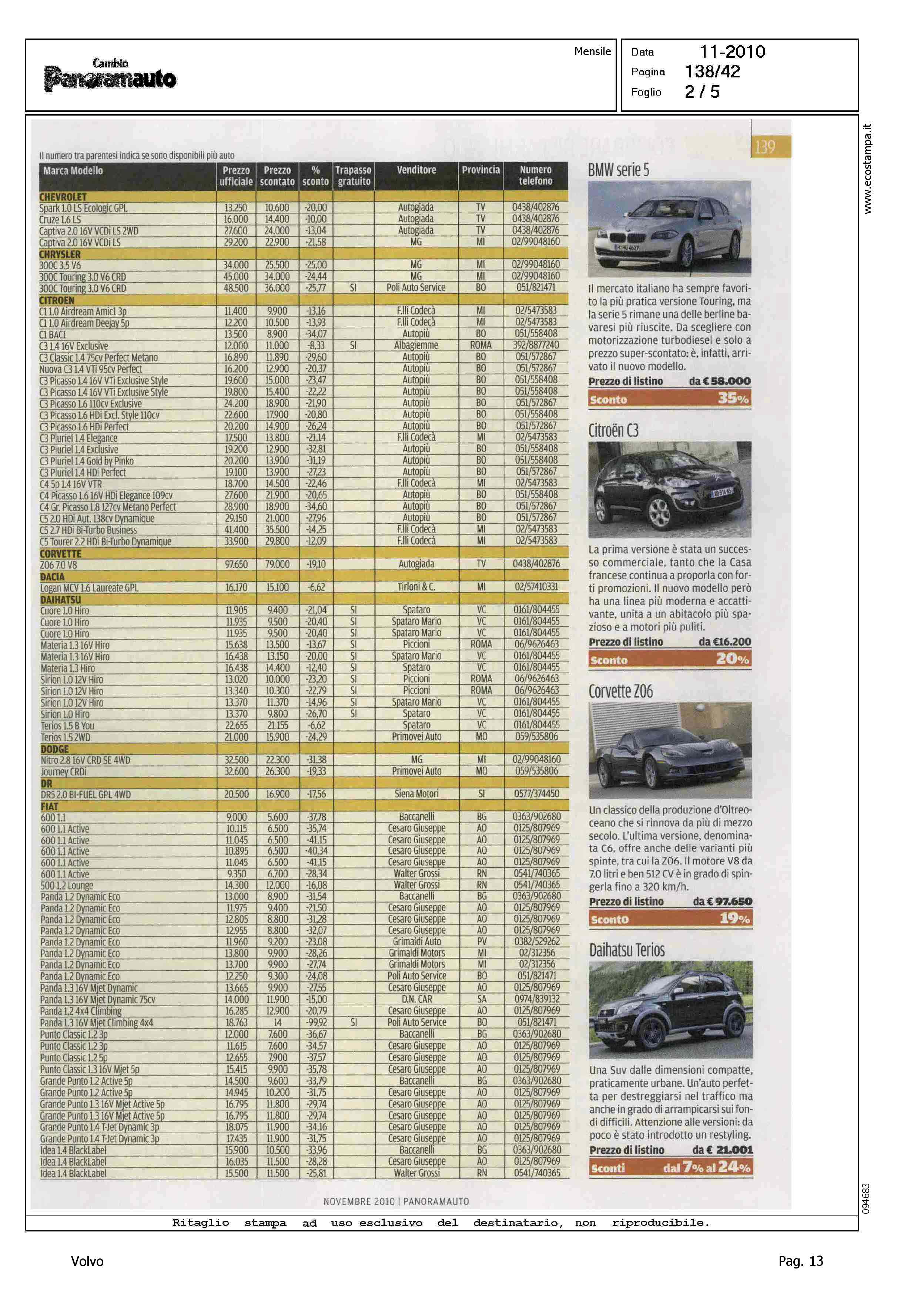 Highlight: (USCITA NOVEMBRE) - MERCATO ITALIA - OCCASIONI - TABELLE - VOLVO C30, VOLVO XC60 - ATTIVITA' DEL CONCESSIONARIO