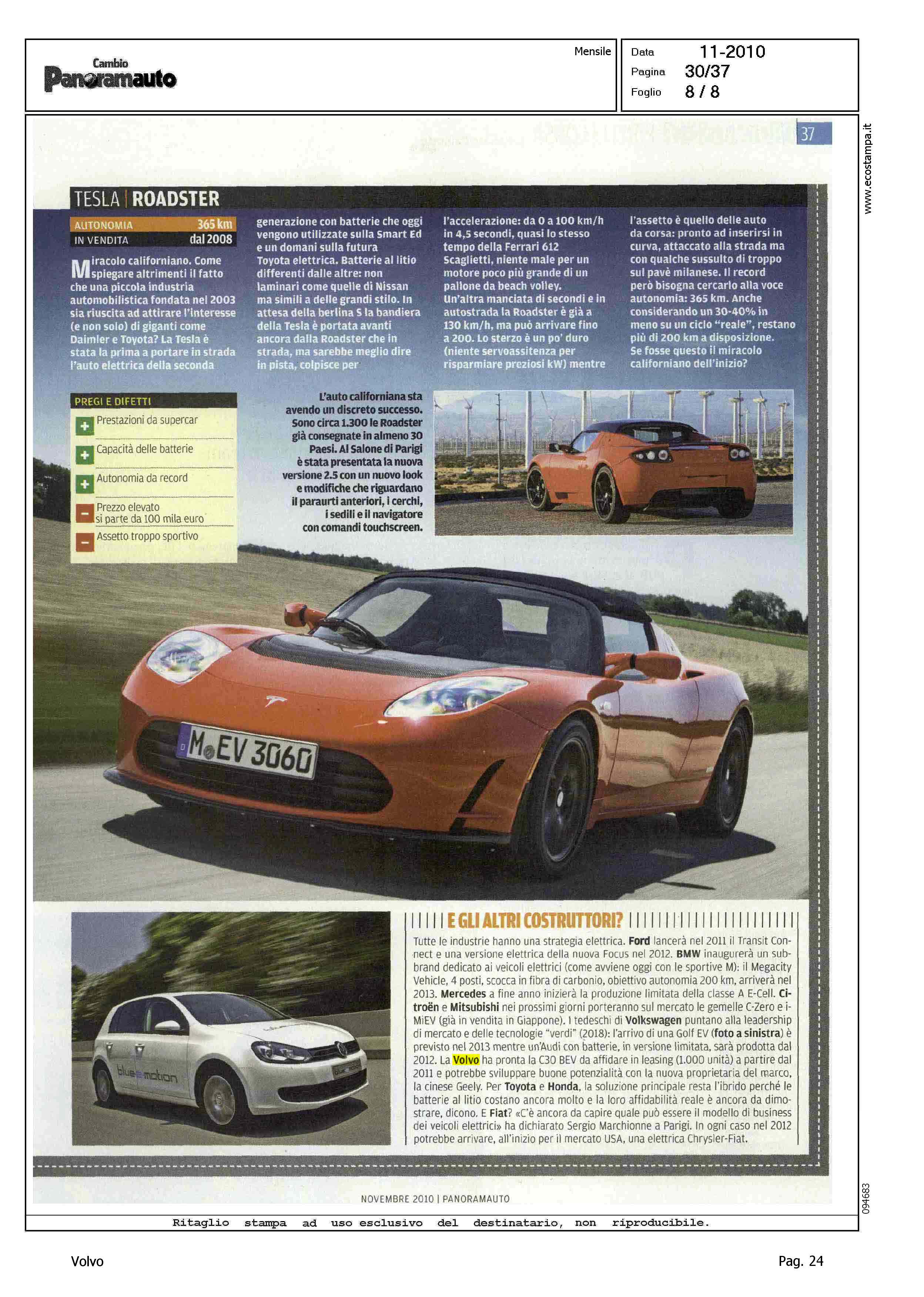 Author: TRICAMO, ALESSANDRO MARCHETTILine: Corporate Model: Volvo C30 Subject: - Title: E GLI ALTRI COSTRUTTORI?Highlight: (USCITA NOVEMBRE) - VOLVO C30 BEV - FASE SPERIMENTALE - GEELY, SVILUPPO PROGETTO