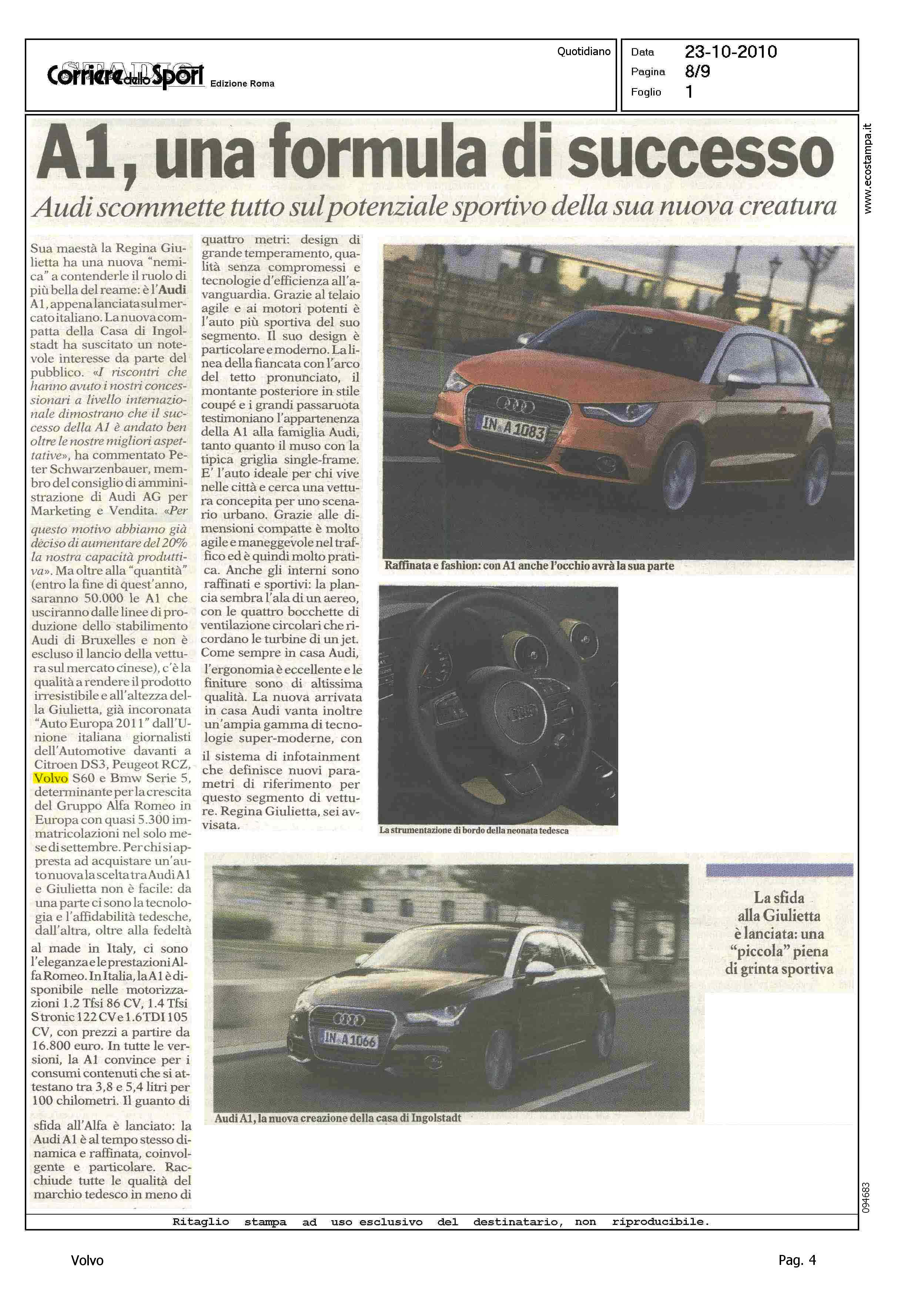 Author: Line: Corporate Model: Corporate Subject: - Title: A1, FORMULA DI SUCCESSOHighlight: (EDIZIONE ROMA) - UIGA - AUTO EUROPA 2011 - VOLVO S60 - POSIZIONE VOLVO, 4°