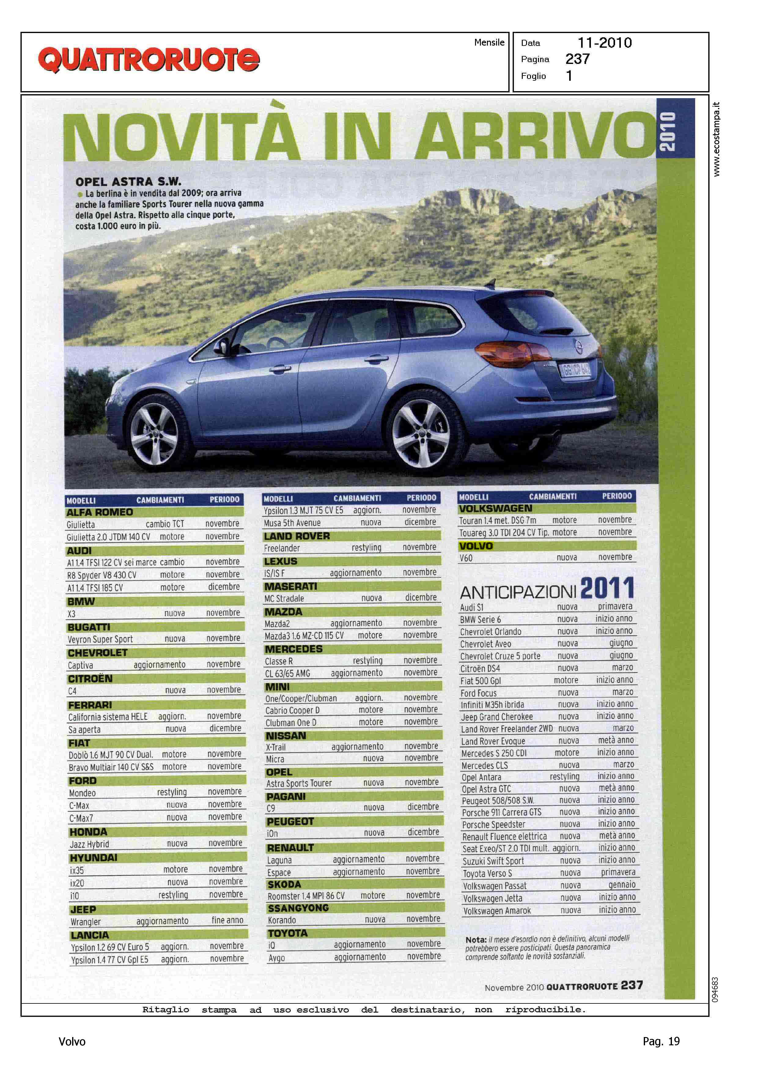 Author: Line: Corporate Model: Corporate Subject: - Title: NOVITA' IN ARRIVOHighlight: (USCITA NOVEMBRE) - TABELLA NOVITA' MERCATO ITALIA - VOLVO V60
