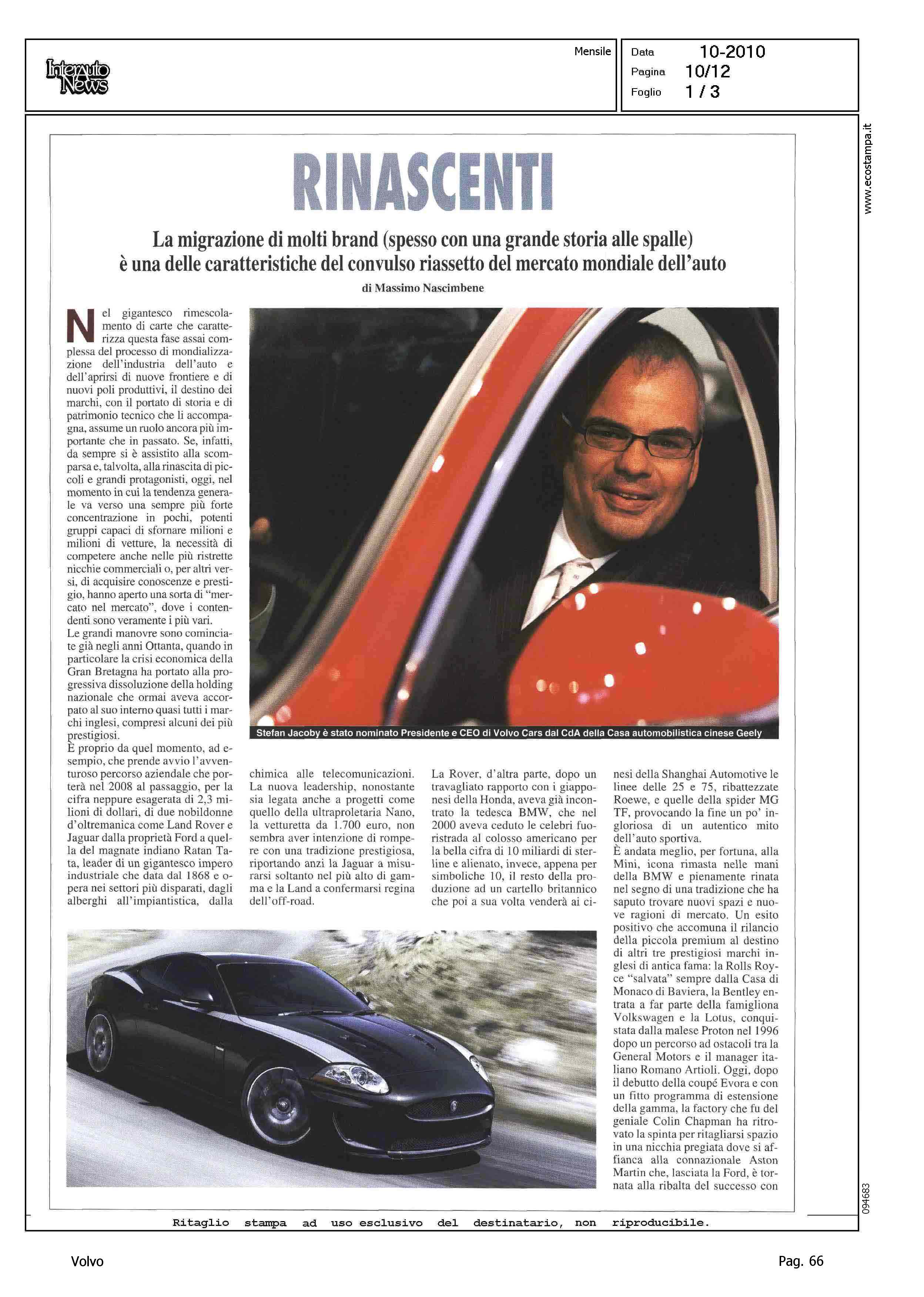 Author: NASCIMBENE, MASSIMOLine: Corporate Model: Corporate Subject: - Title: RINASCENTIHighlight: GEELY - VOLVO