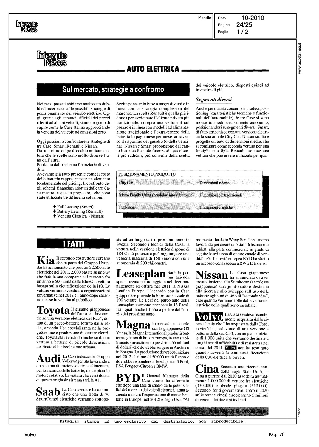 Author: Line: Corporate Model: Volvo C30 Subject: - Title: AUTO ELETTRICA - VOLVOHighlight: VOLVO C30 BEV - AVVIO FASE SPERIMENTAZIONE