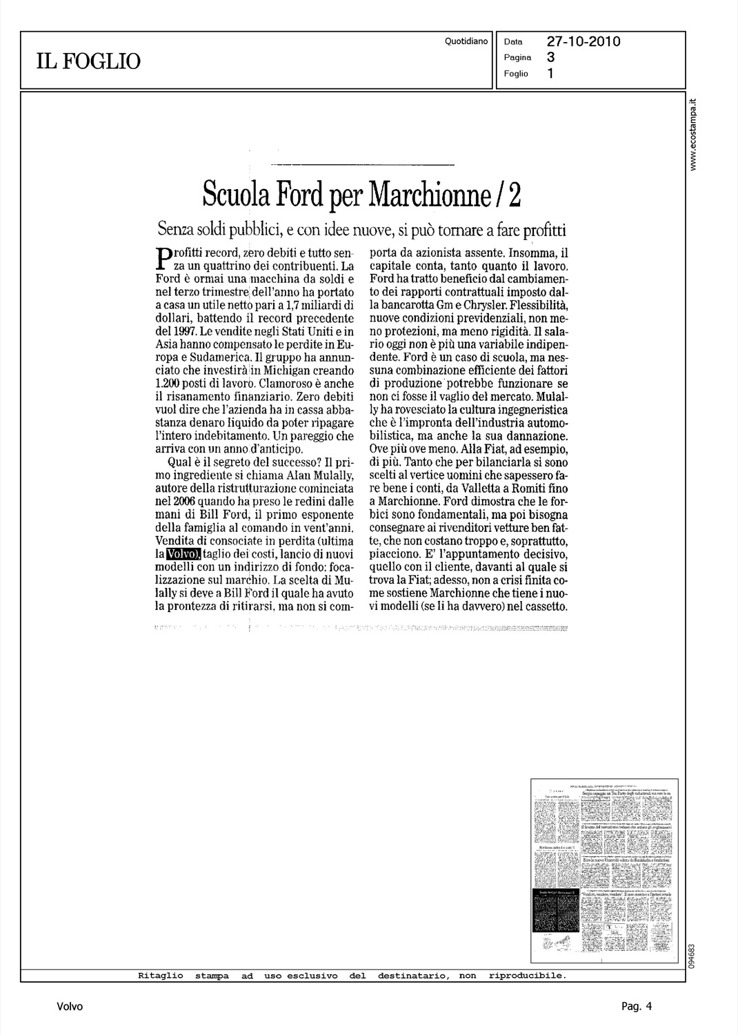 Author: Line: Corporate Model: Corporate Subject: - Title: SCUOLA FORD PER MARCHIONNE/2Highlight: FORD, UTILI - GEELY - VOLVO