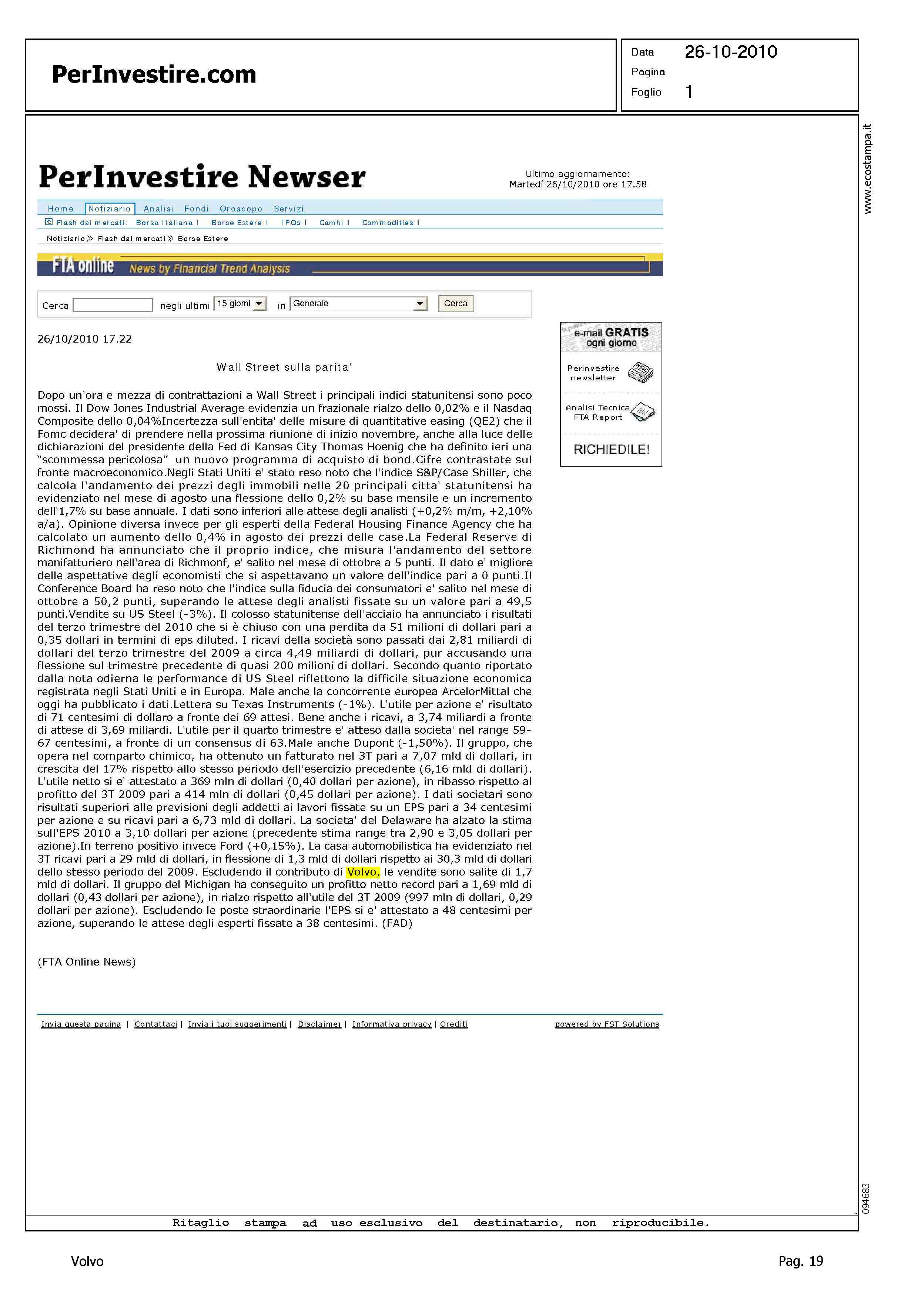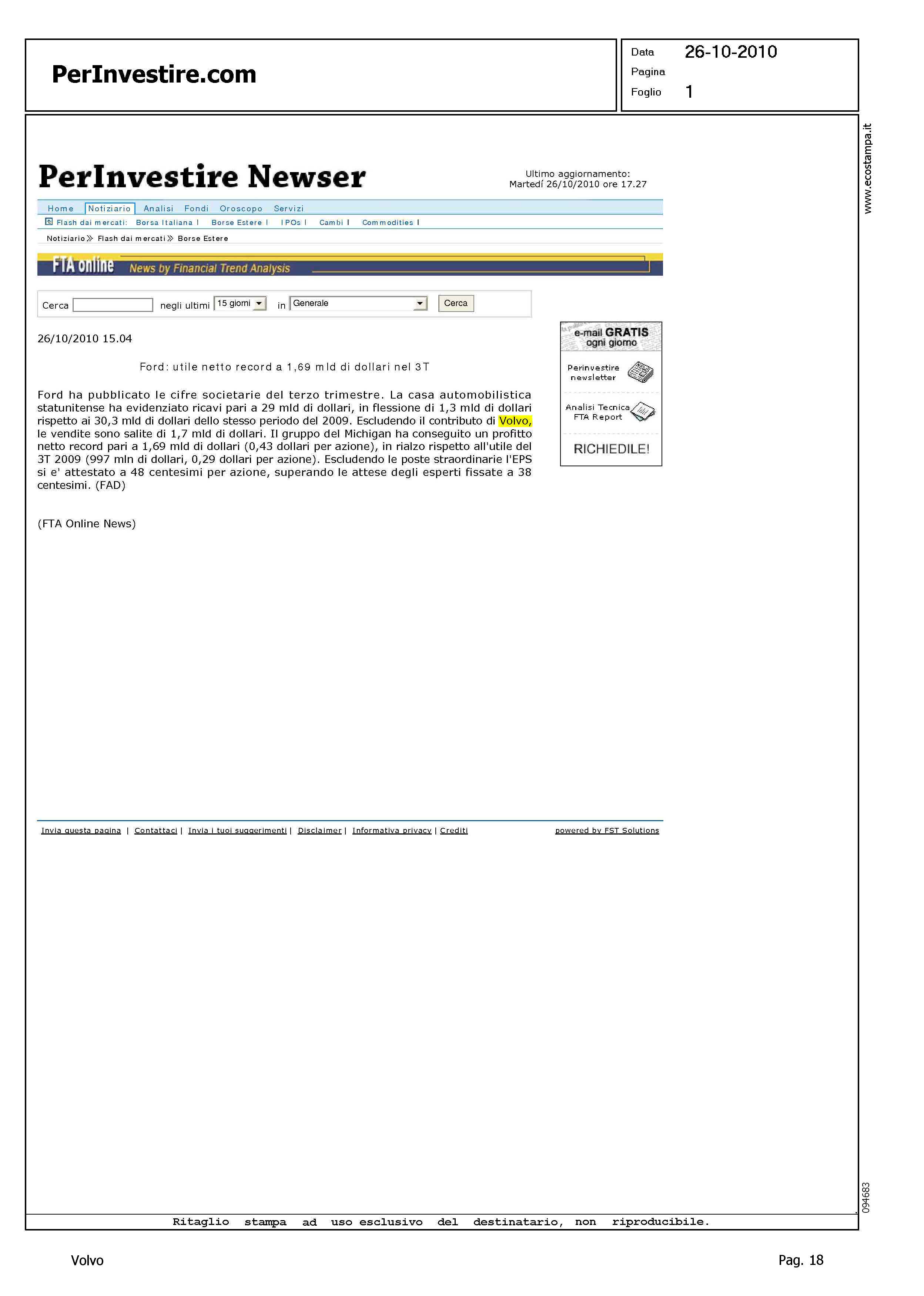 Author: Line: Corporate Model: Corporate Subject: - Title: FORD: UTILE NETTO RECORD A 1,69 MLD DI DOLLARI NEL 3THighlight: FORD, UTILI - GEELY - VOLVO