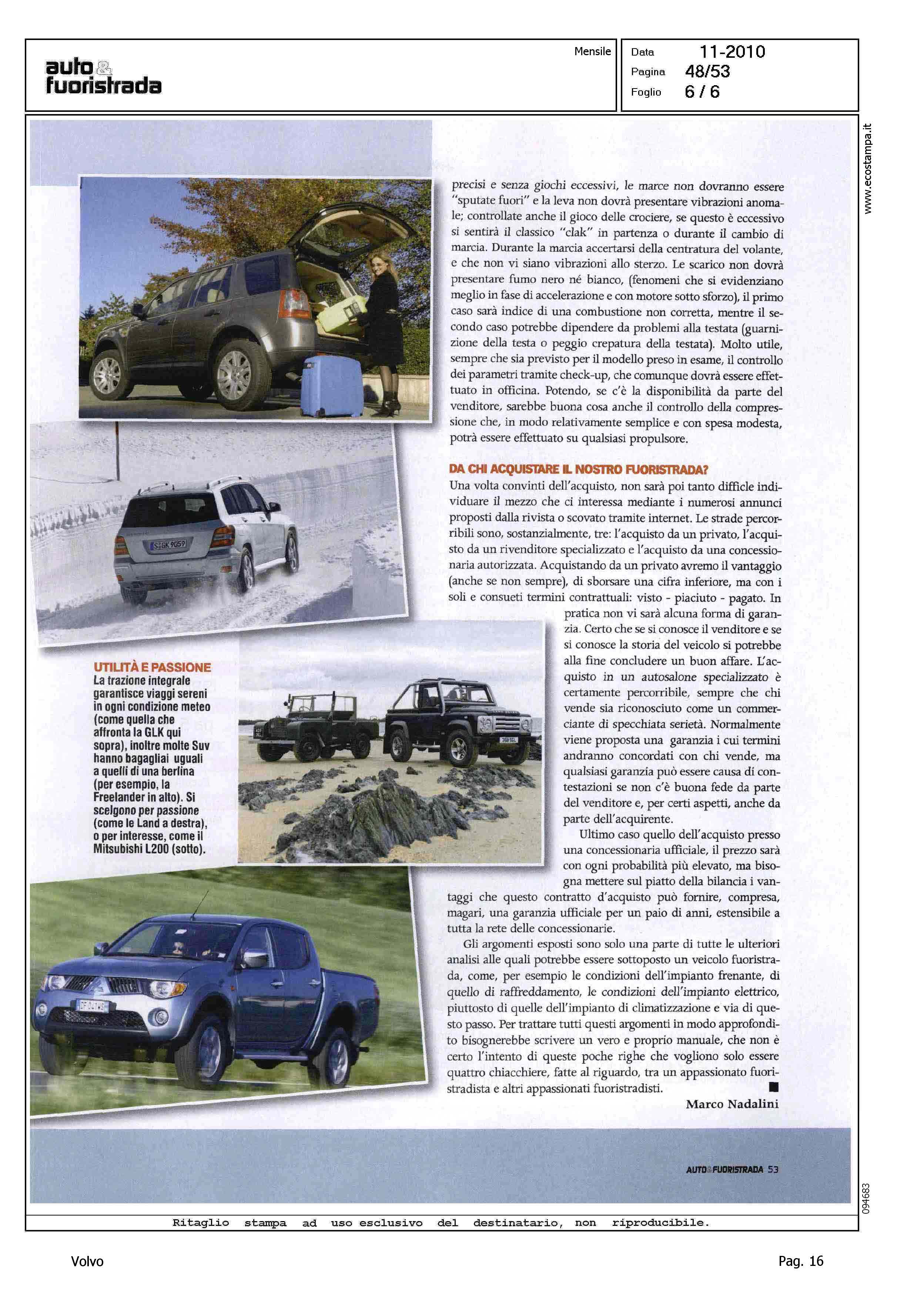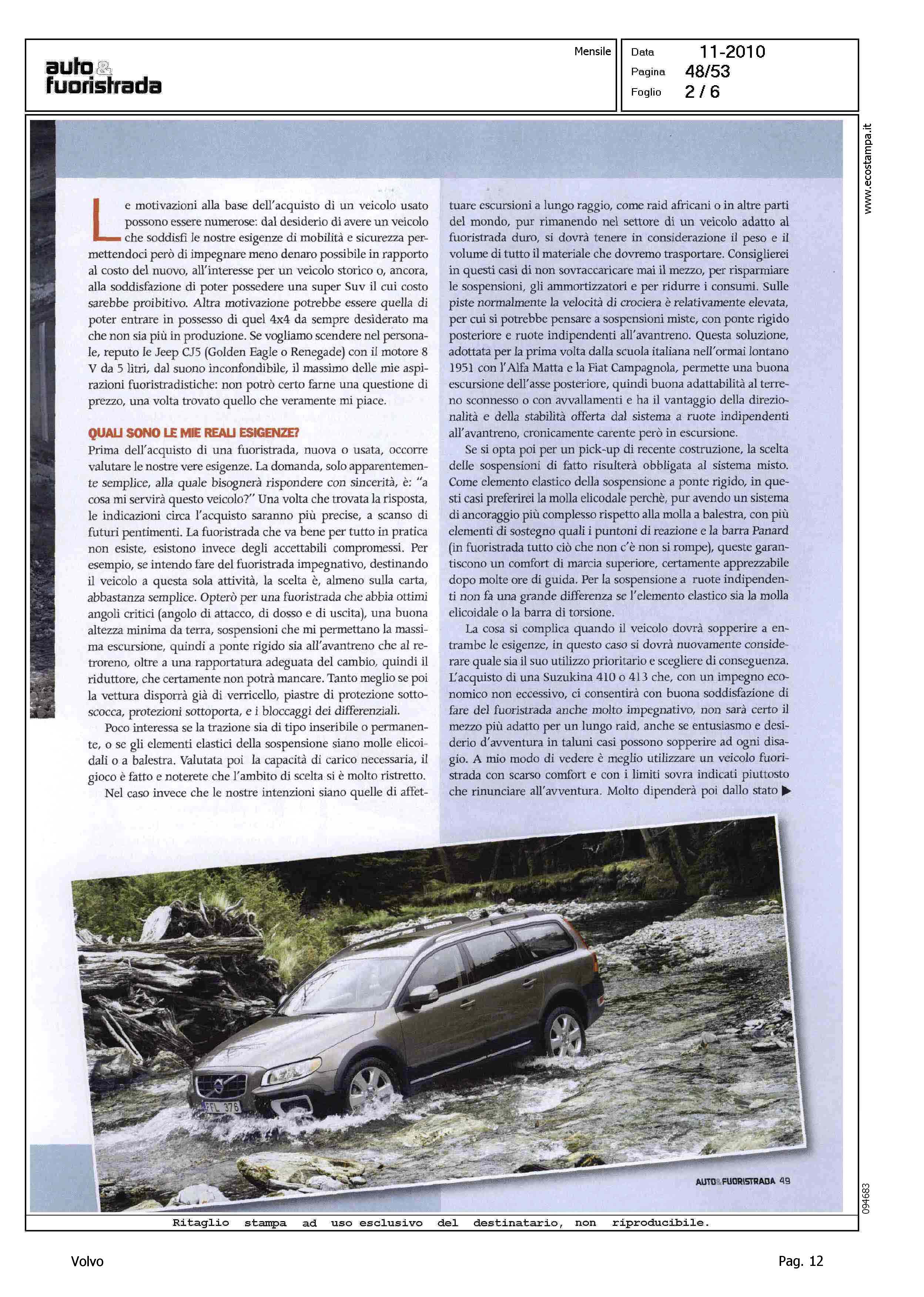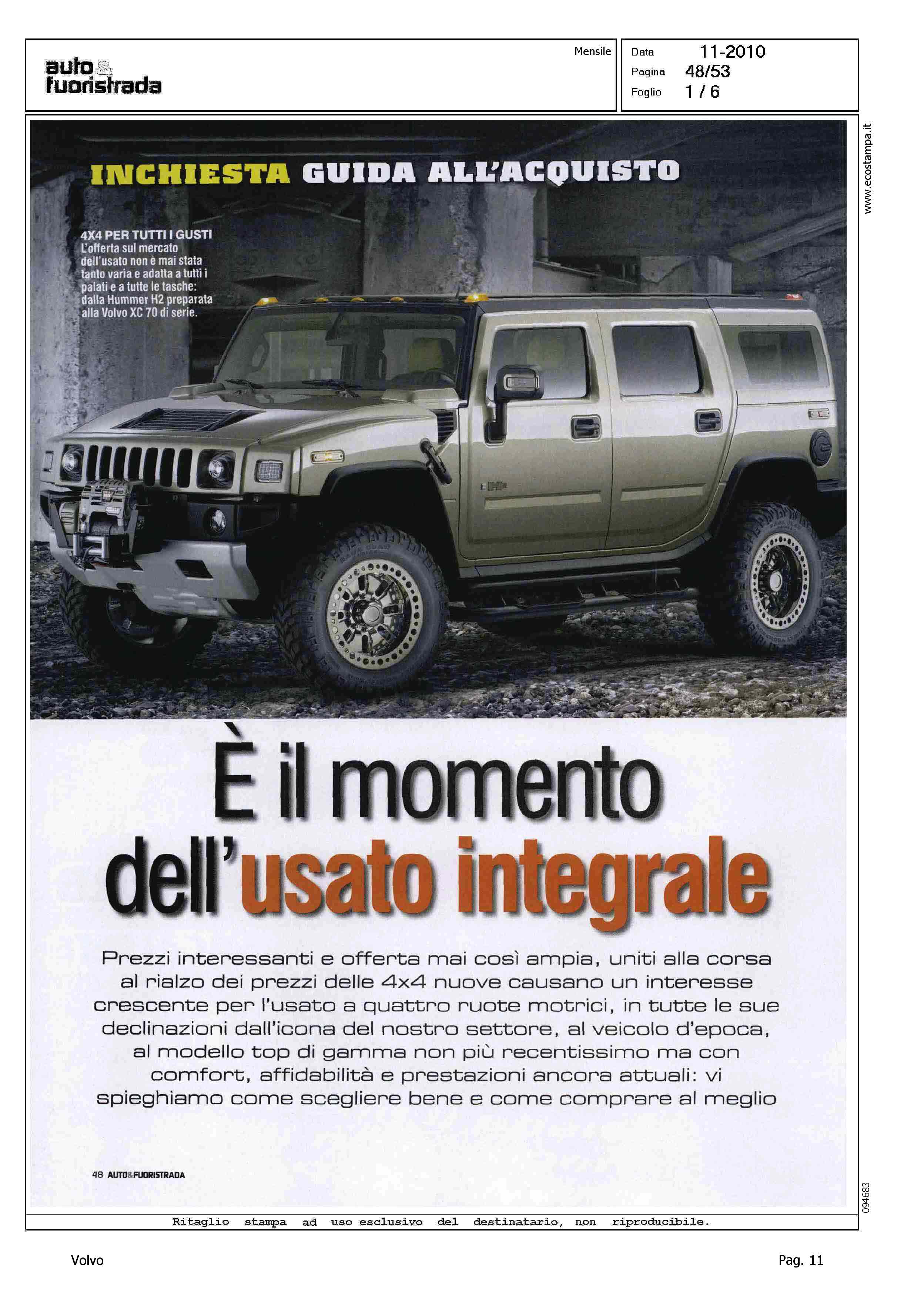 Author: NADALINI, MARCOLine: Corporate Model: Volvo XC70 Subject: - Title: E' IL MOMENTO DELL'USATO INTEGRALEHighlight: MERCATO ITALIA USATO - INCHIESTA - GUIDA ALL'ACQUISTO - TRAZIONE INTEGRALE - VOLVO XC70