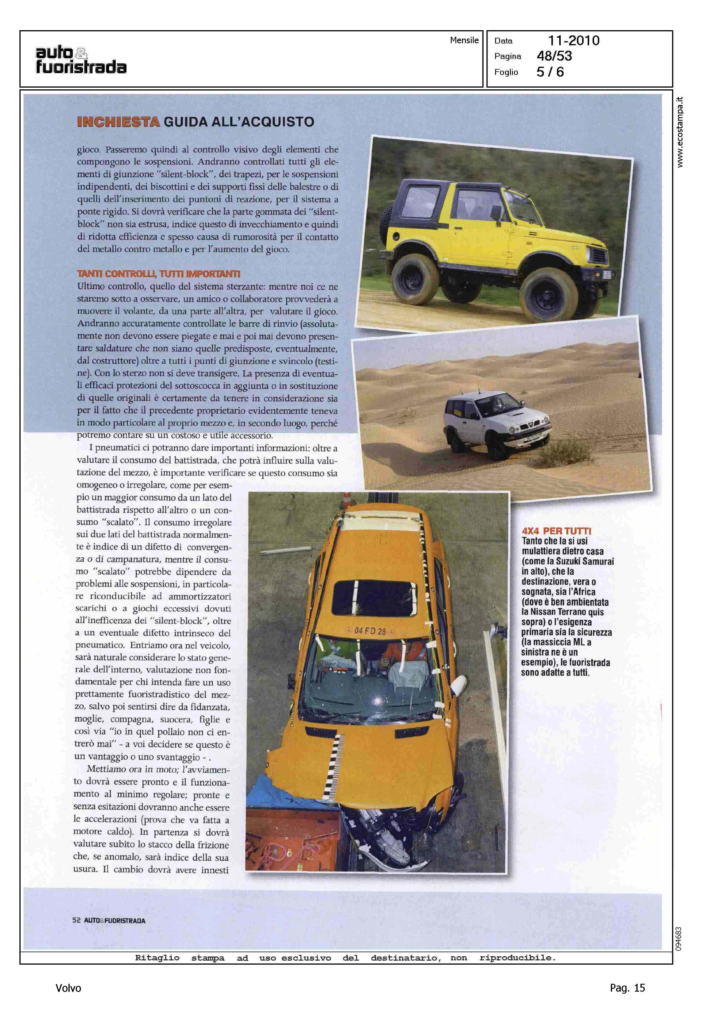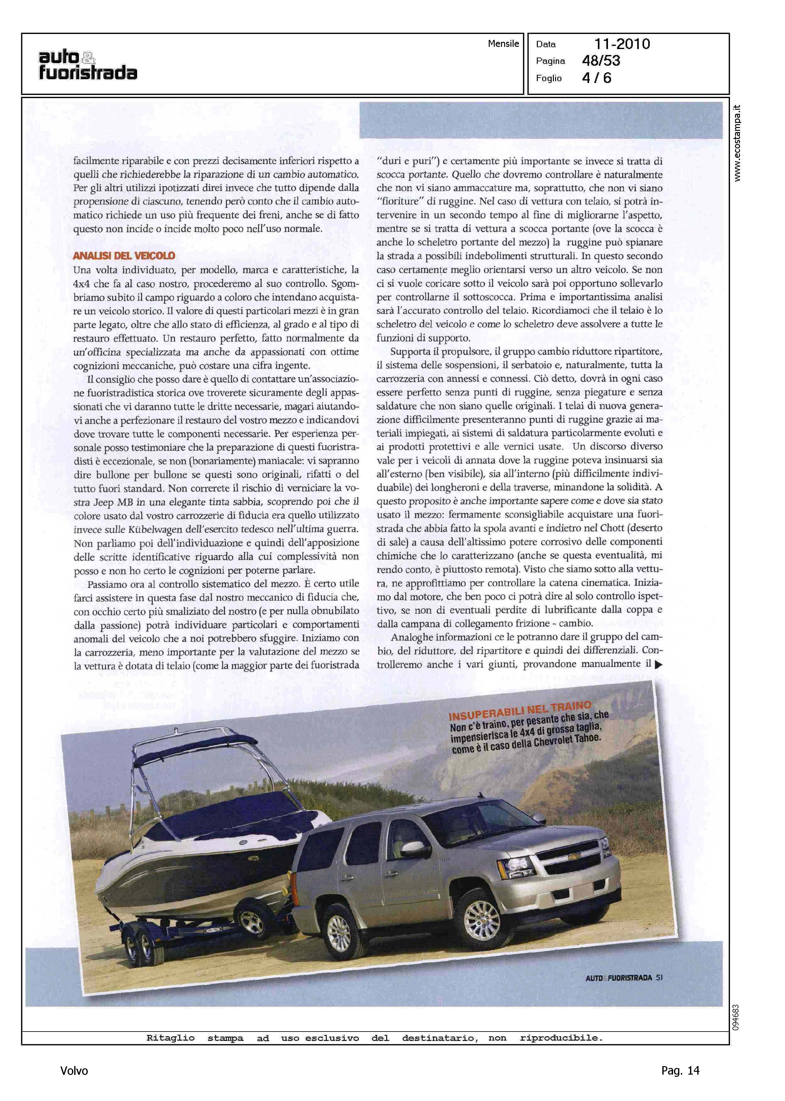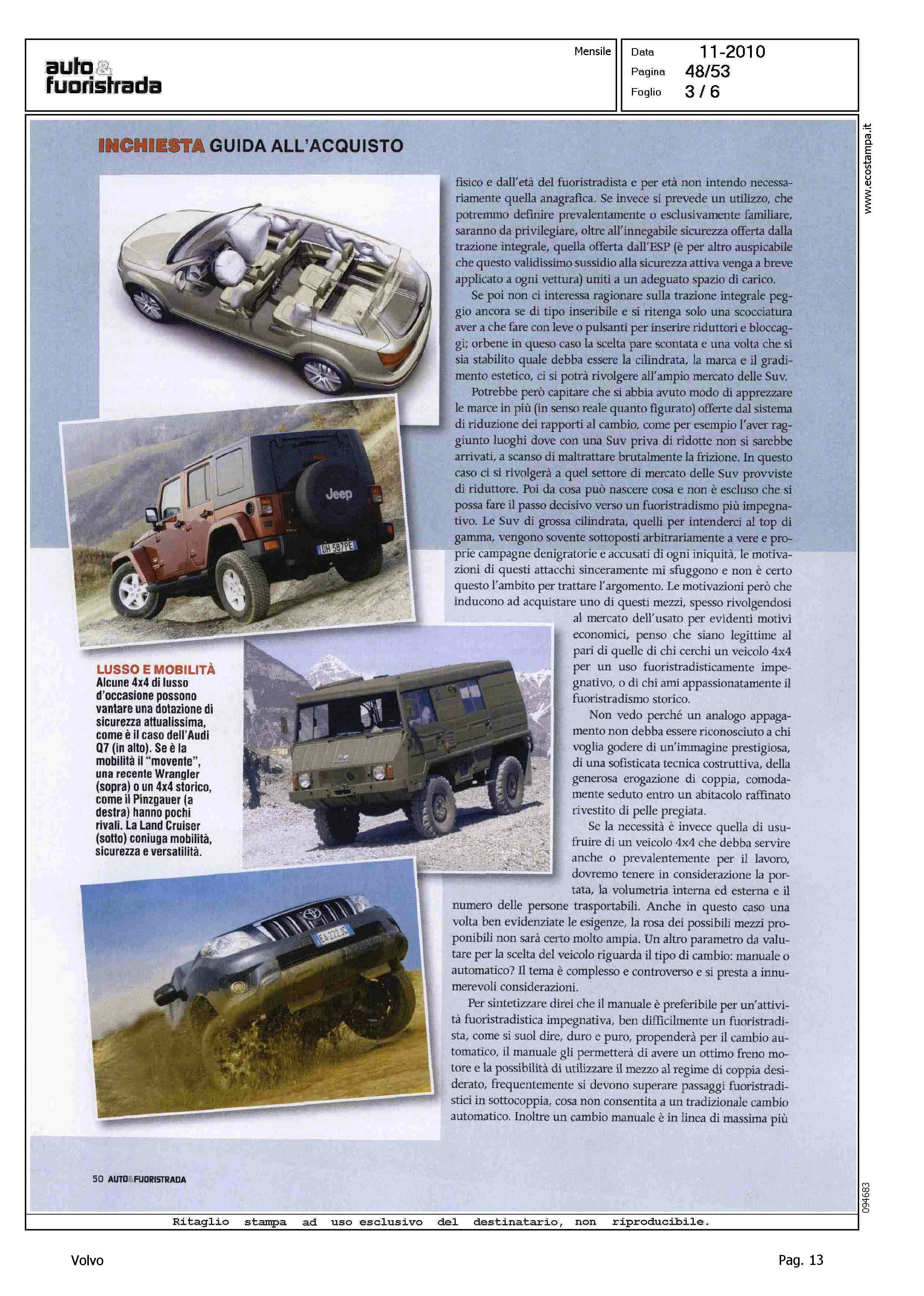 Author: NADALINI, MARCOLine: Corporate Model: Volvo XC70 Subject: - Title: E' IL MOMENTO DELL'USATO INTEGRALEHighlight: MERCATO ITALIA USATO - INCHIESTA - GUIDA ALL'ACQUISTO - TRAZIONE INTEGRALE - VOLVO XC70